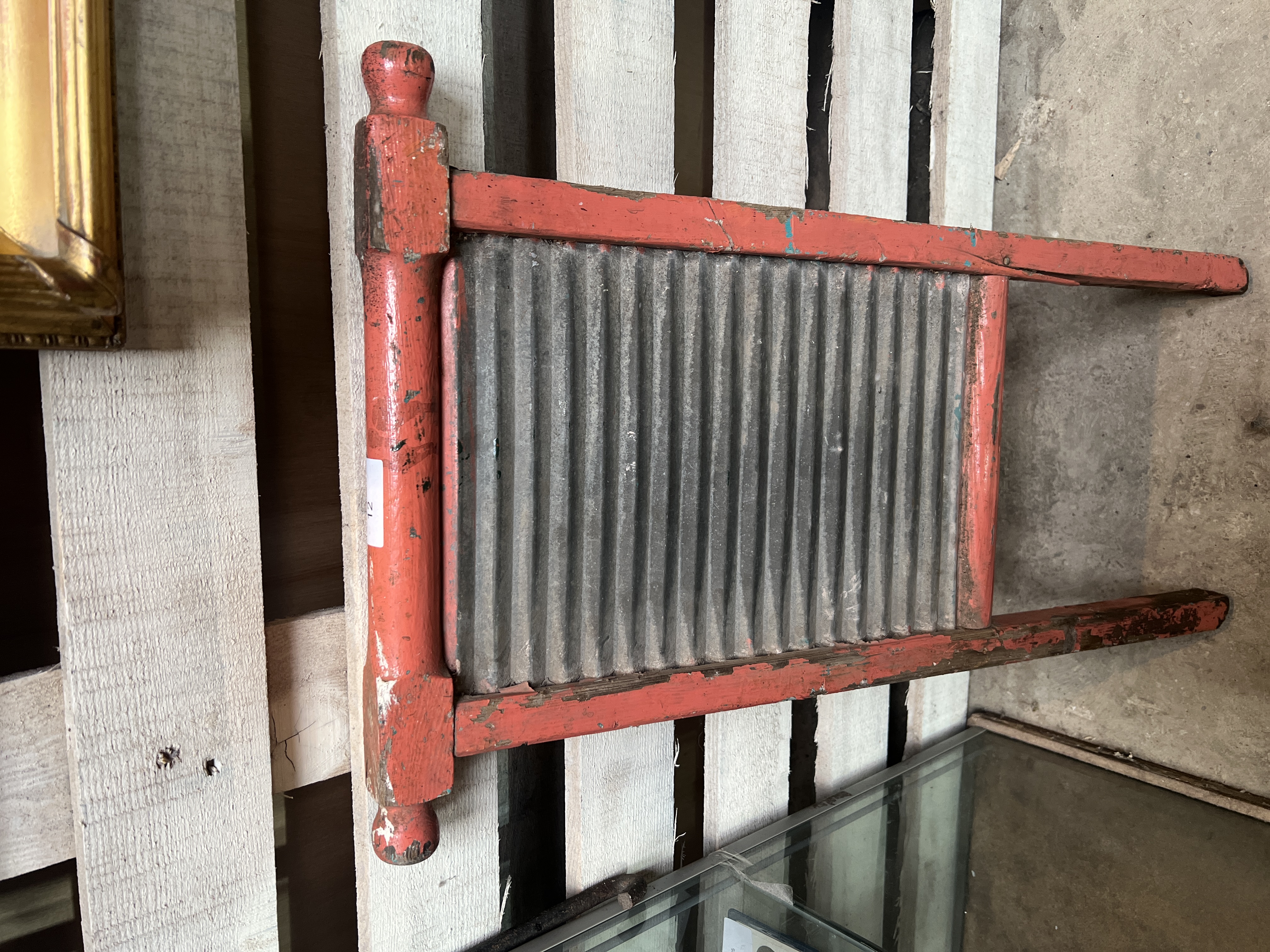 An early 20th century washboard with painted pine frame.