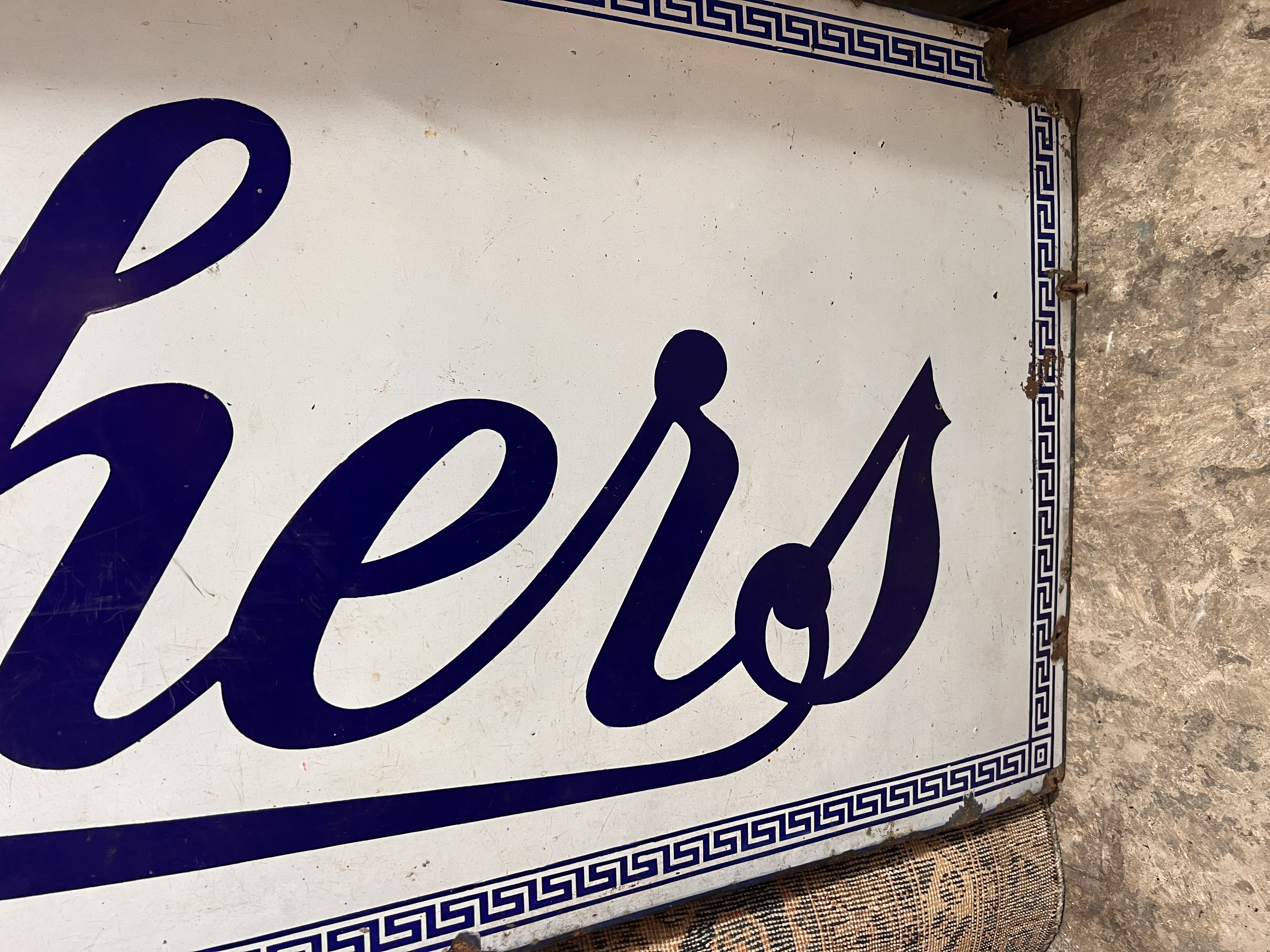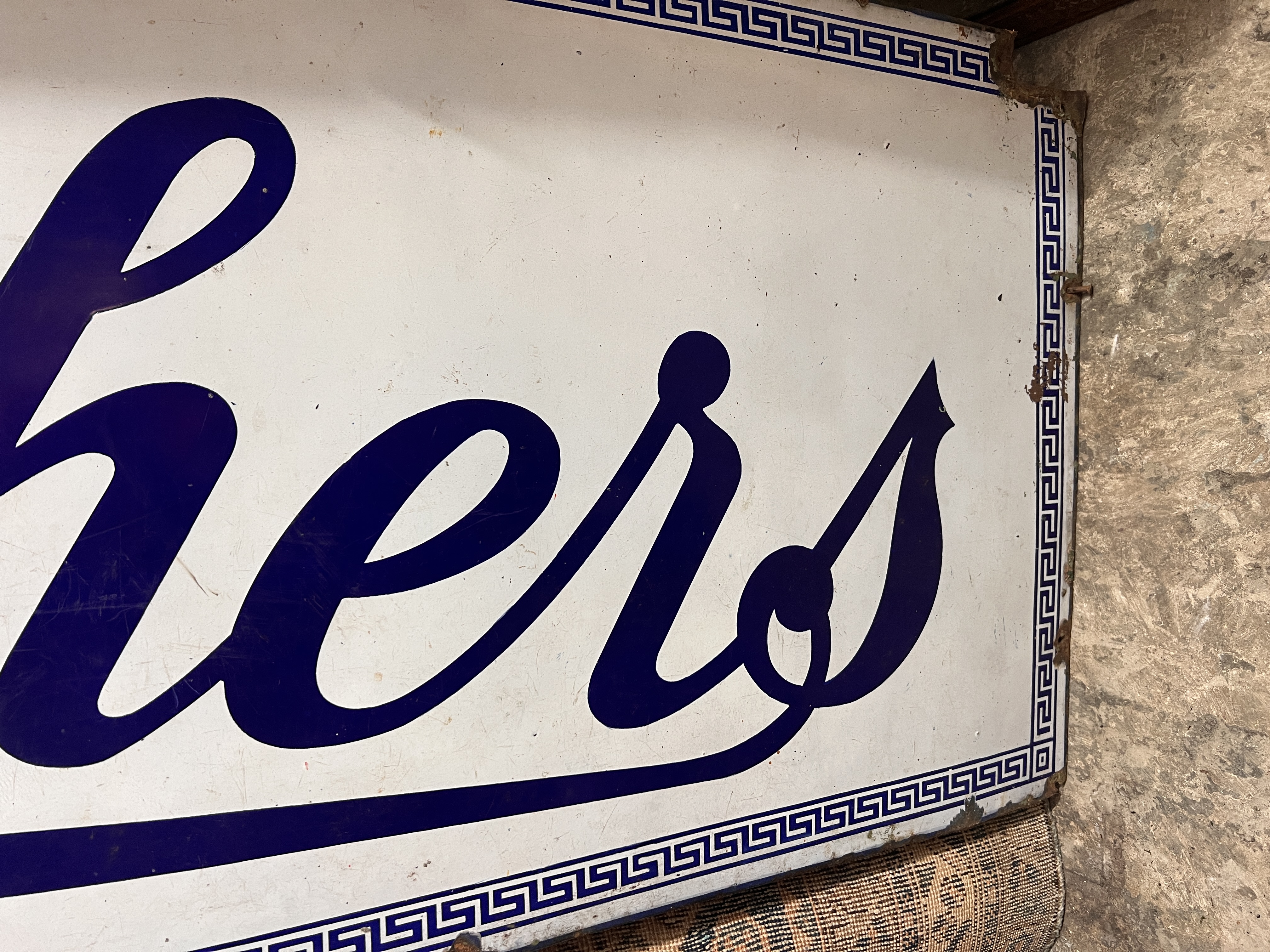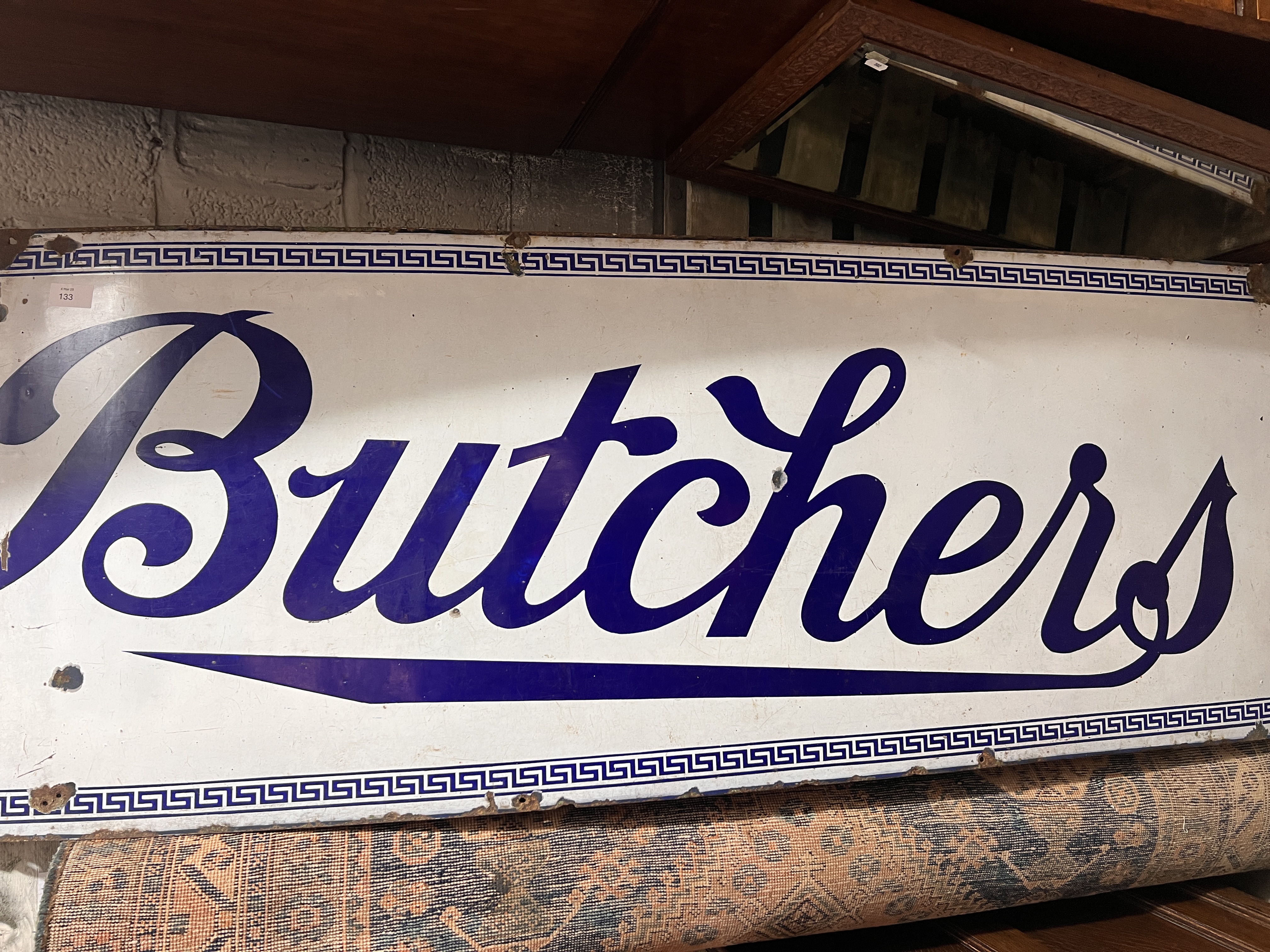 An early 20th century enamel sign for Butchers 170cm x 65cm