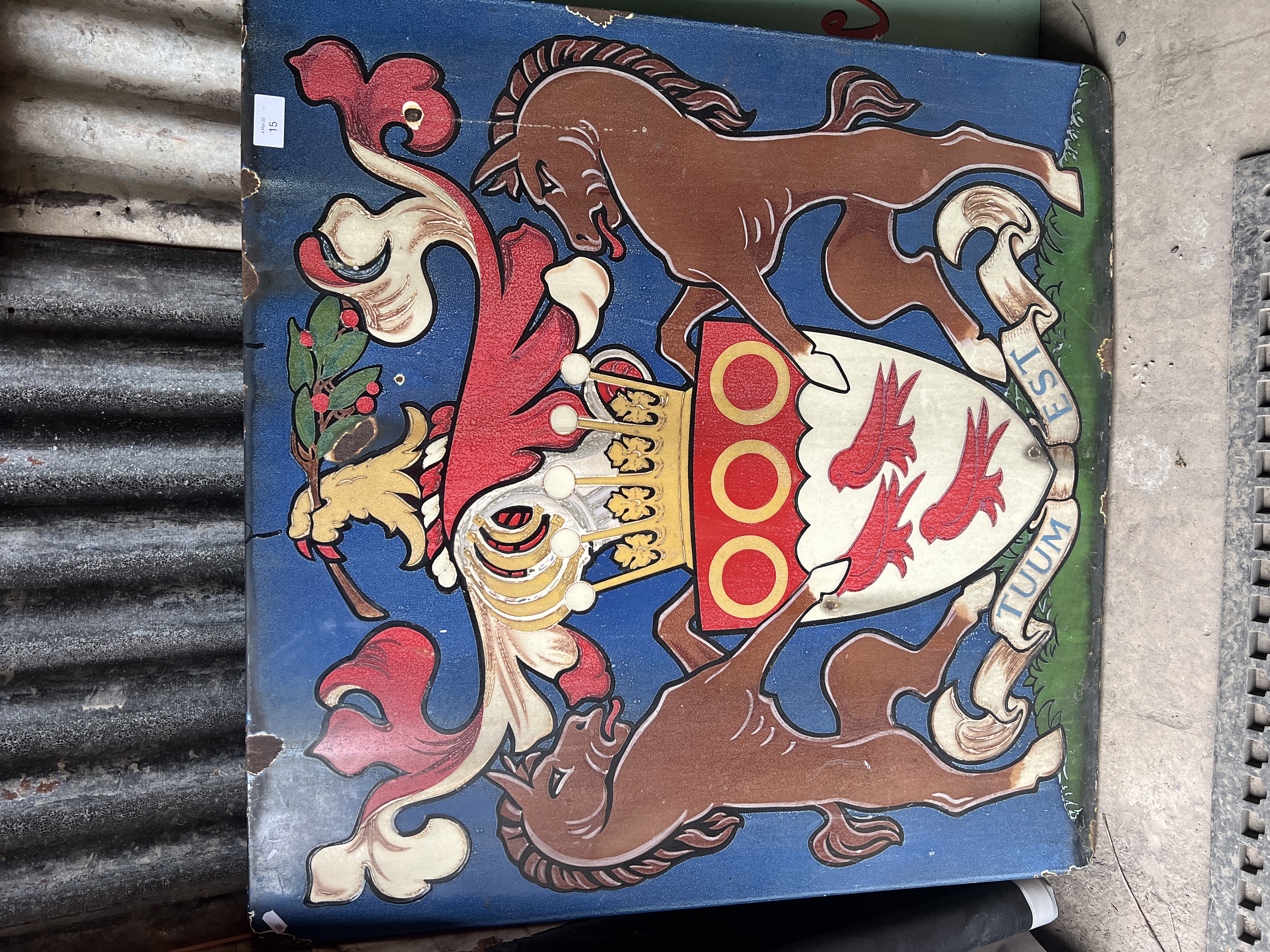 An early 20th century enamel sign with heraldic crest of two horses and shield 3ft x 3ft