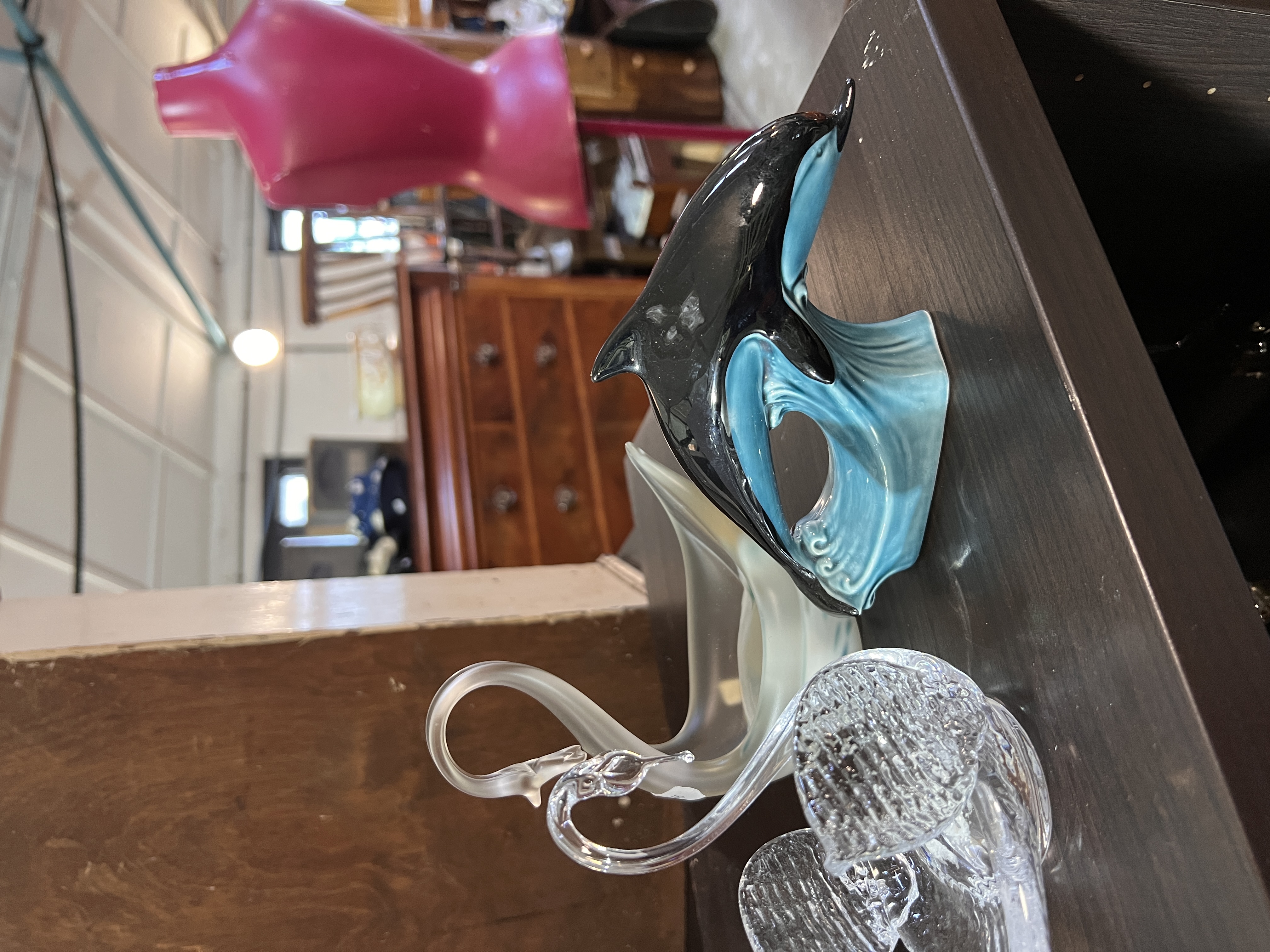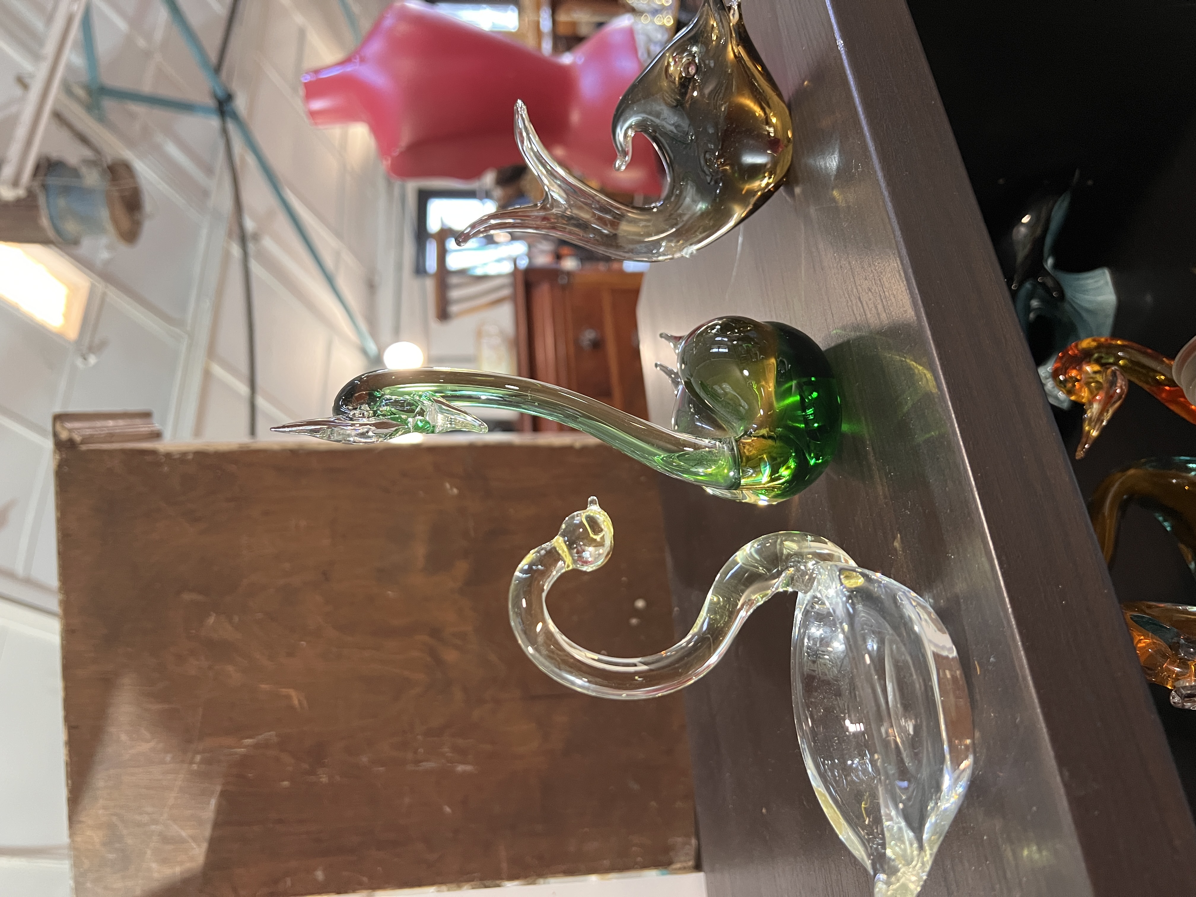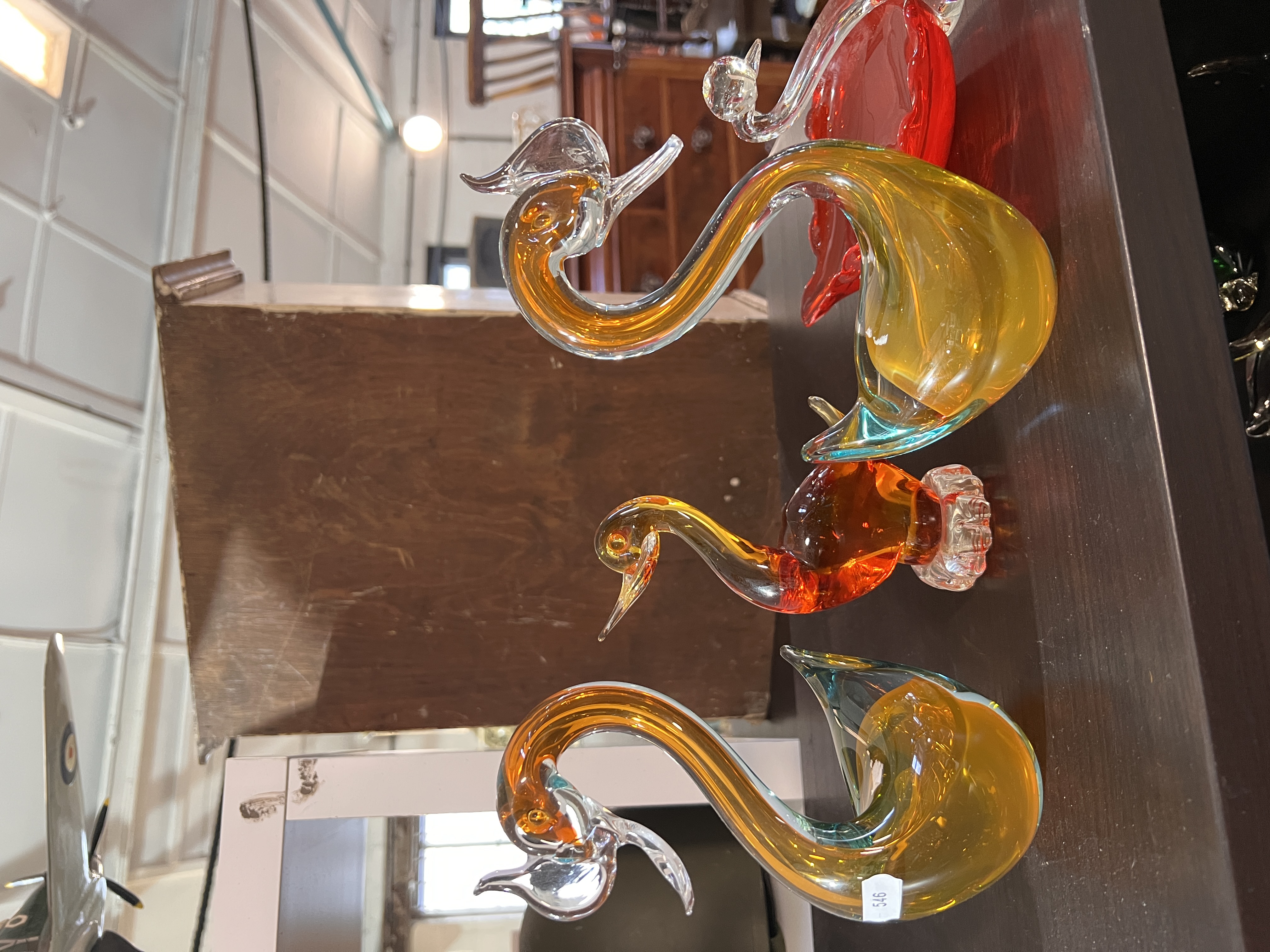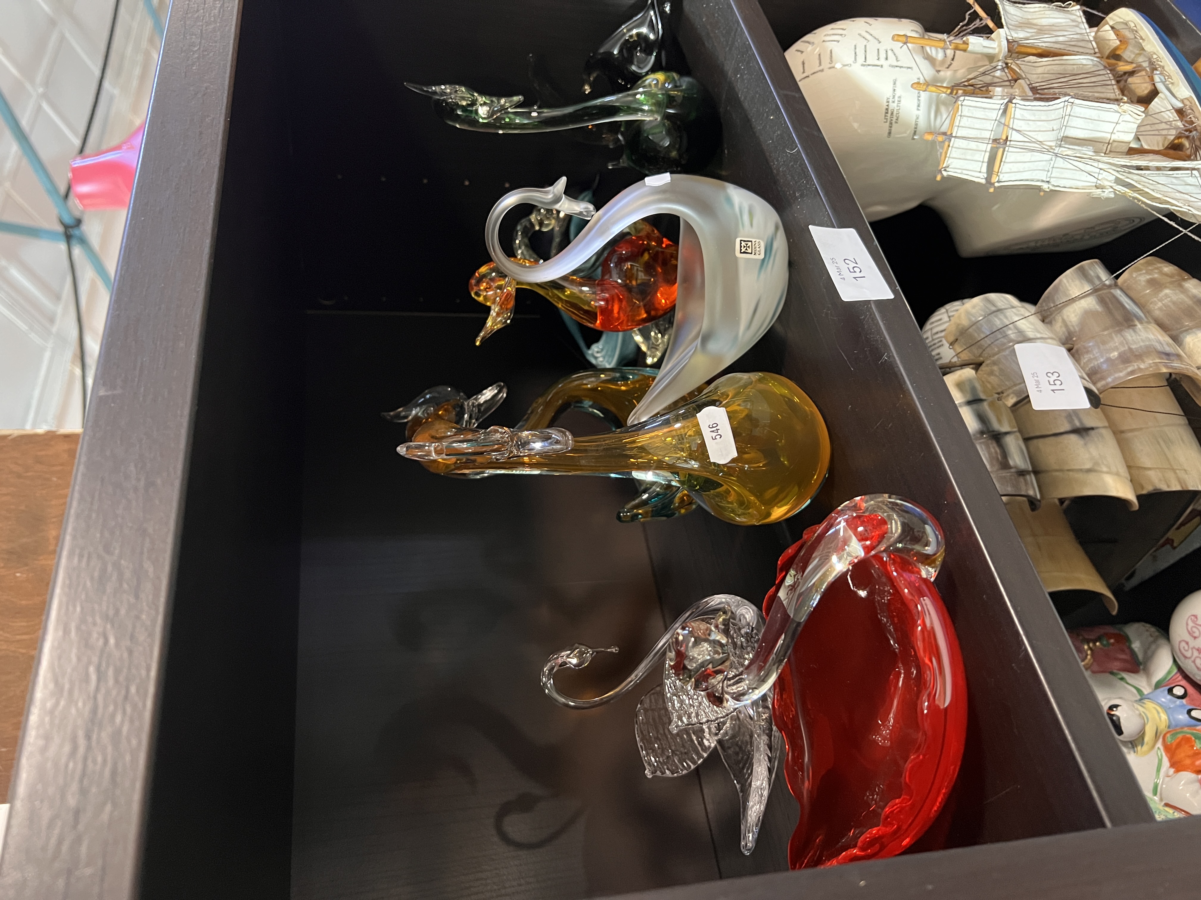 A selection of art glass model swans and birds including Mdina glass