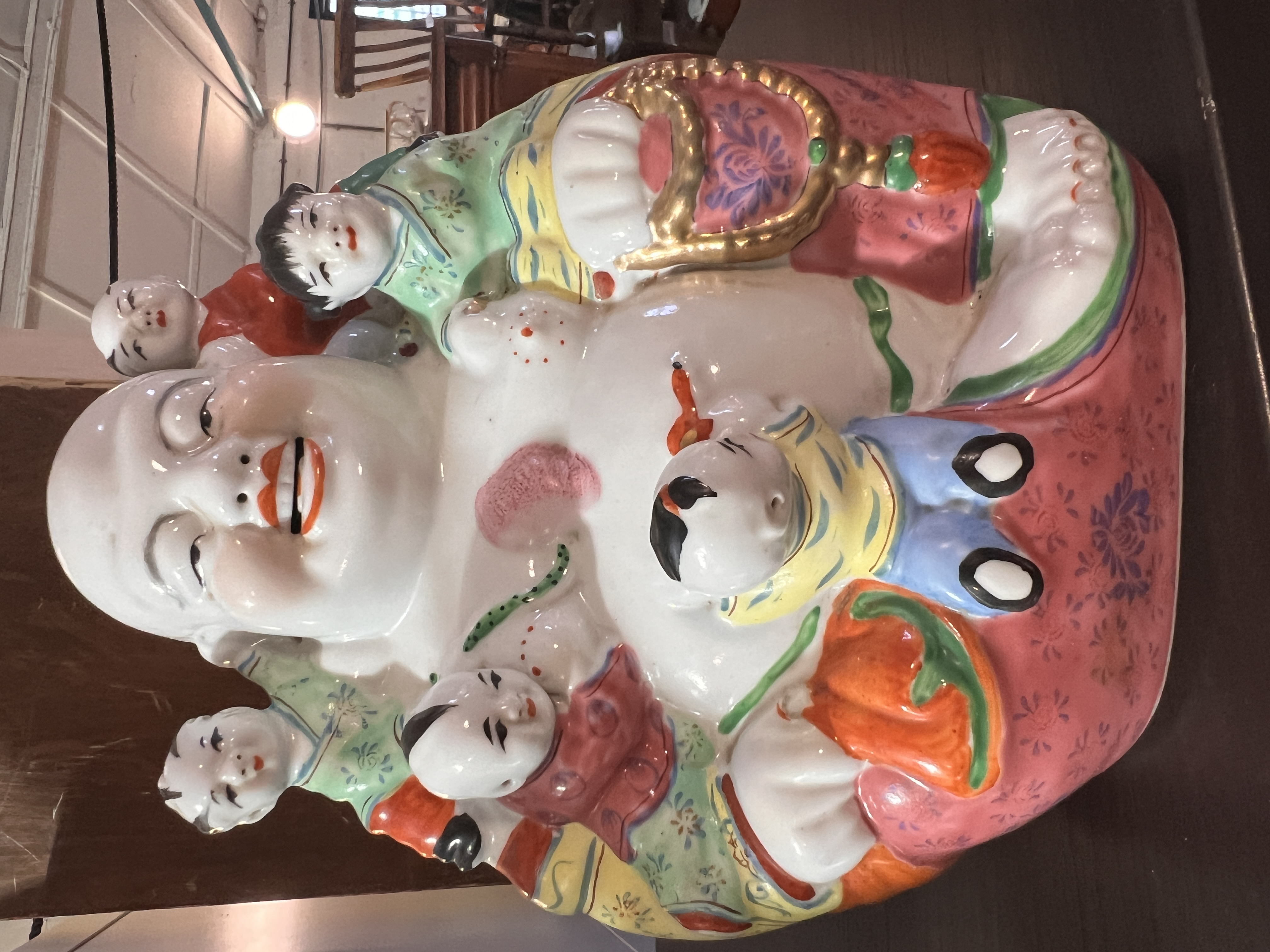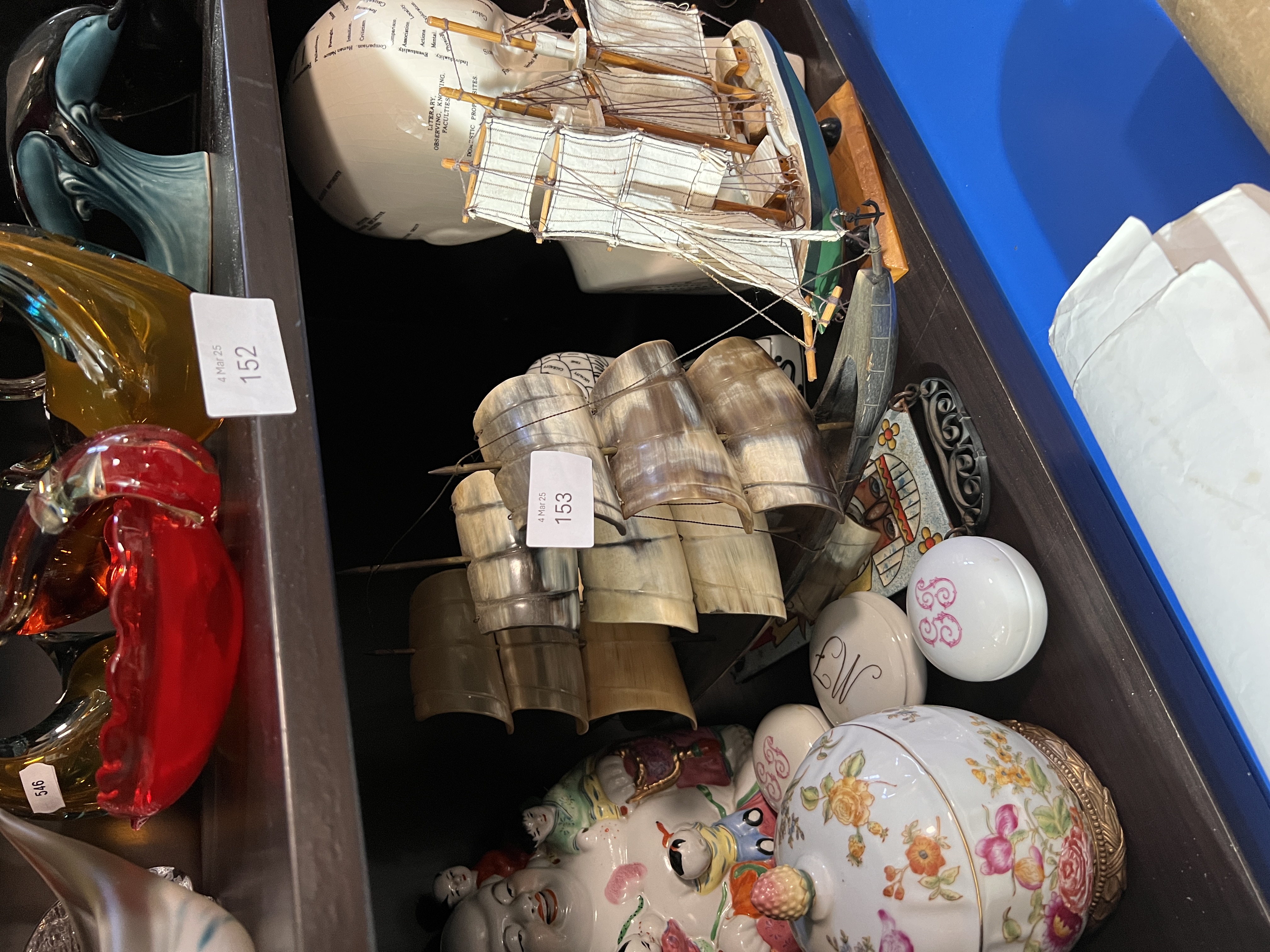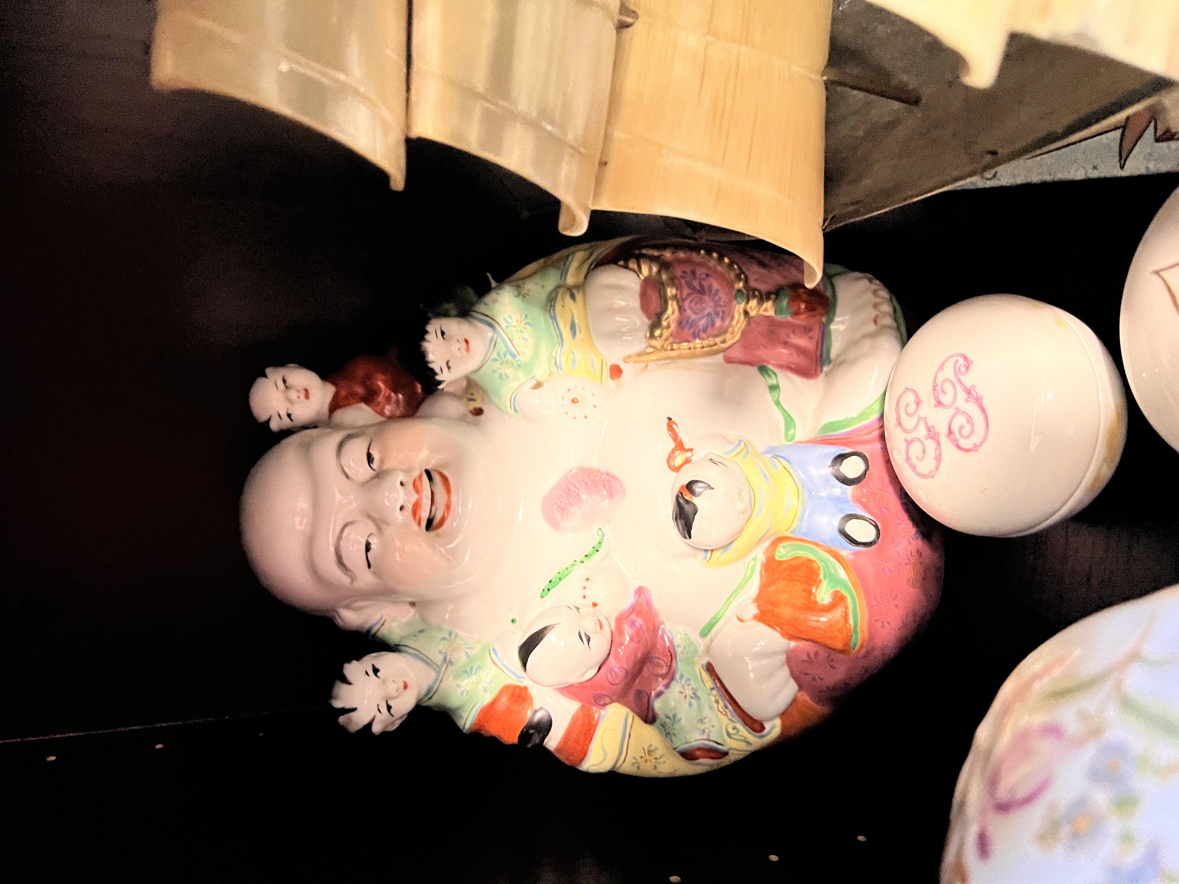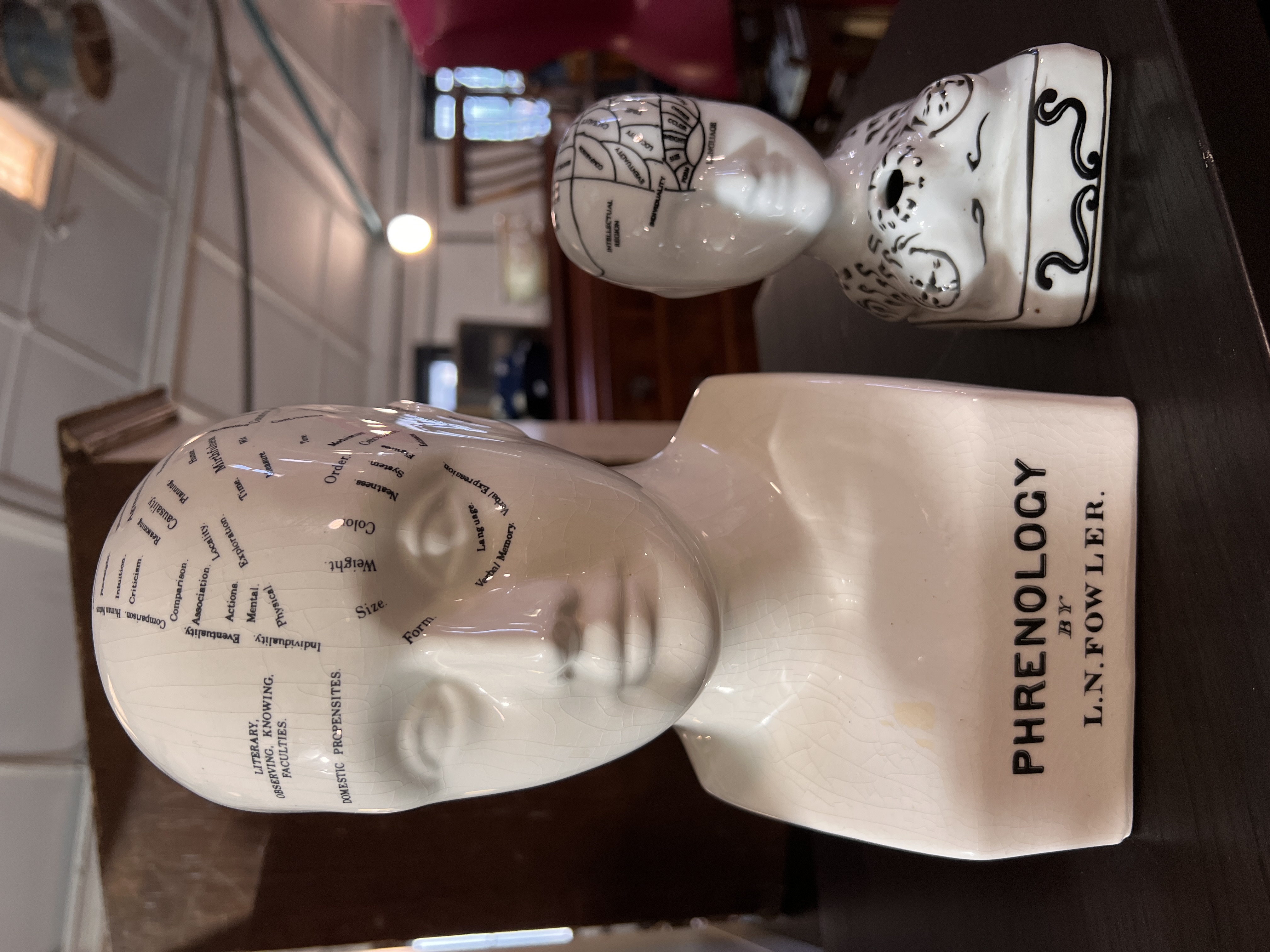 A selection of ceramics including phrenology heads and Chinese porcelain Buddha