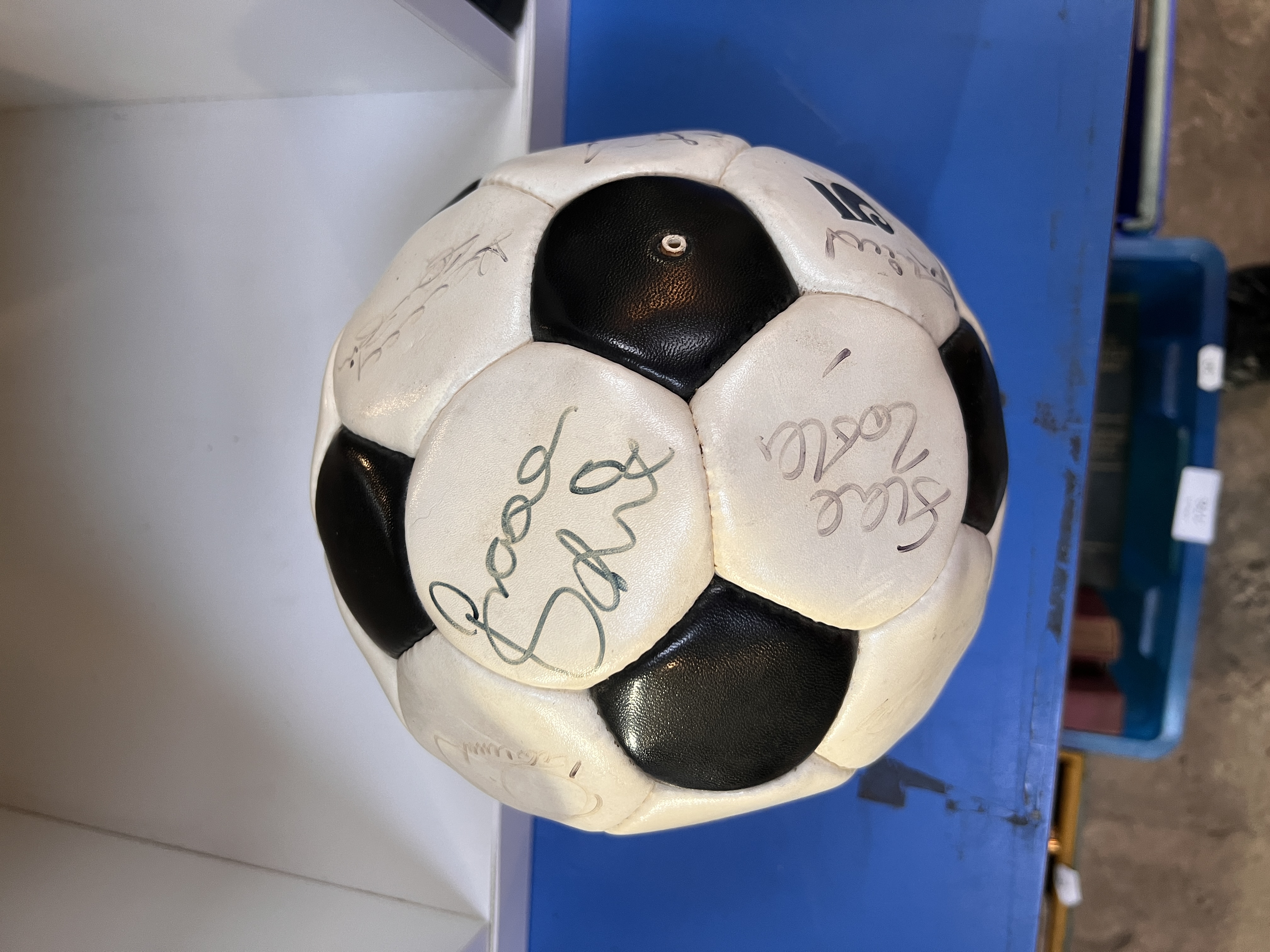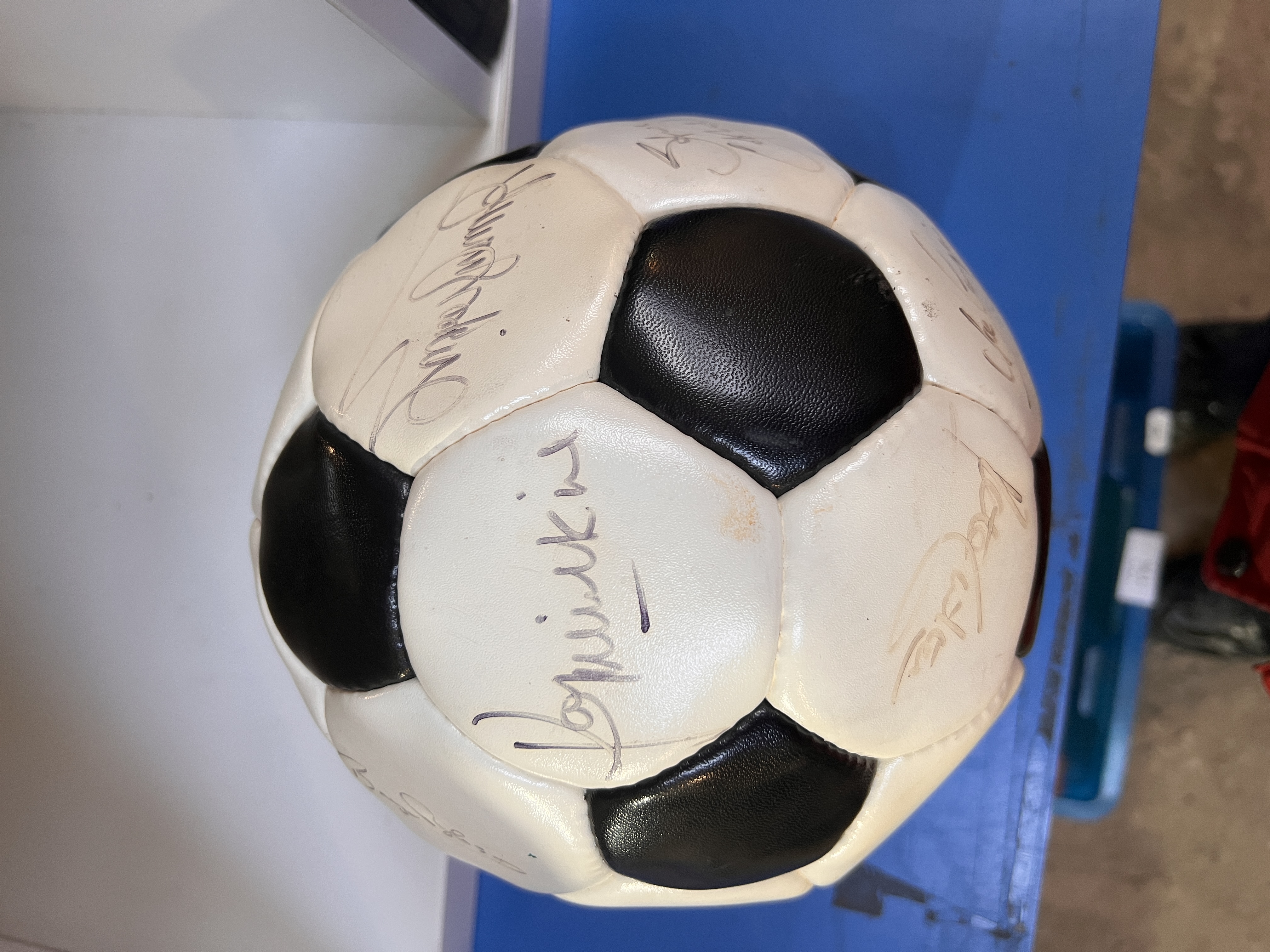A vintage hand signed football, possibly Manchester related