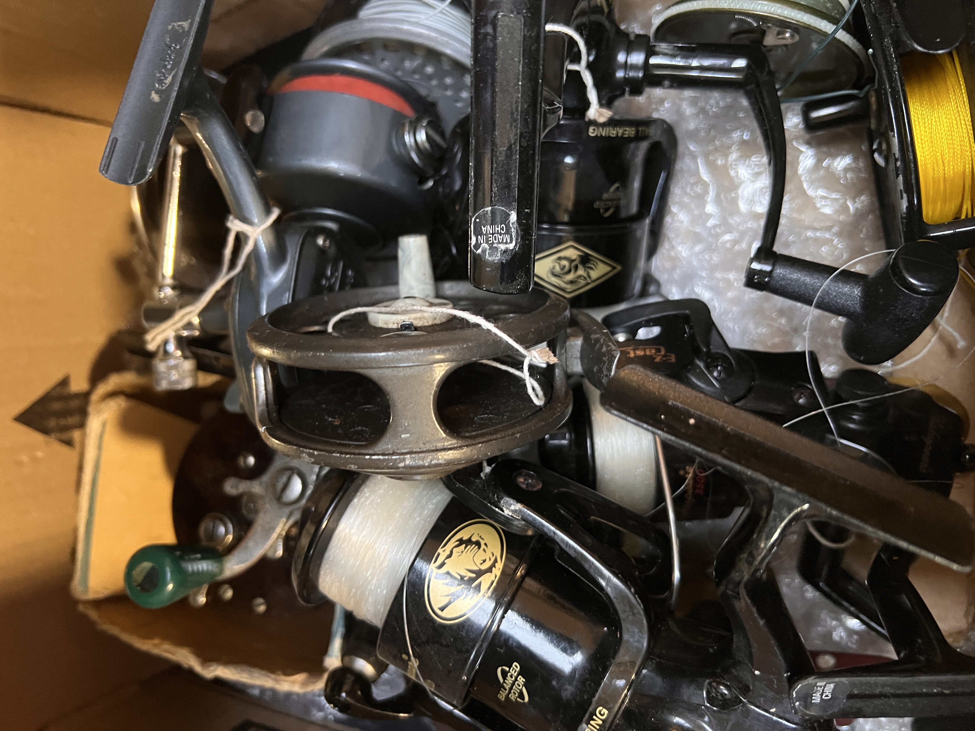 A selection of fishing reels including Tiger, Shakespeare and Intrepid