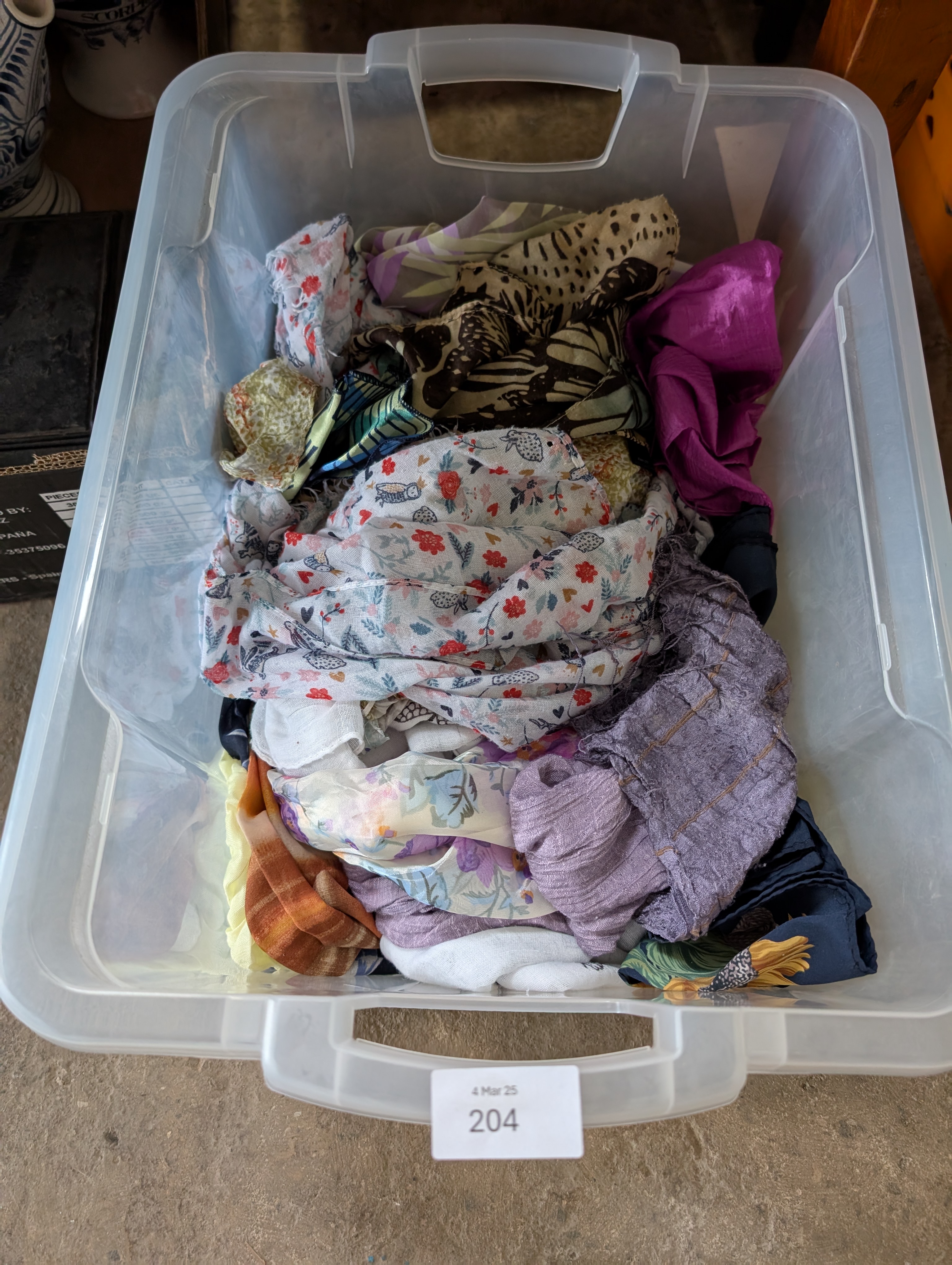A selection of vintage silk neck and head scarfs.