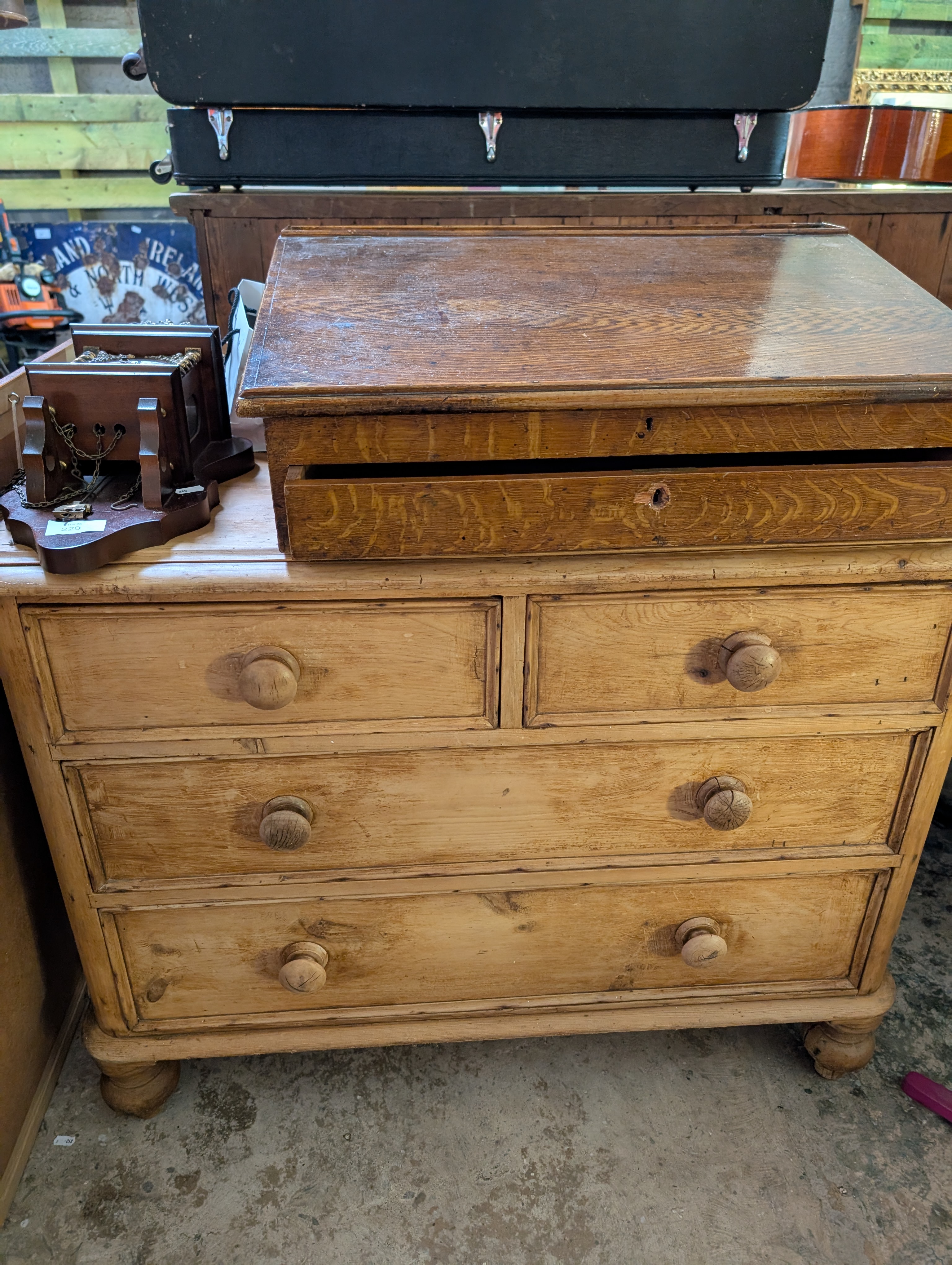 A yellow pine chest of two over two drawers with turned handles