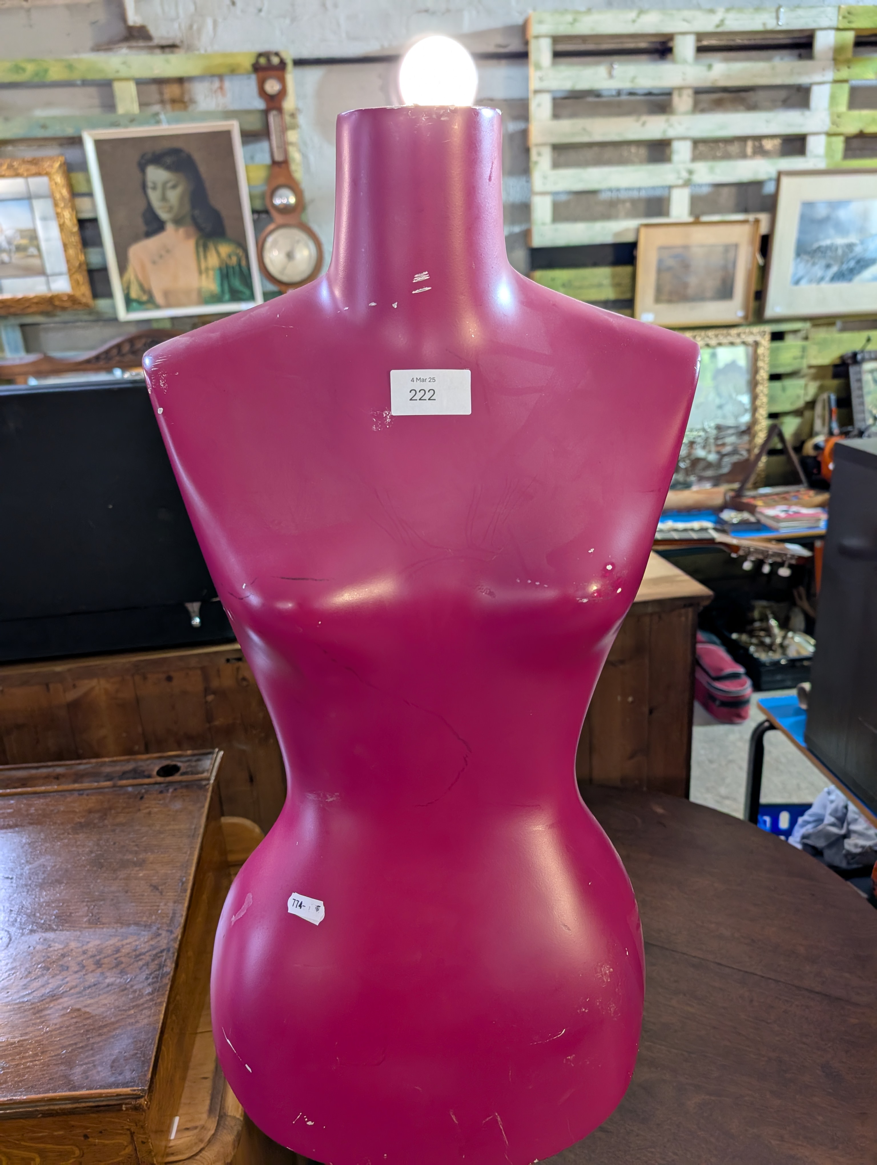 A composite female mannequin torso in magenta