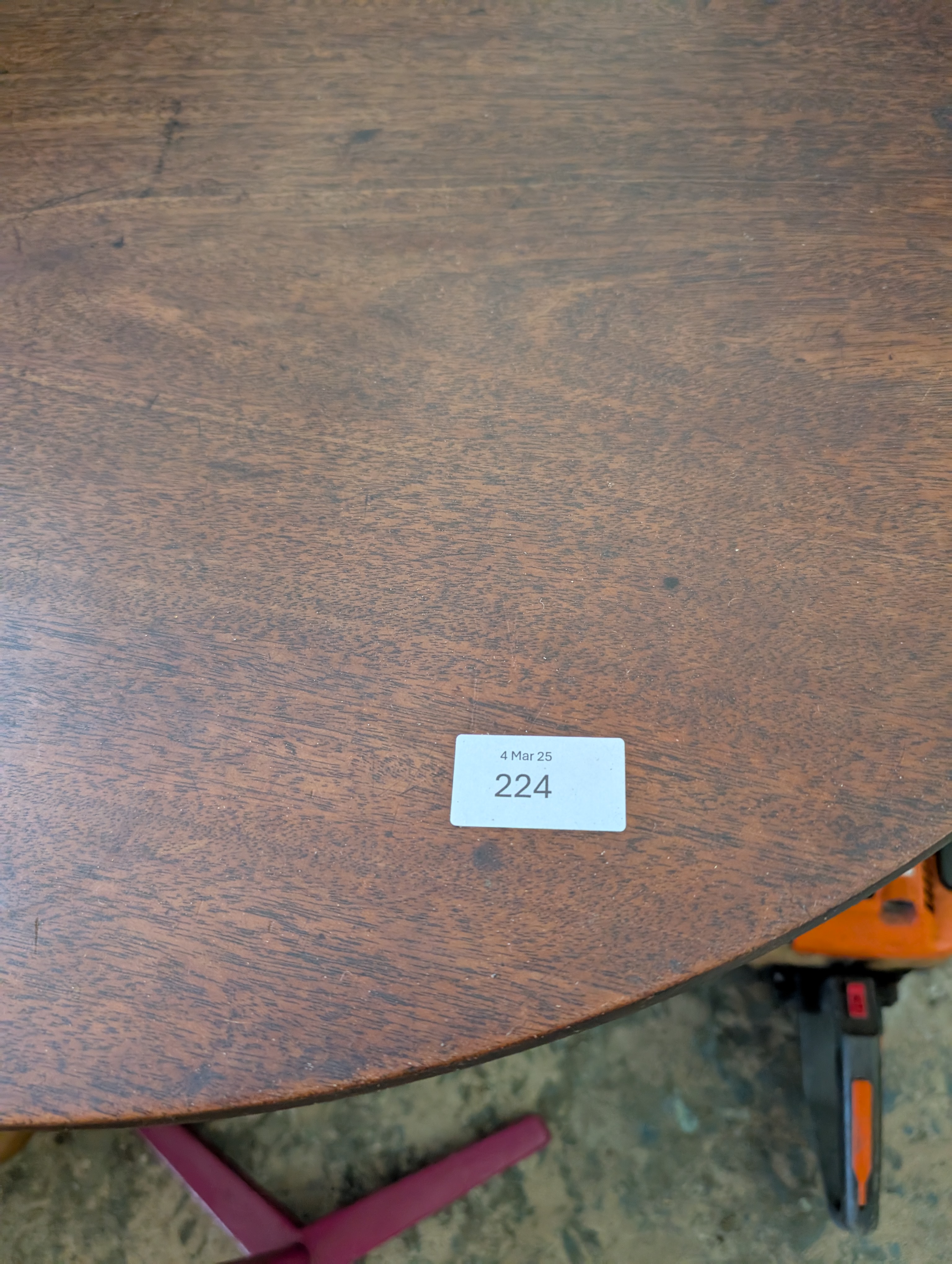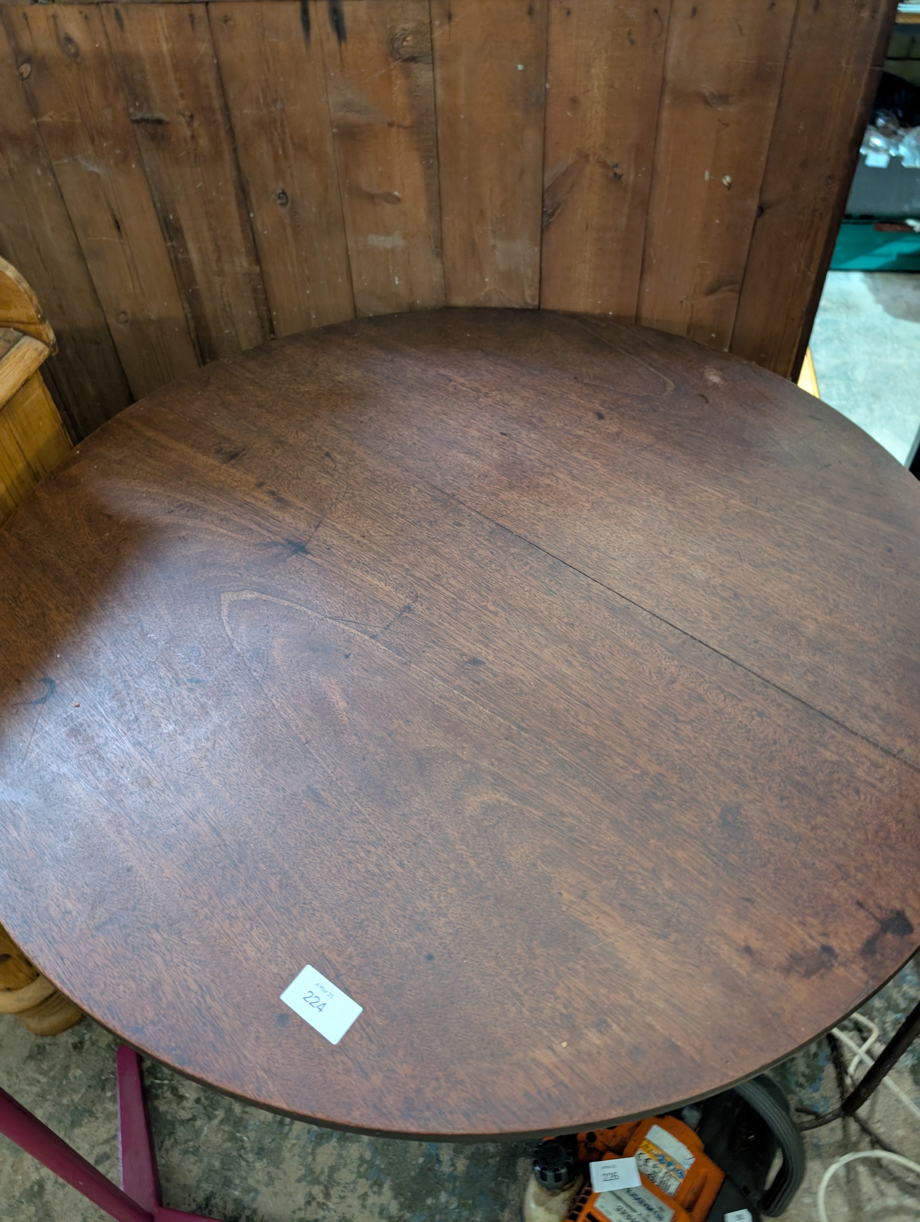 A Georgian tilt top tea table in mahogany with turned support n tripod base