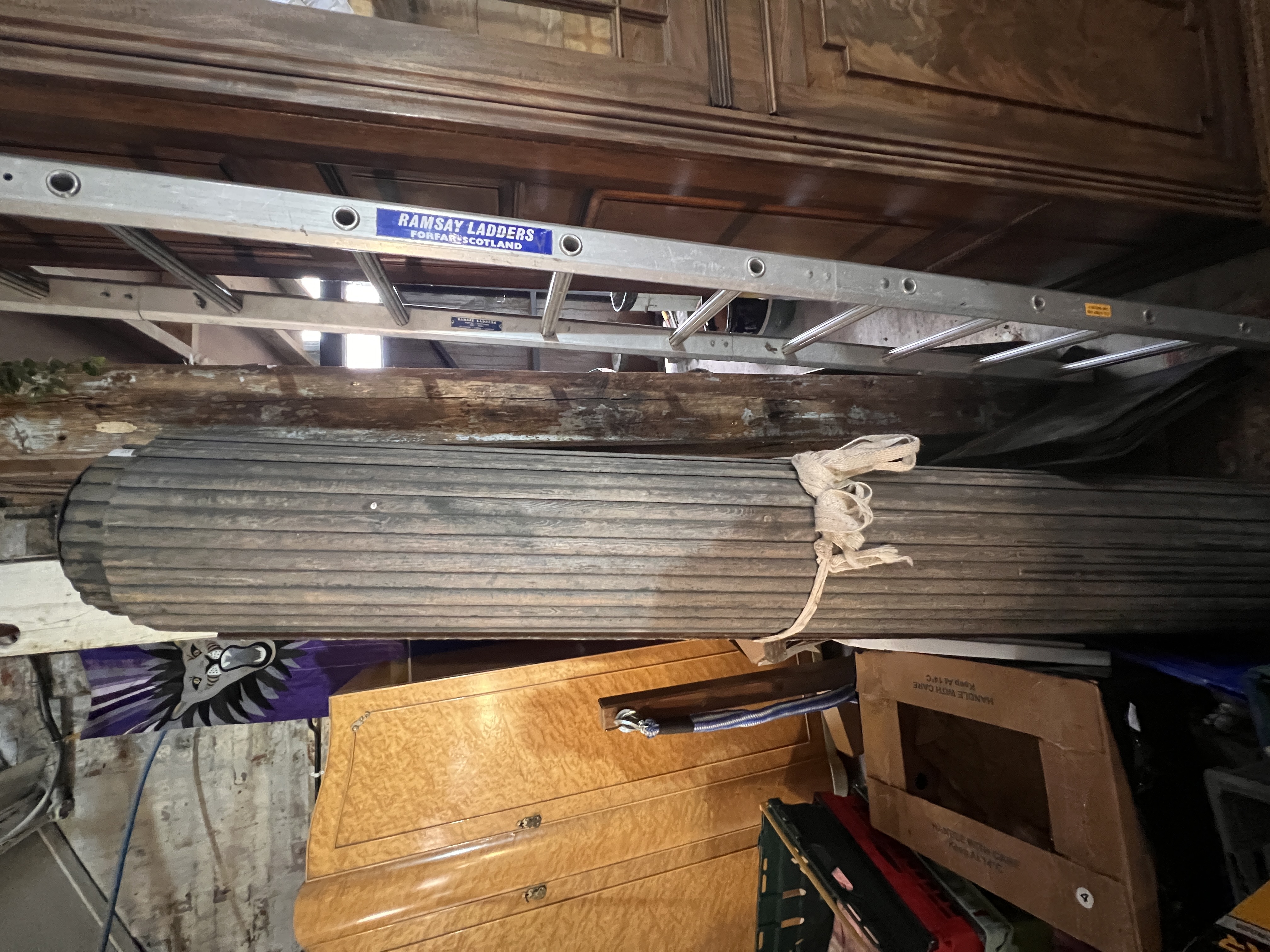 An early 20th century Salmon Barnes Co, Ulverston, Lancashire wooden roller shutter.