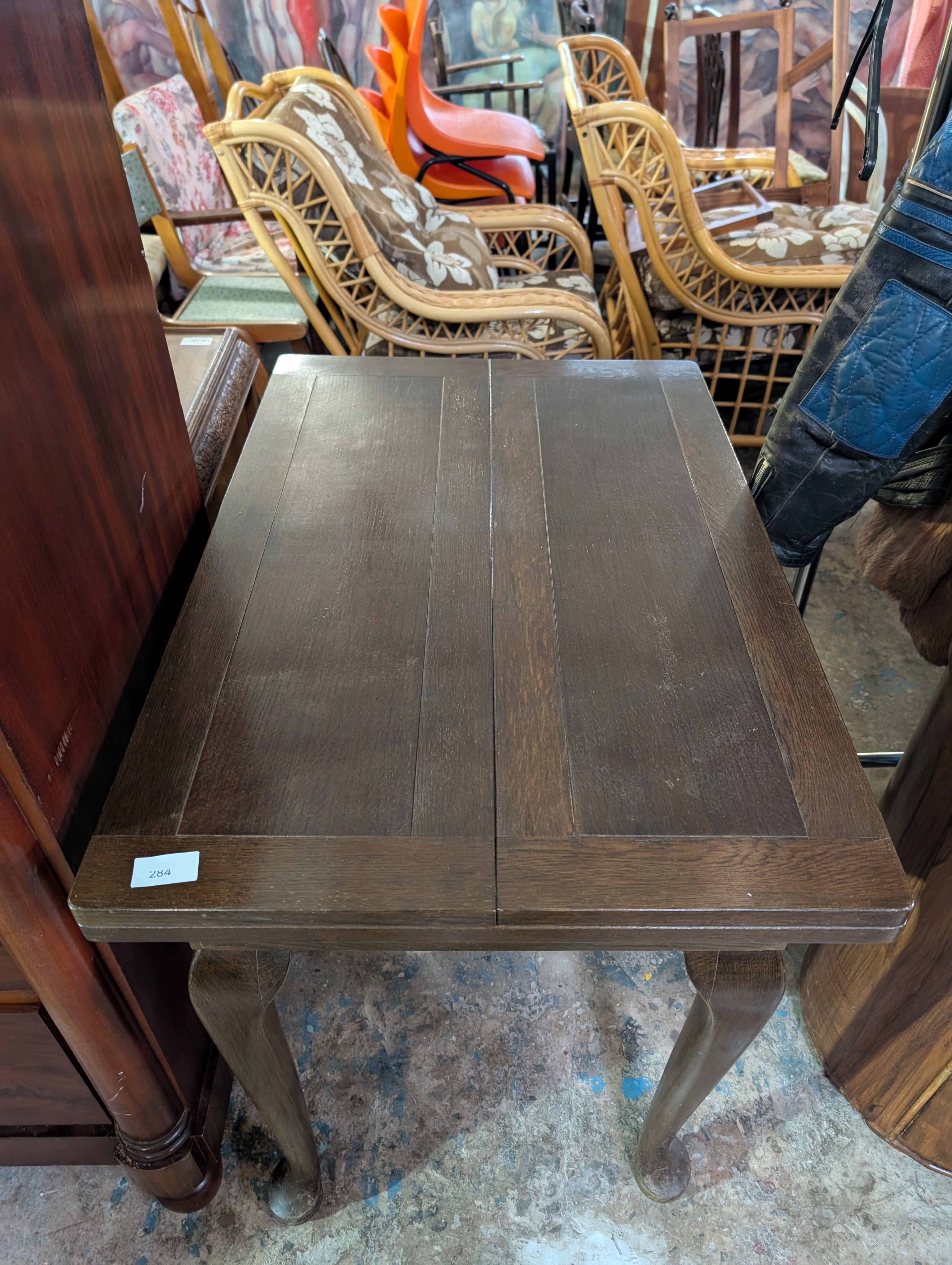 A vintage oak framed extendable dining table