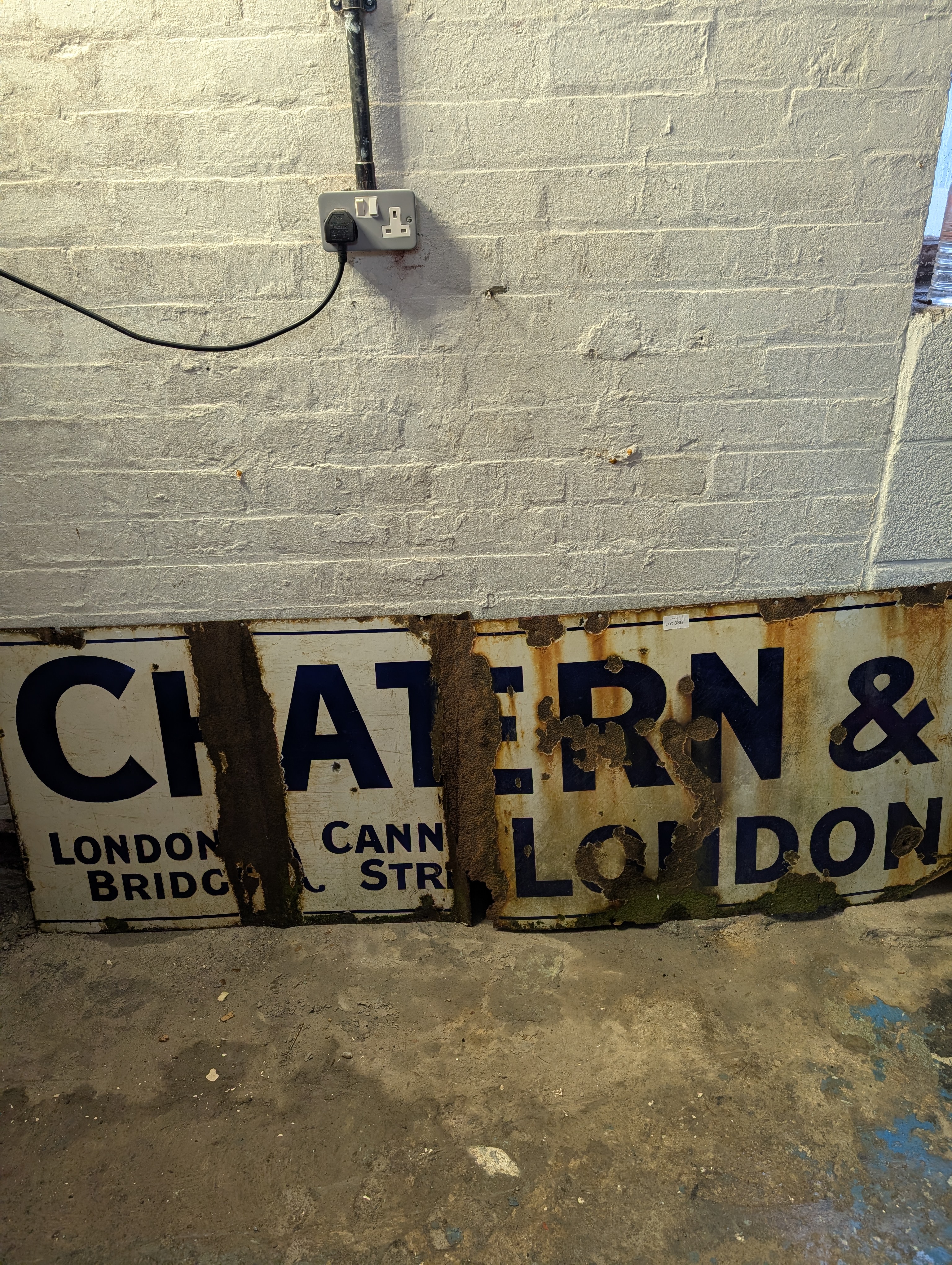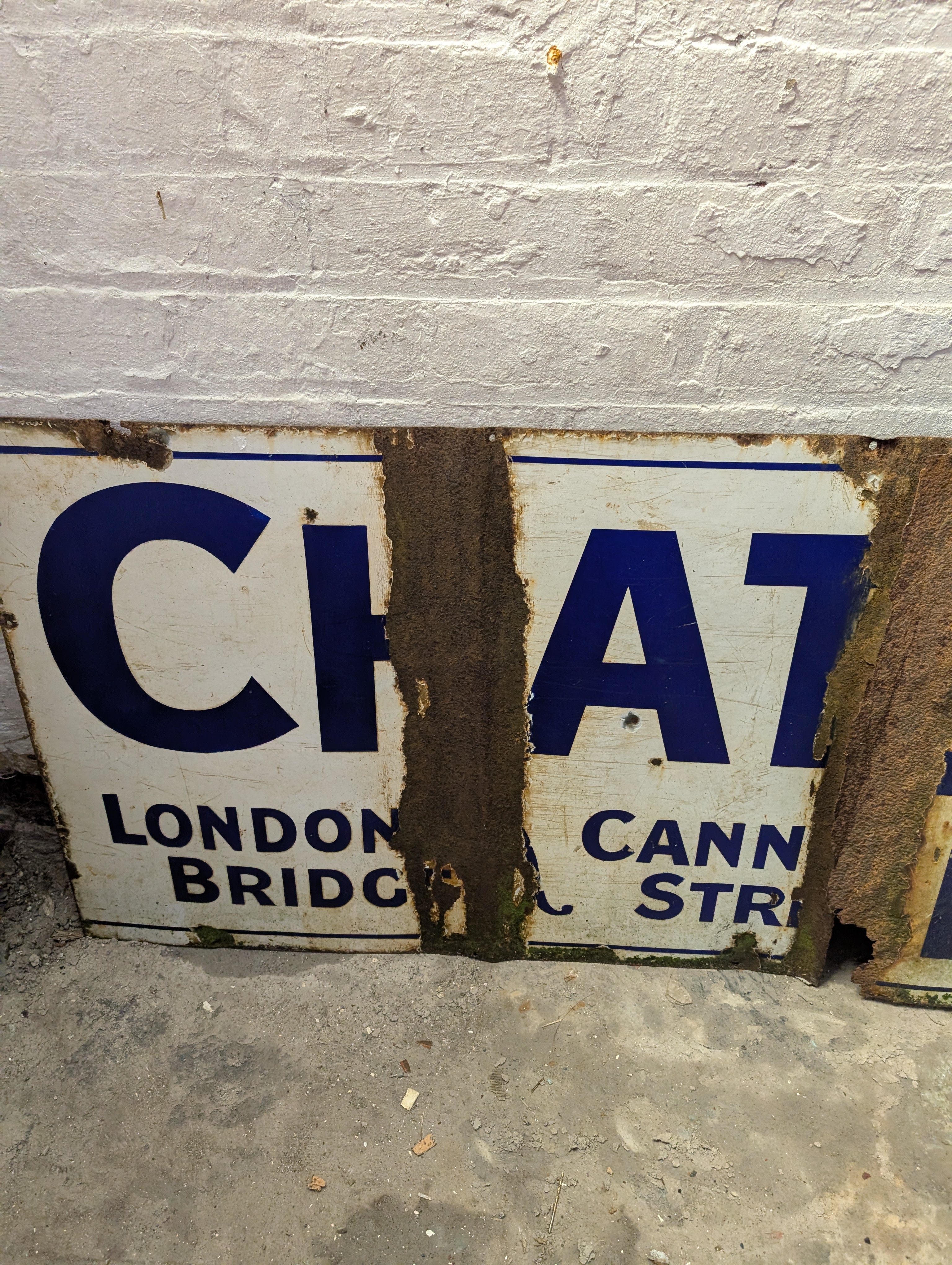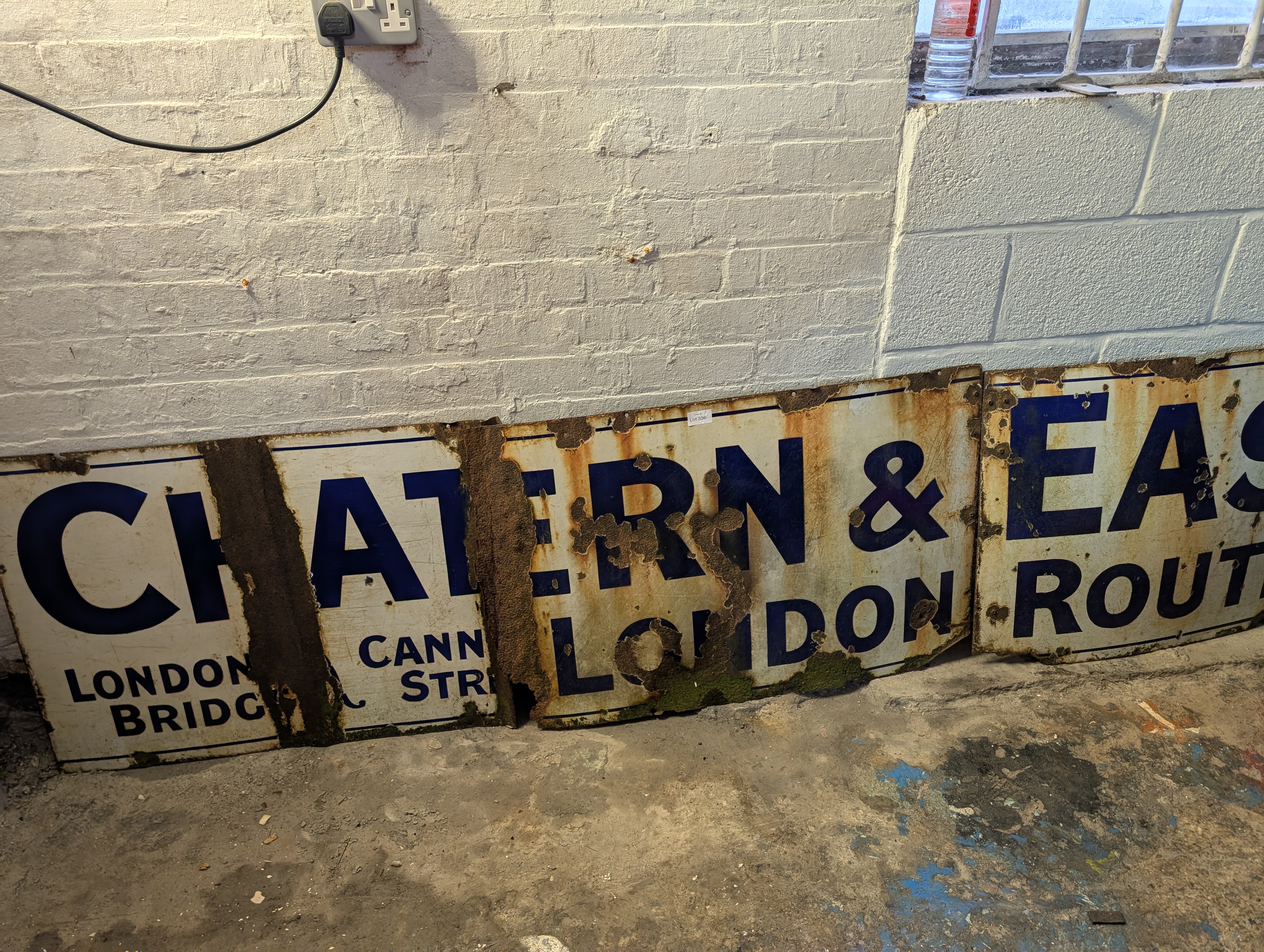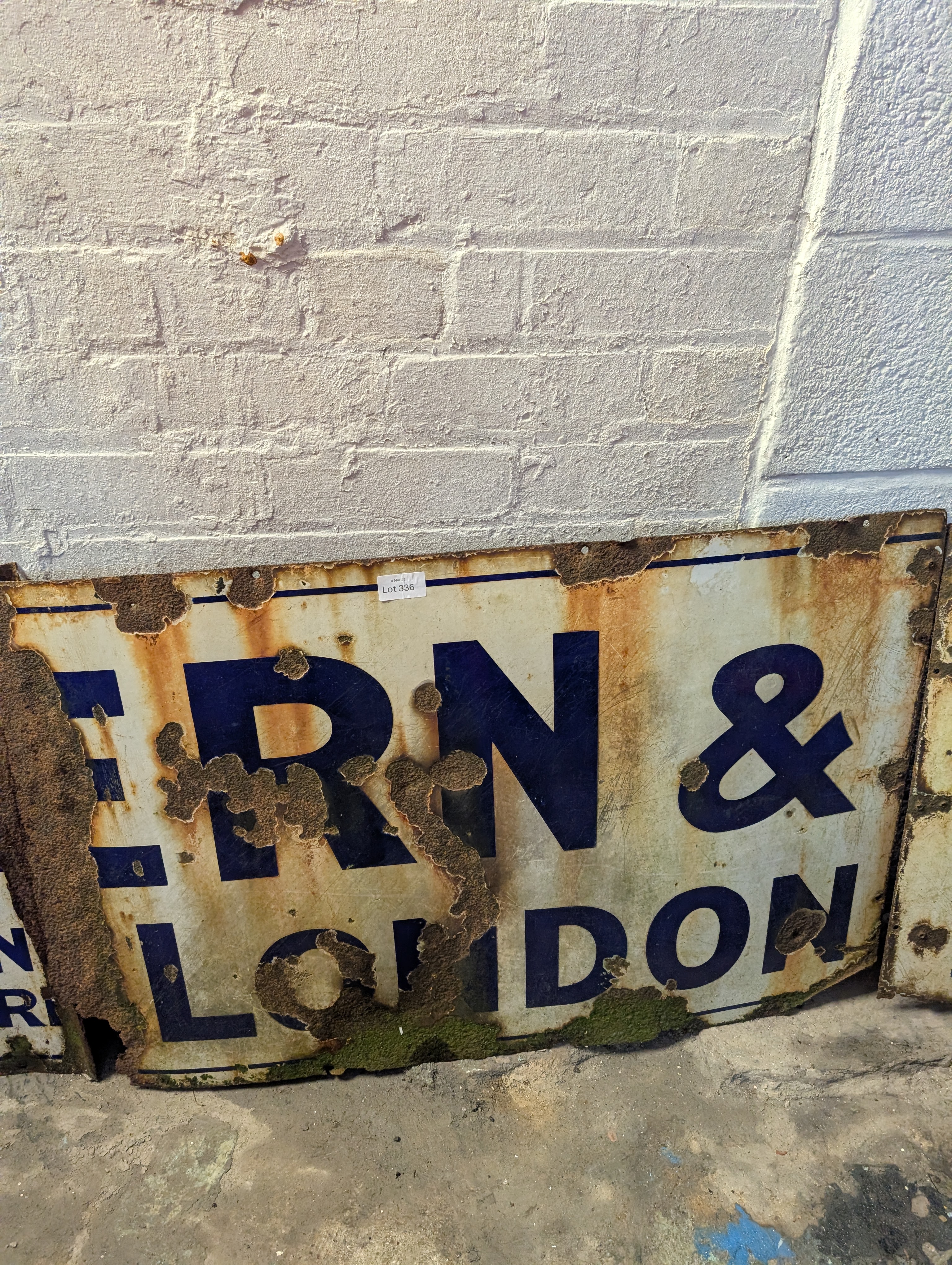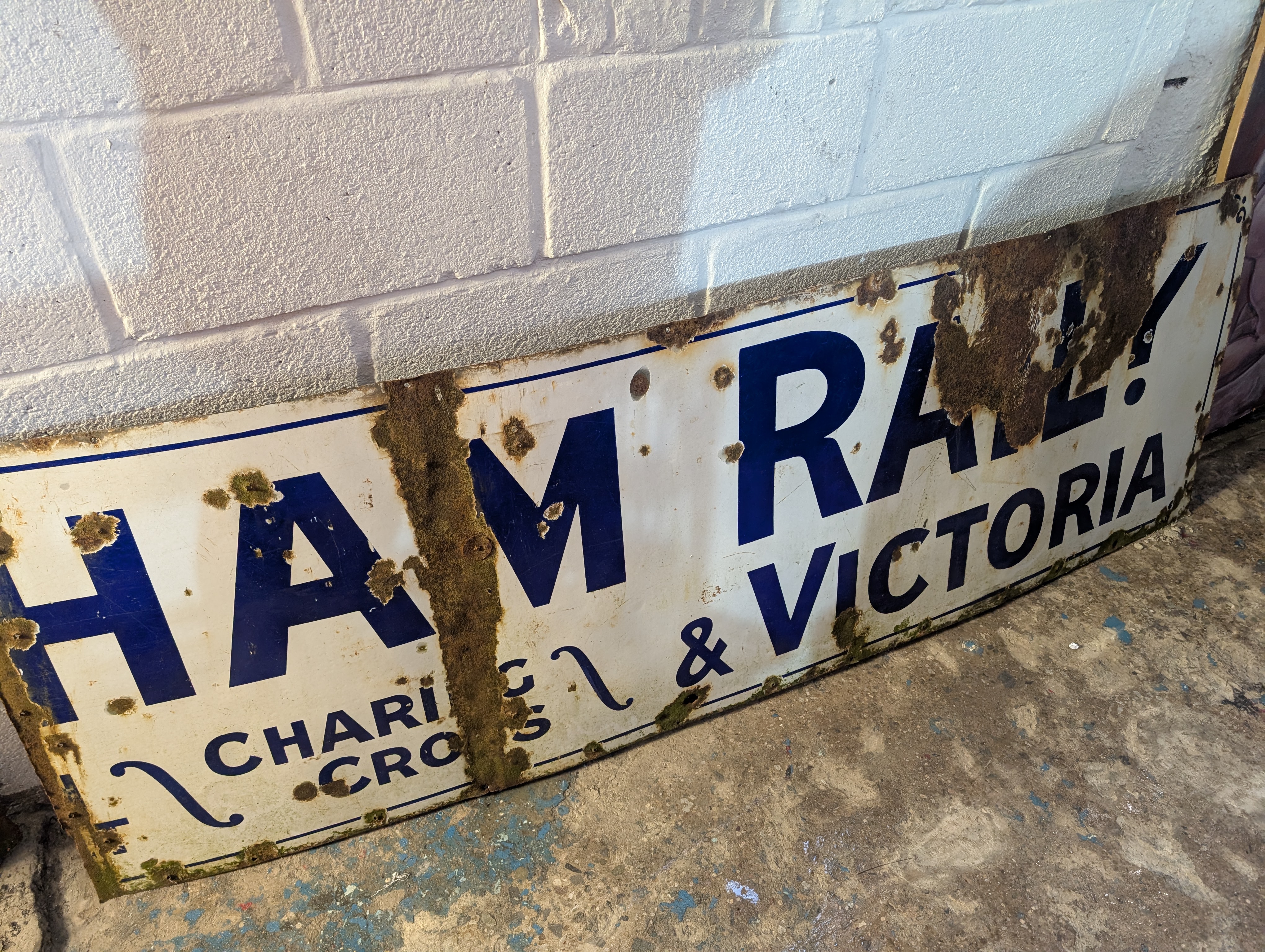 A large four piece railway related enamel advertising sing for Victoria station, London bridge etc