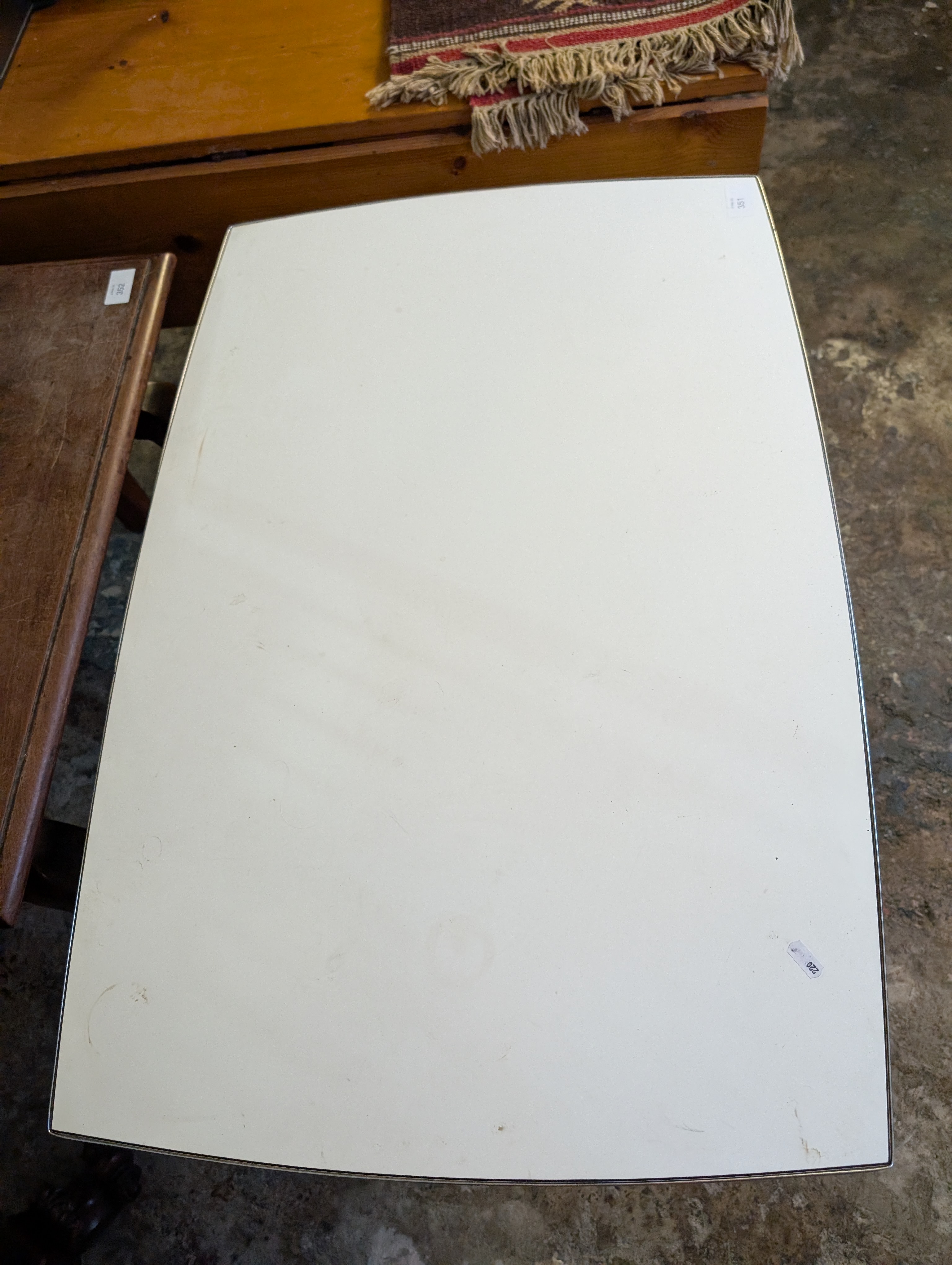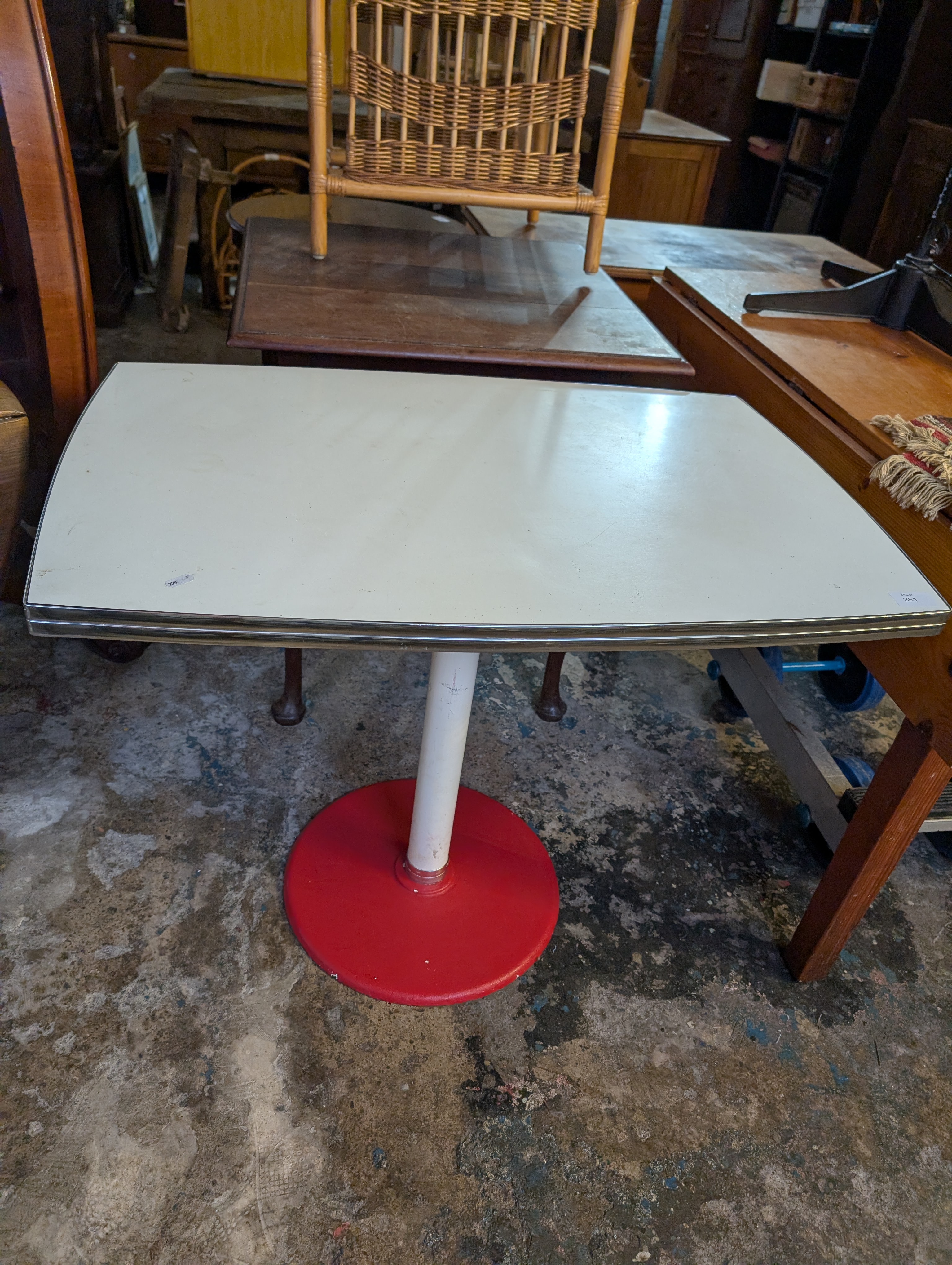 A vintage American diner style table with formica and chrome top