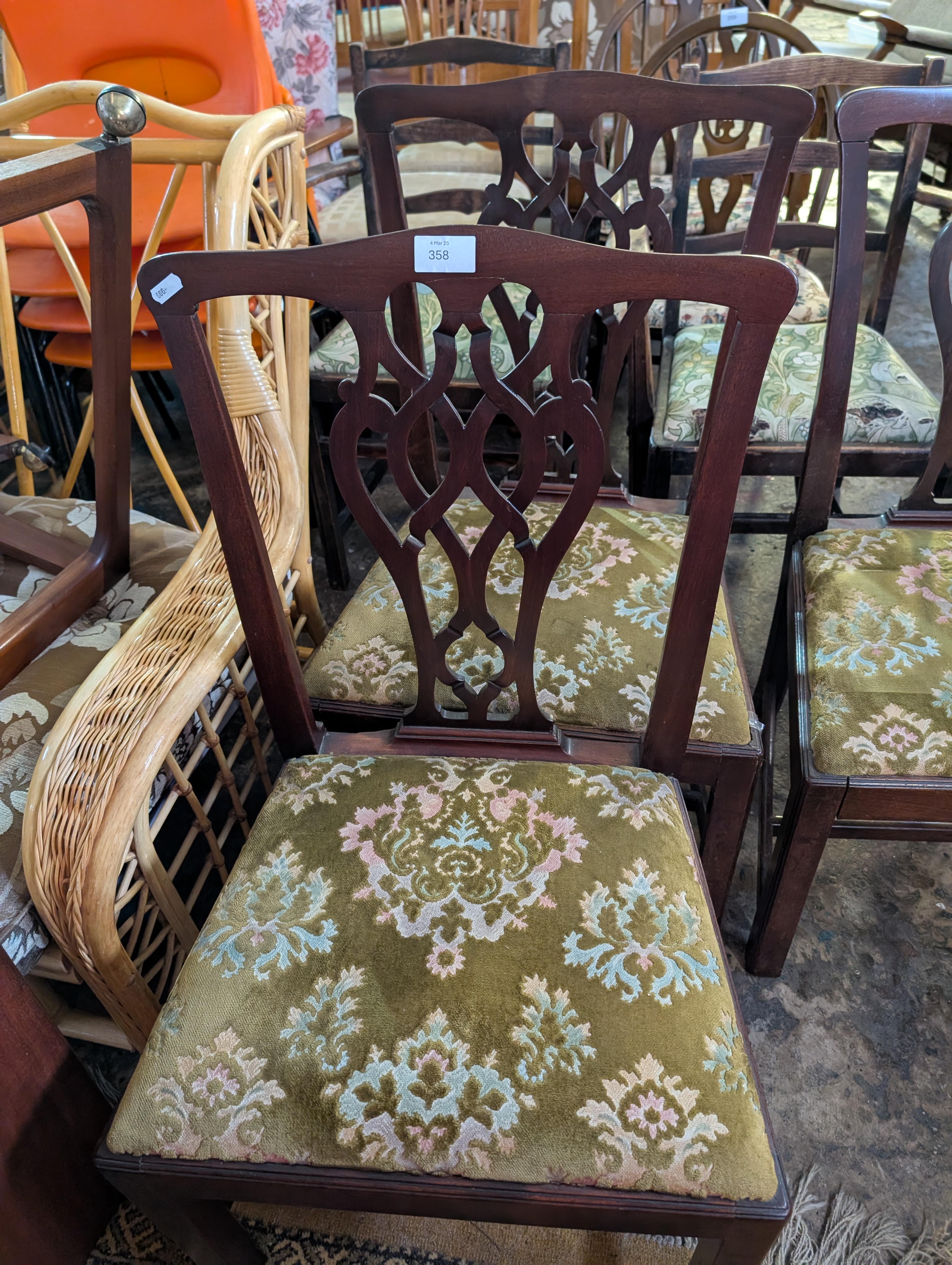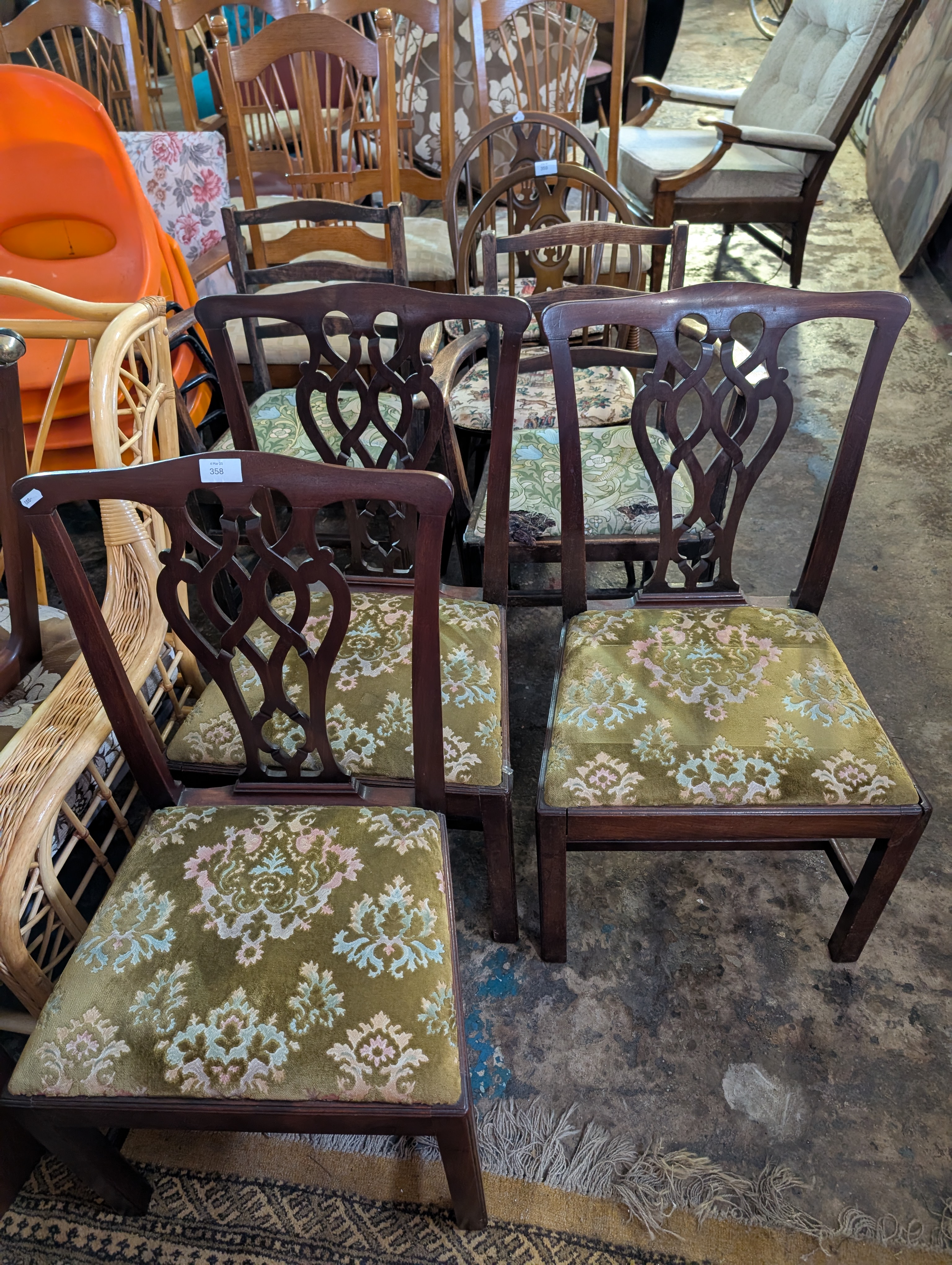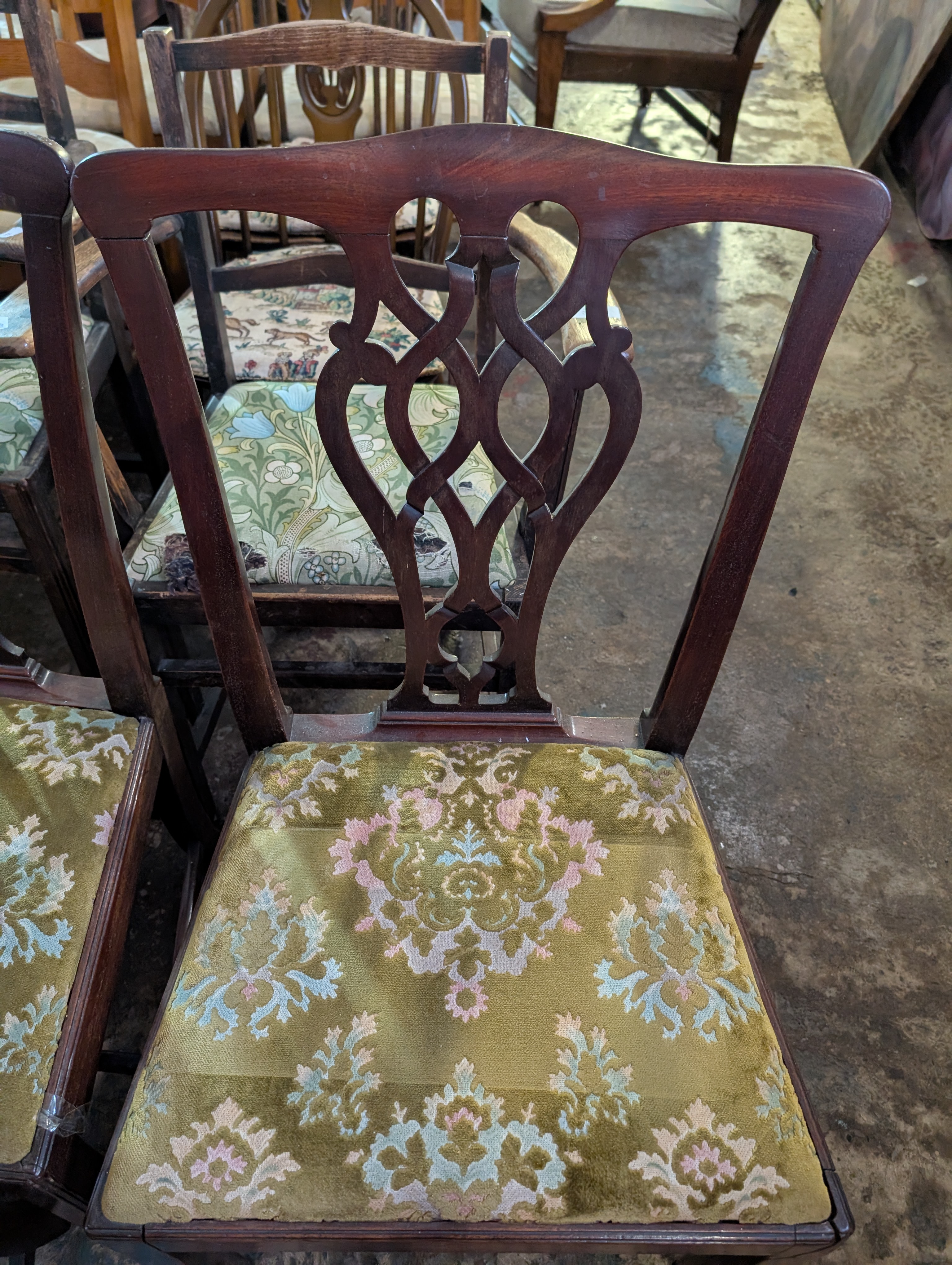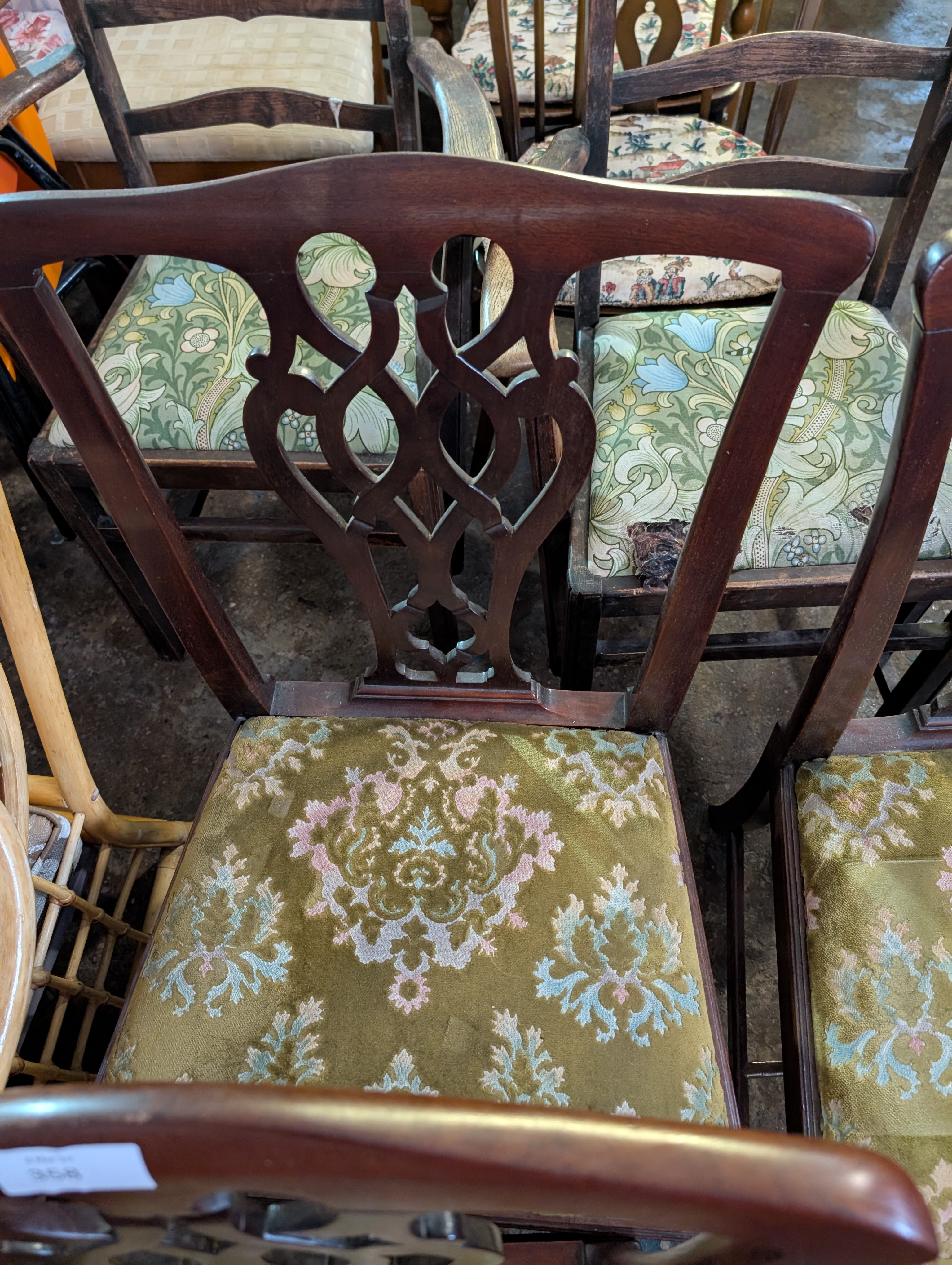 A set of three Georgian dining chairs in a Chippendale style