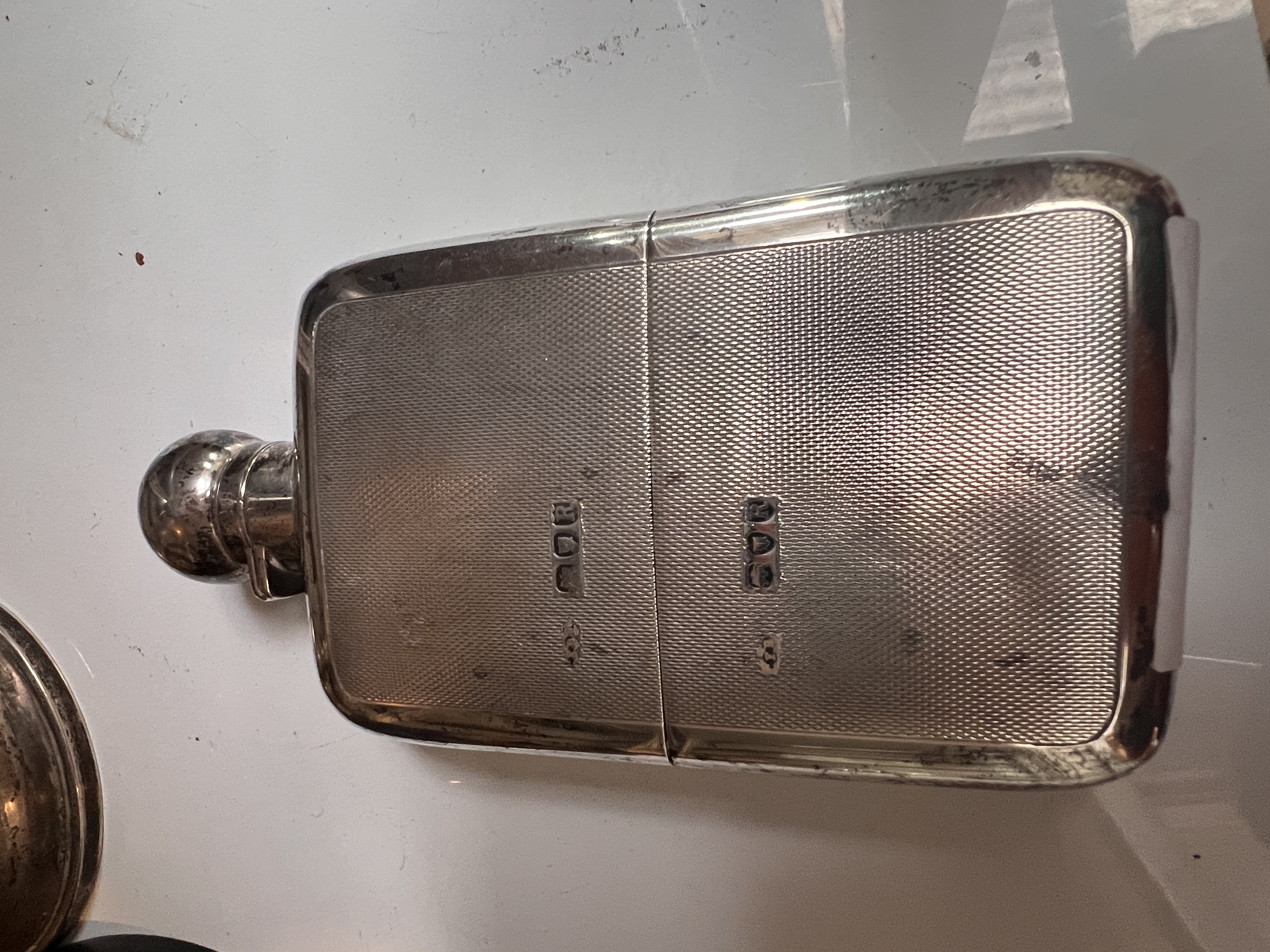 A Hm silver hipflask with detachable HM cup. 218 grams