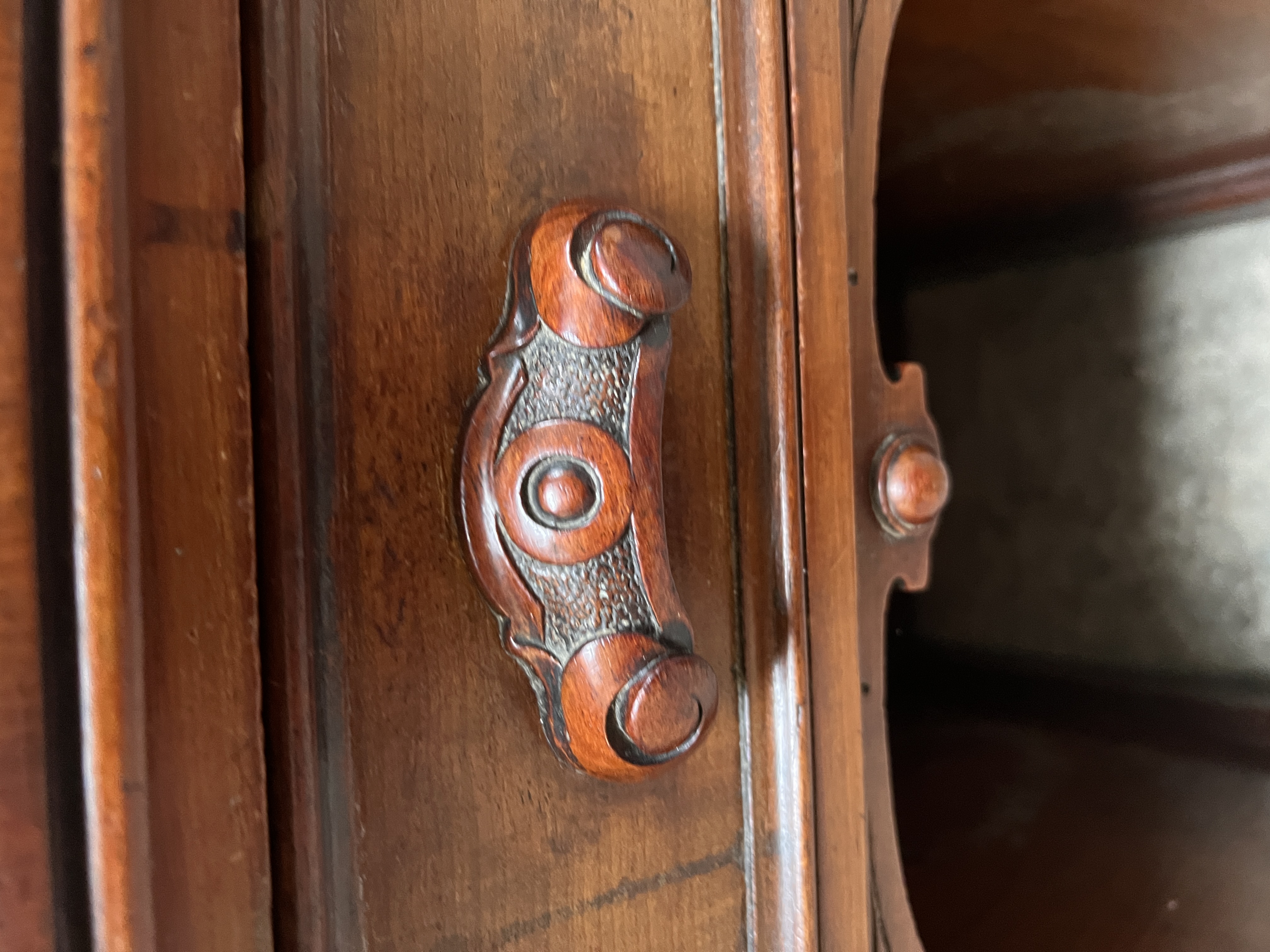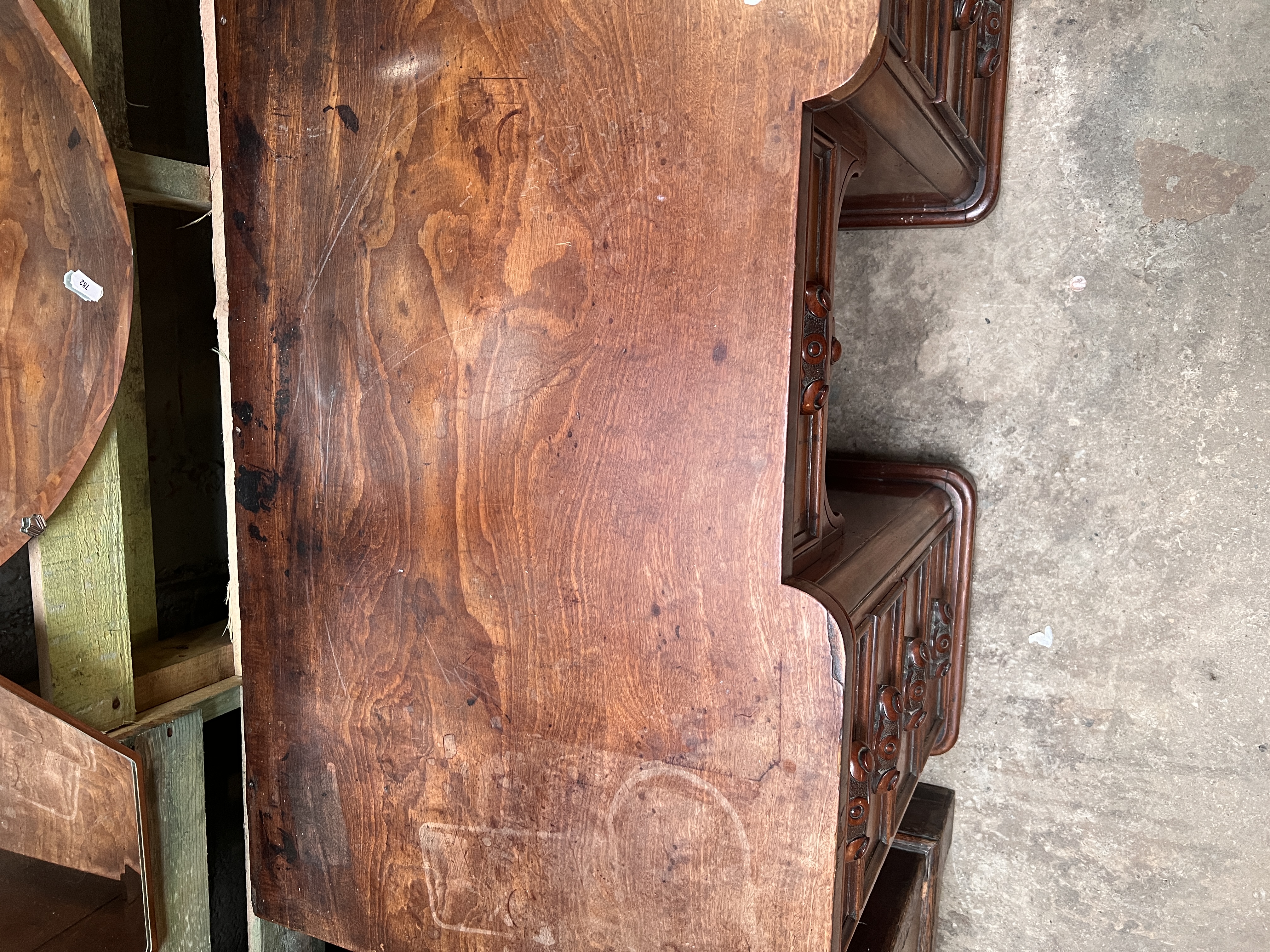 A Victorian mahogany framed knee-hole desk with carved handles.