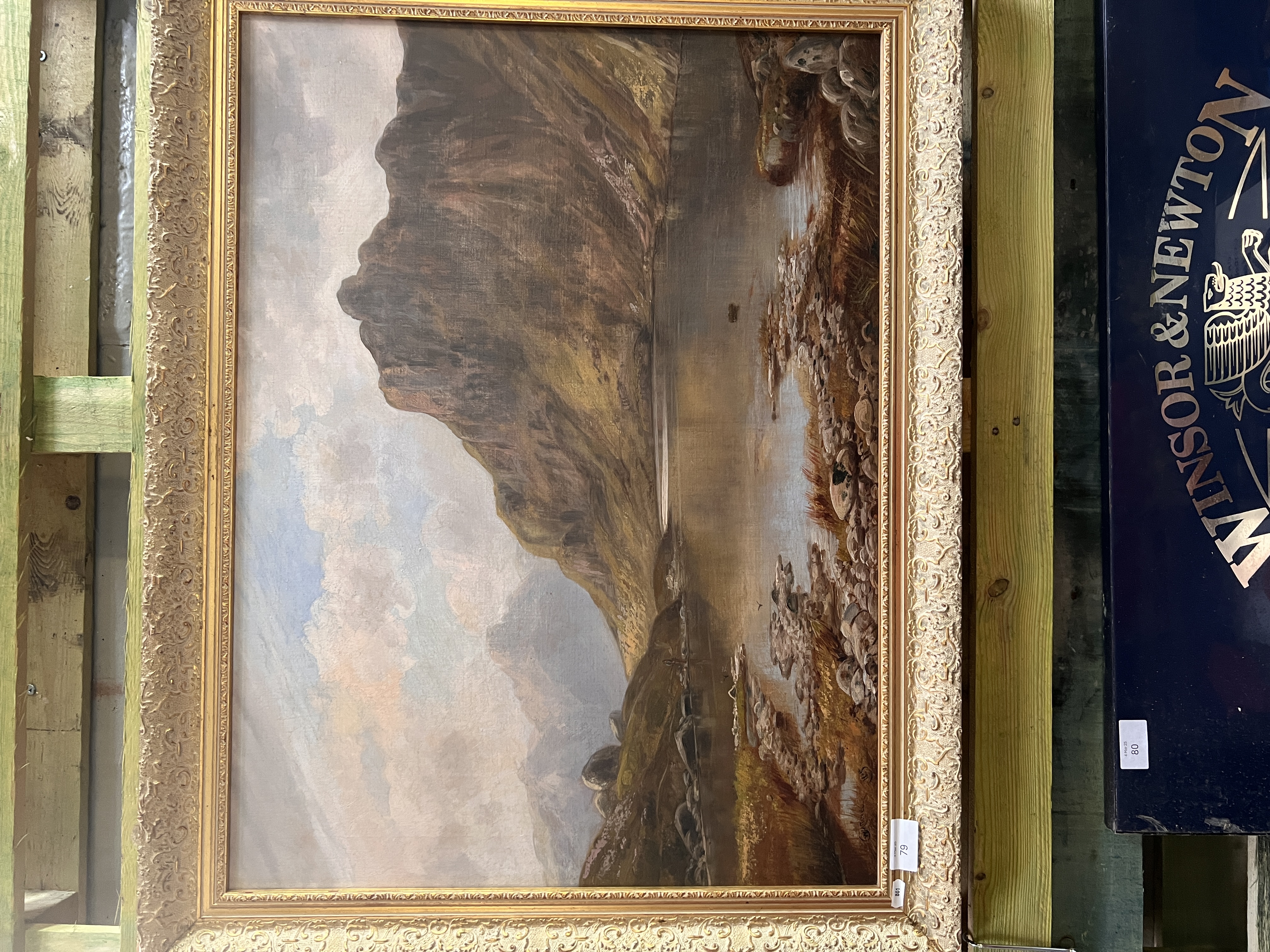 A Victorian oil on canvas by W Mitchell 1885 depicting lake land scenery. gilt and gesso framed