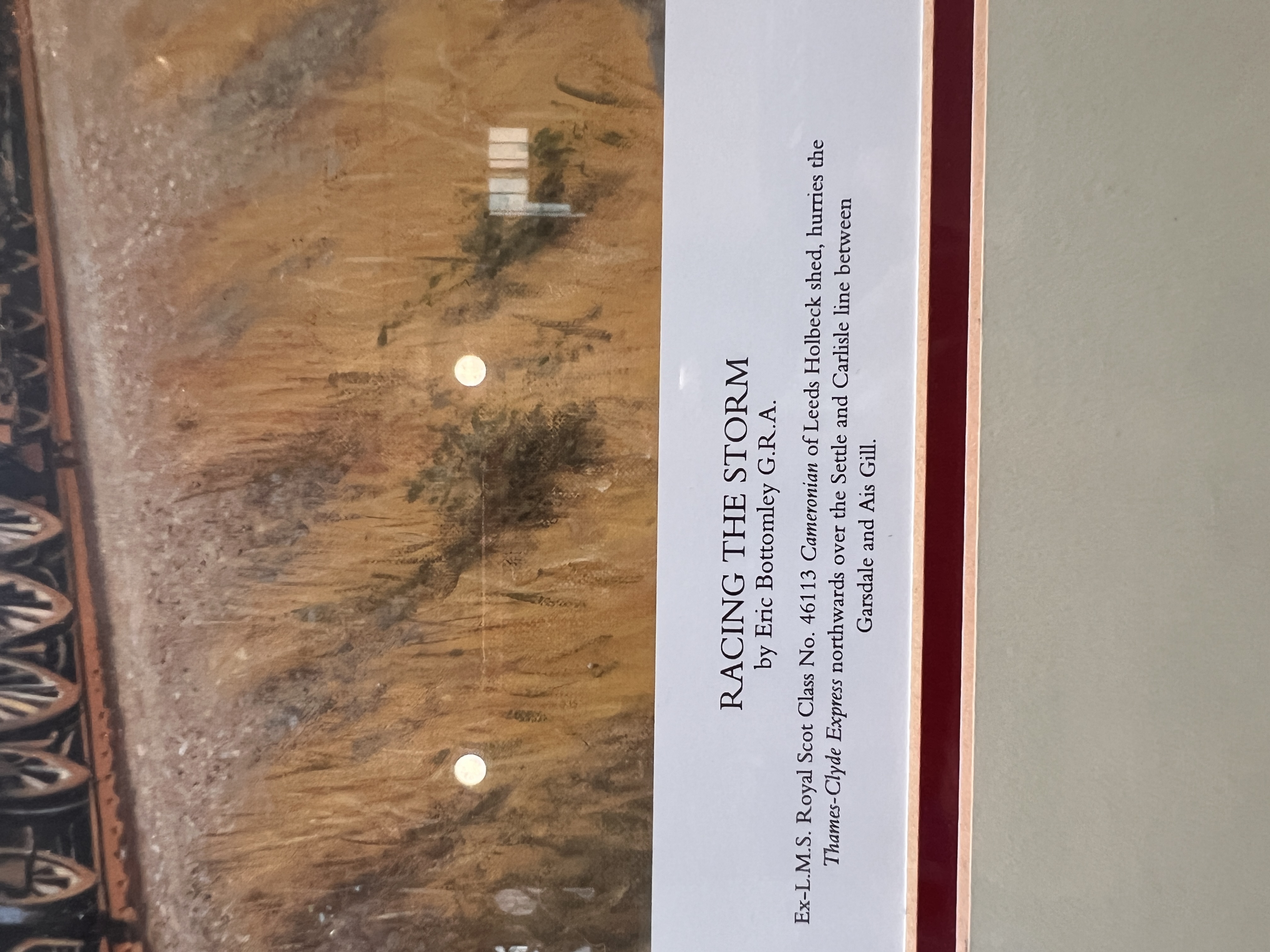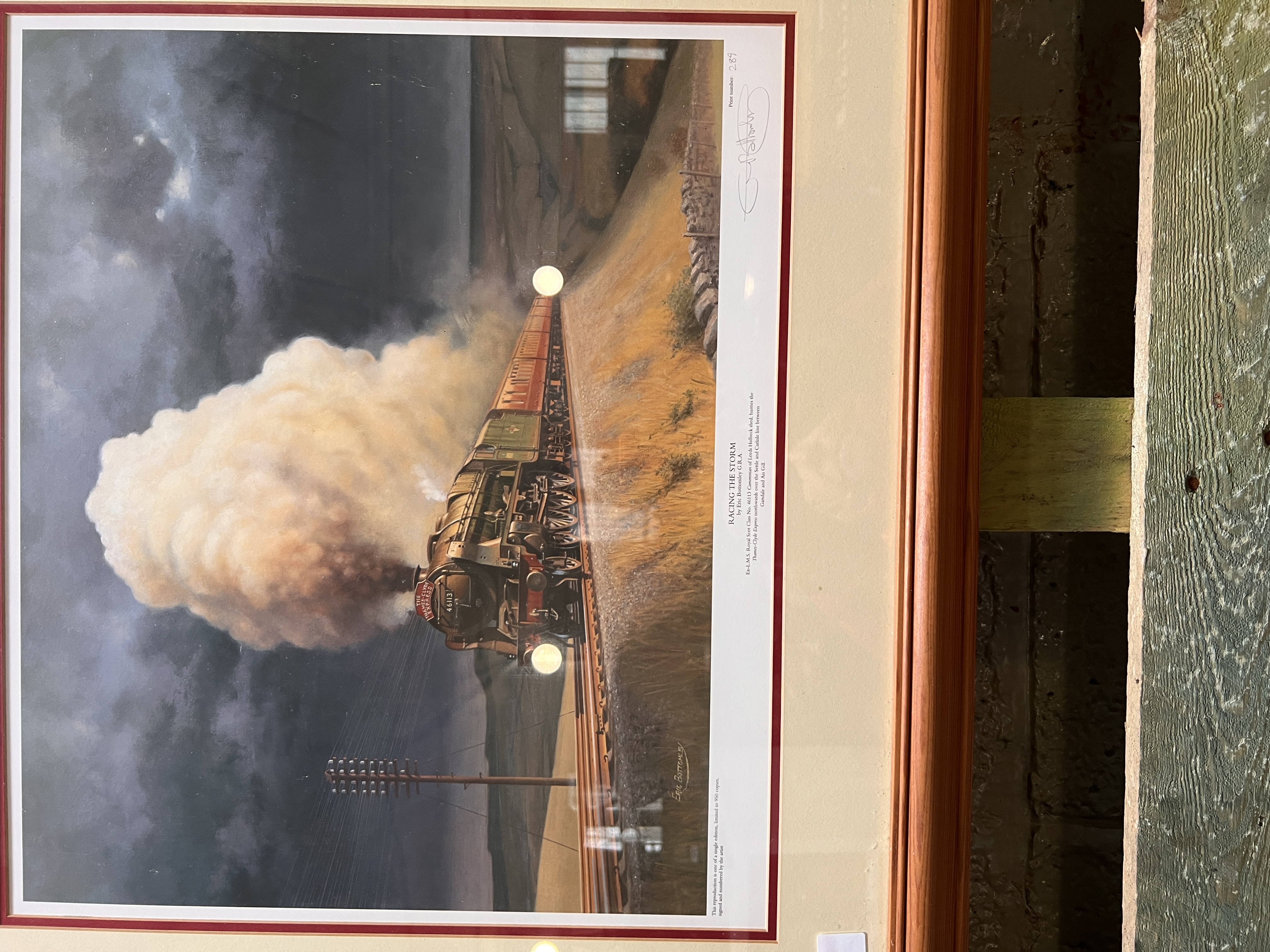 A limited edition train print titled Racing the Storm after Eric Bottomley