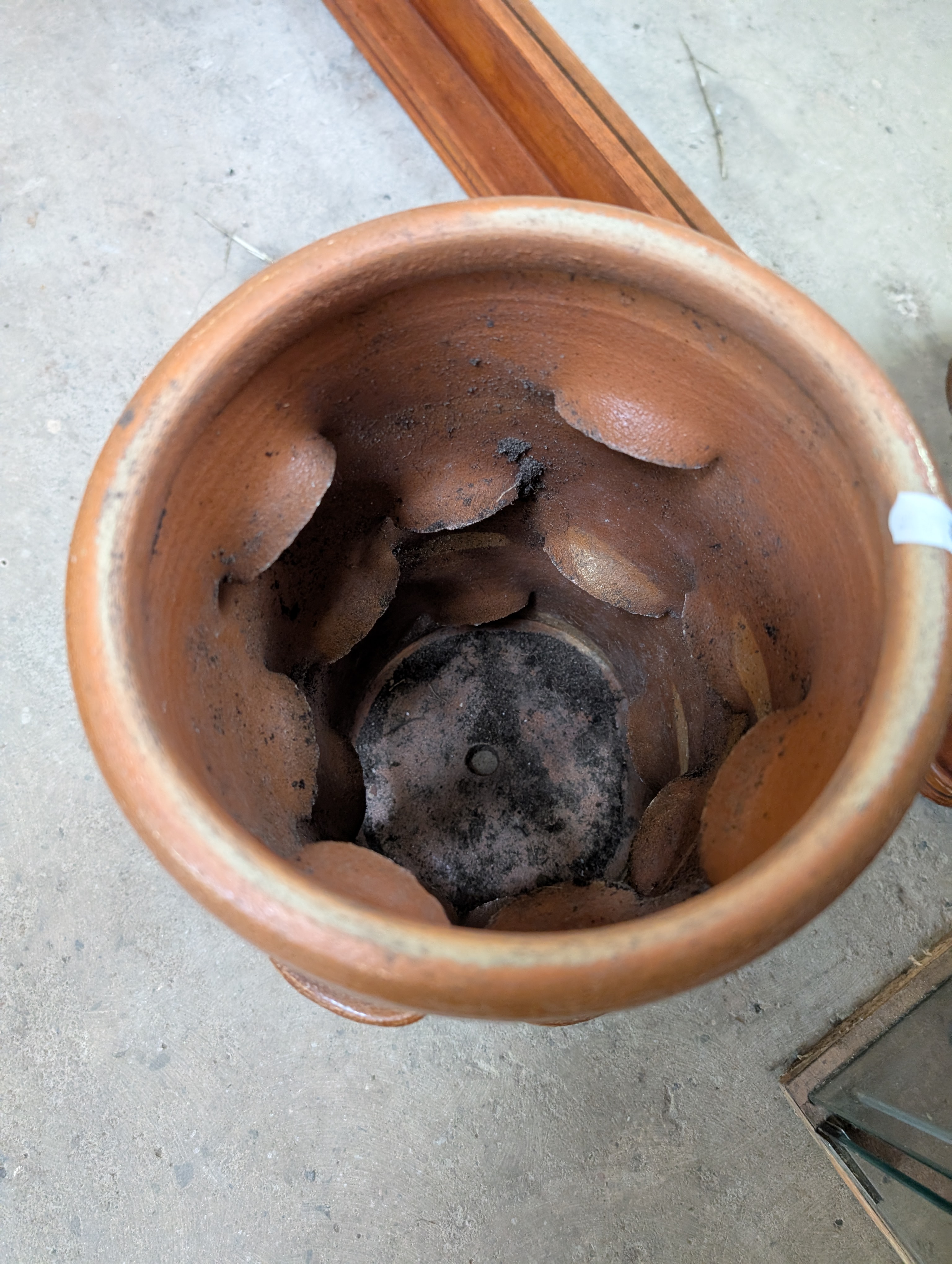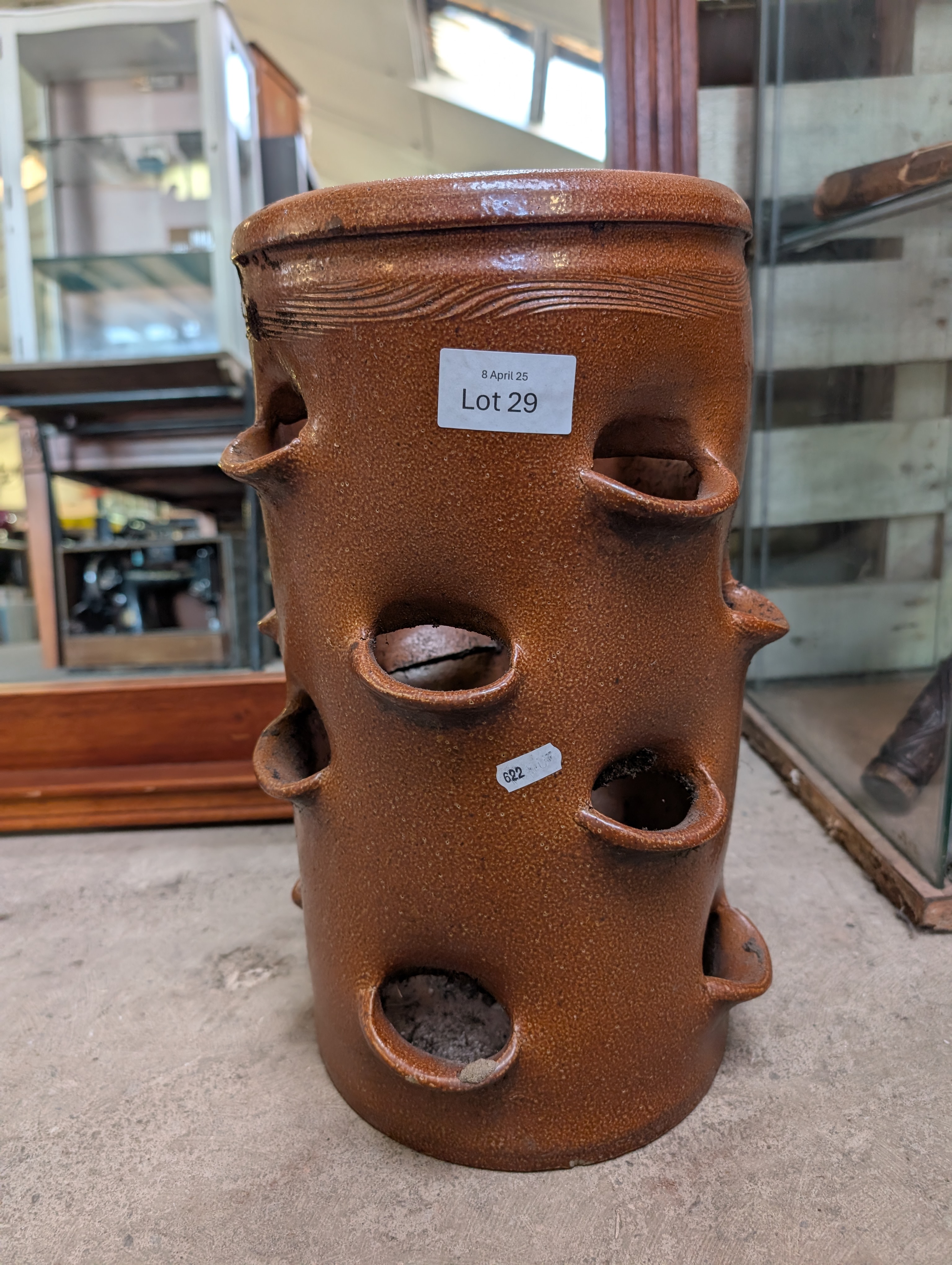 A vintage terracotta strawberry planter 40cm tall in good condition