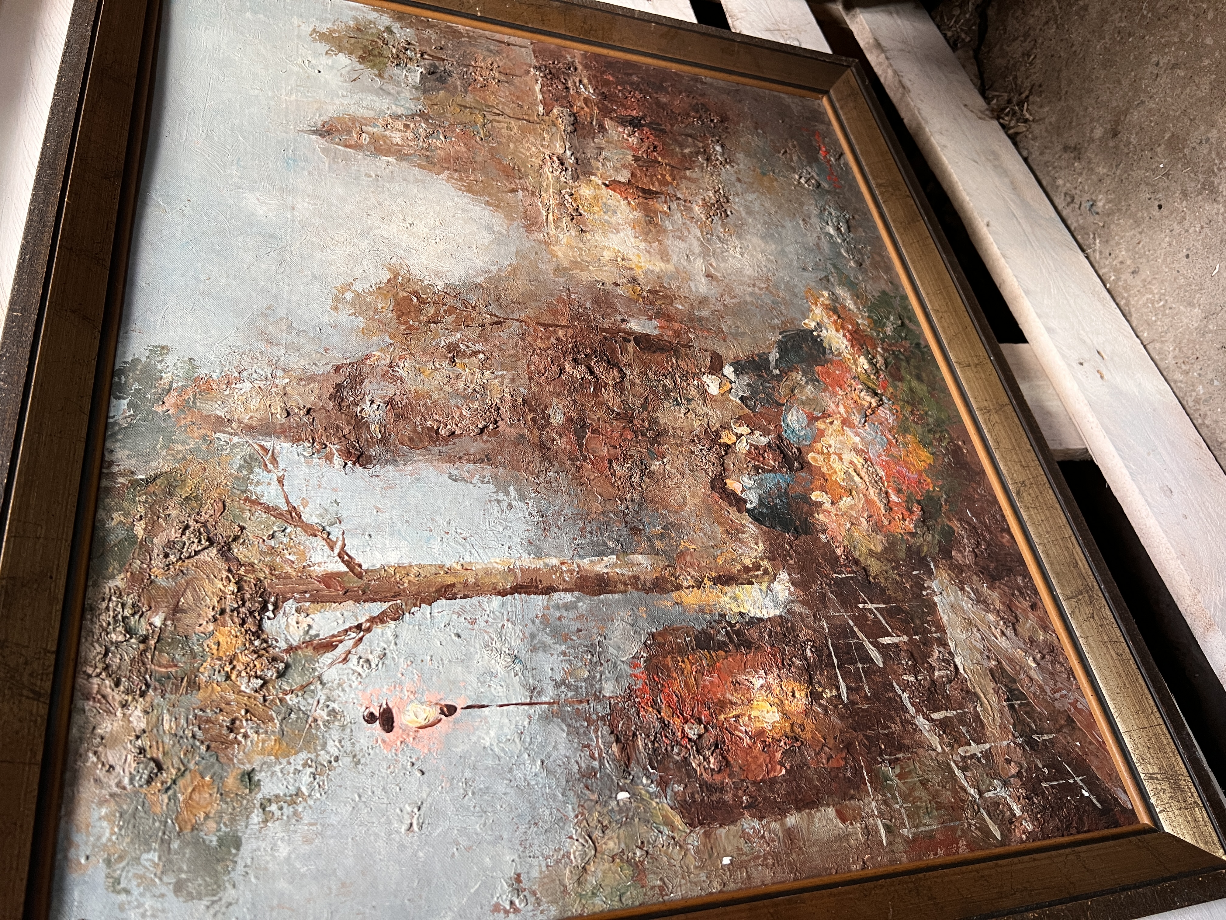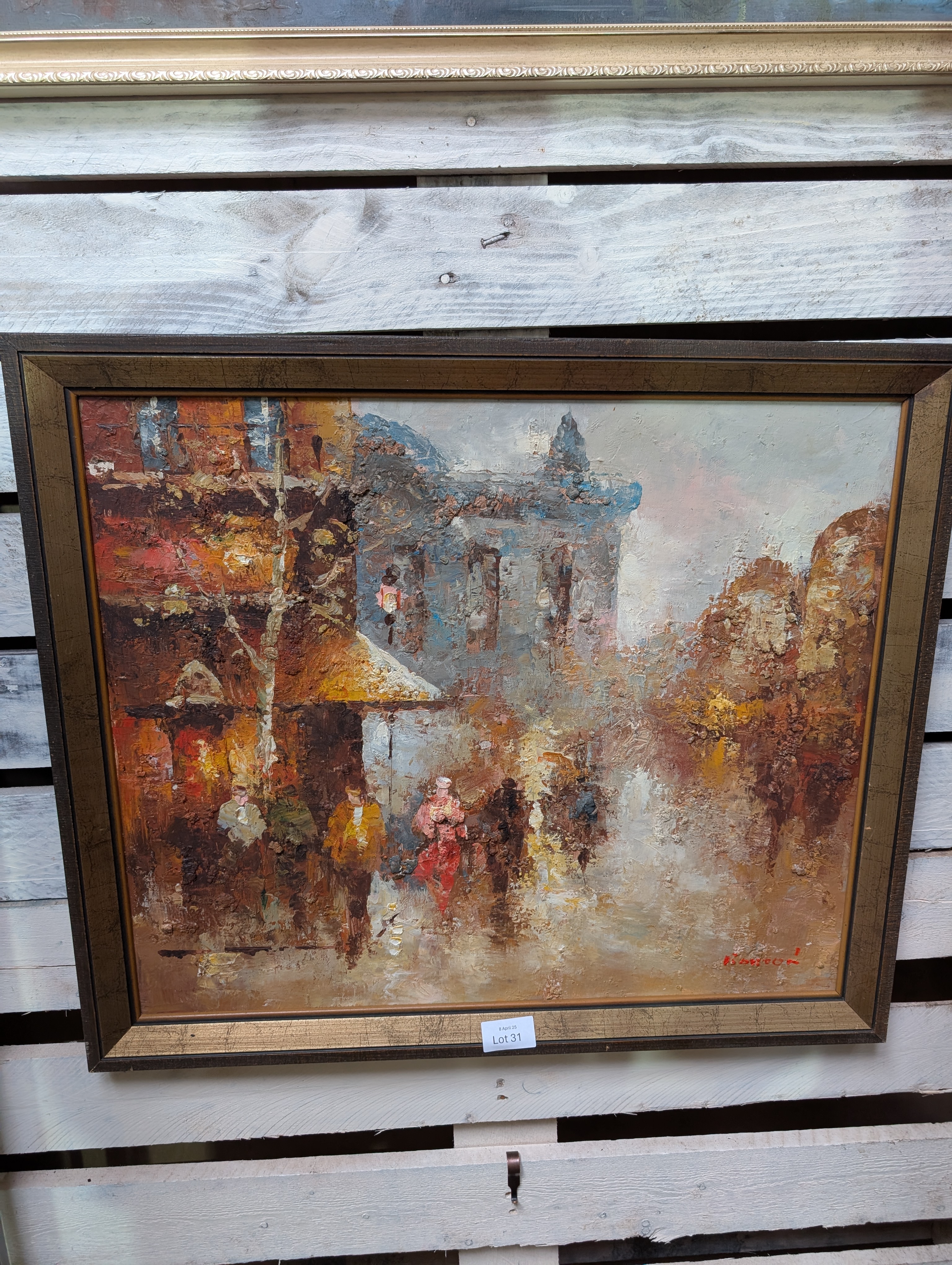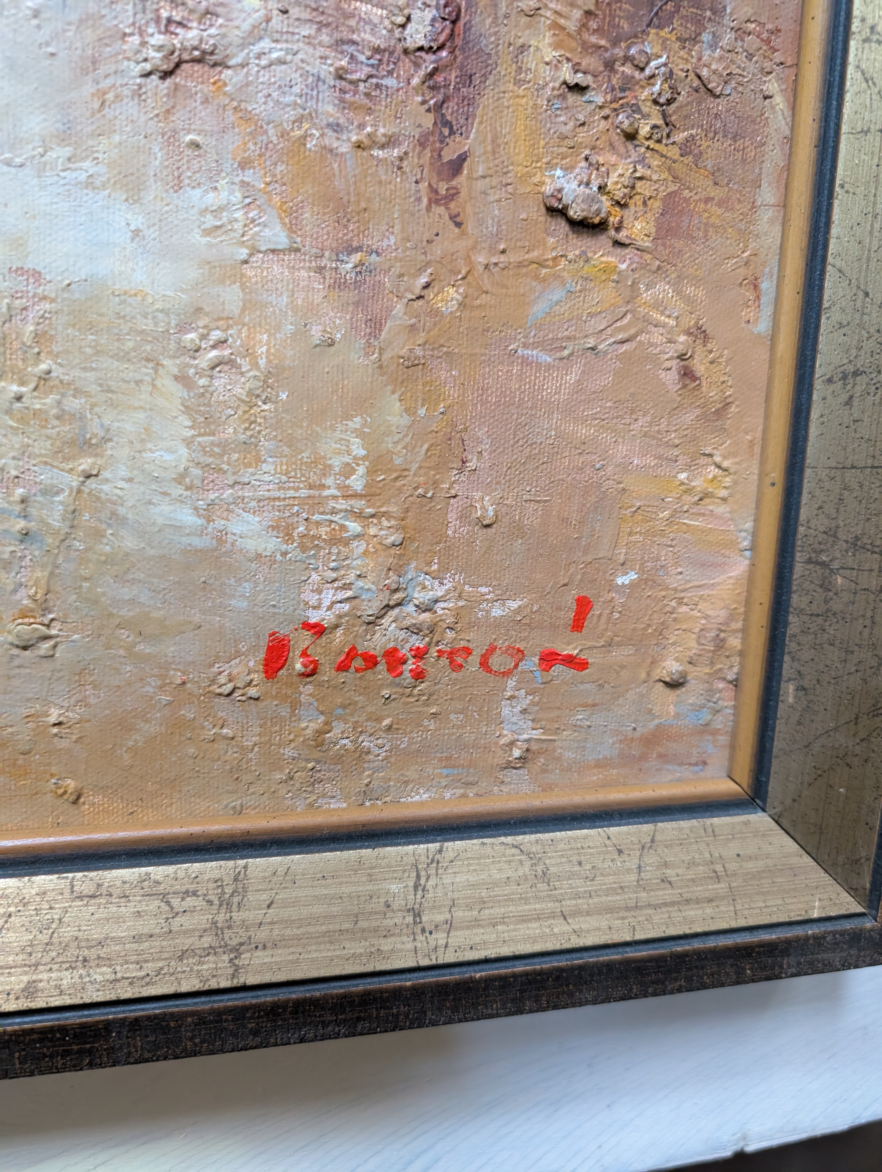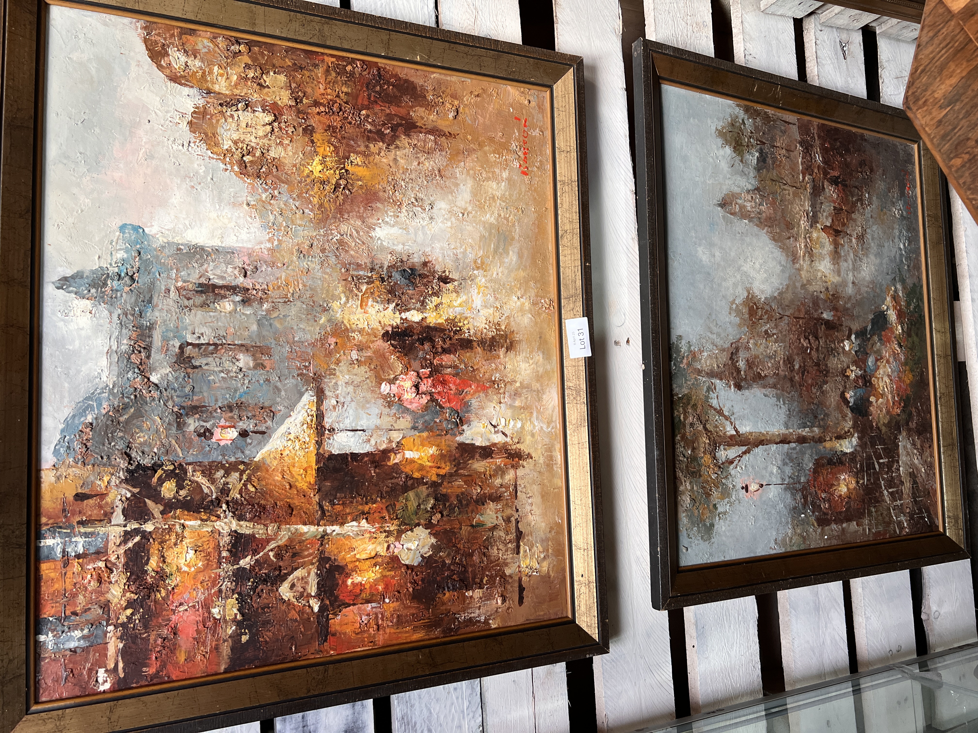 Two mid-century impasto oils on canvas of impressionist European street scene possibly Paris by Edward Barton 1926-2012