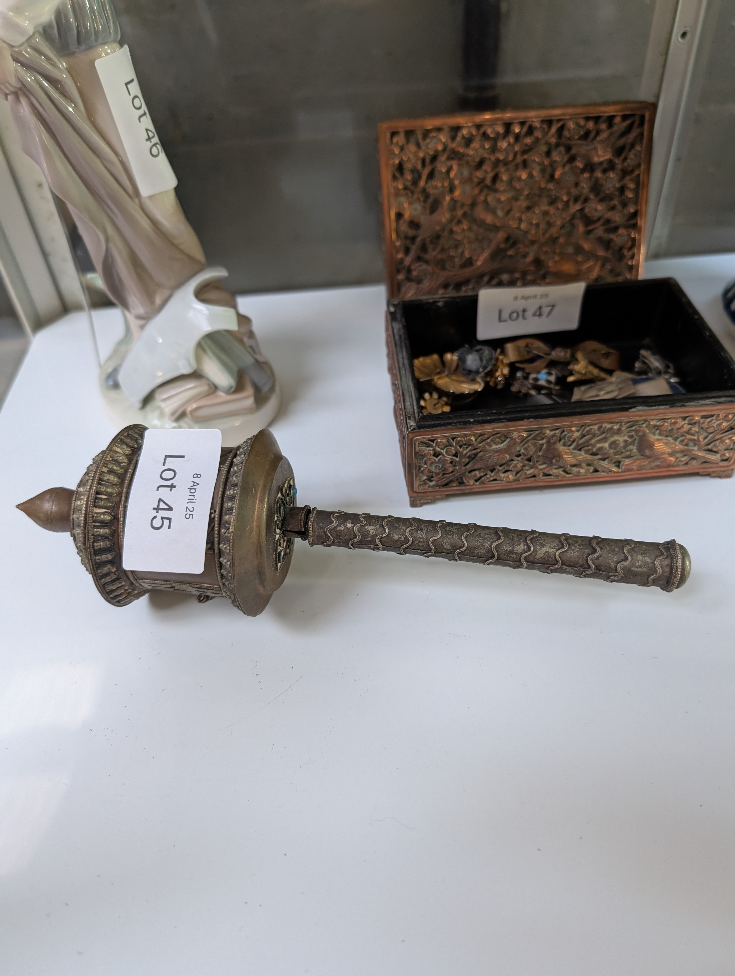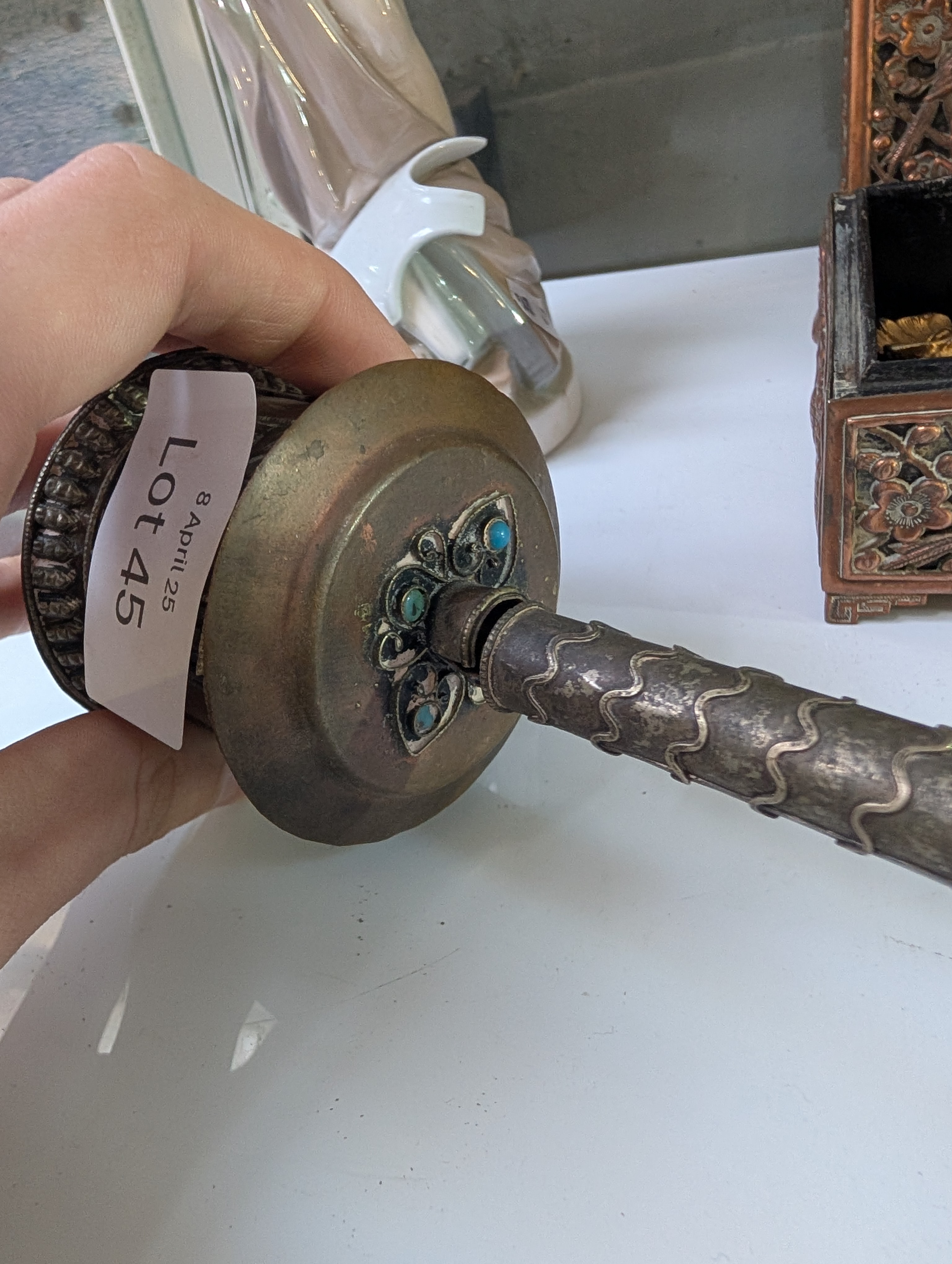 A vintage Tibetan Buddhist prayer wheel.