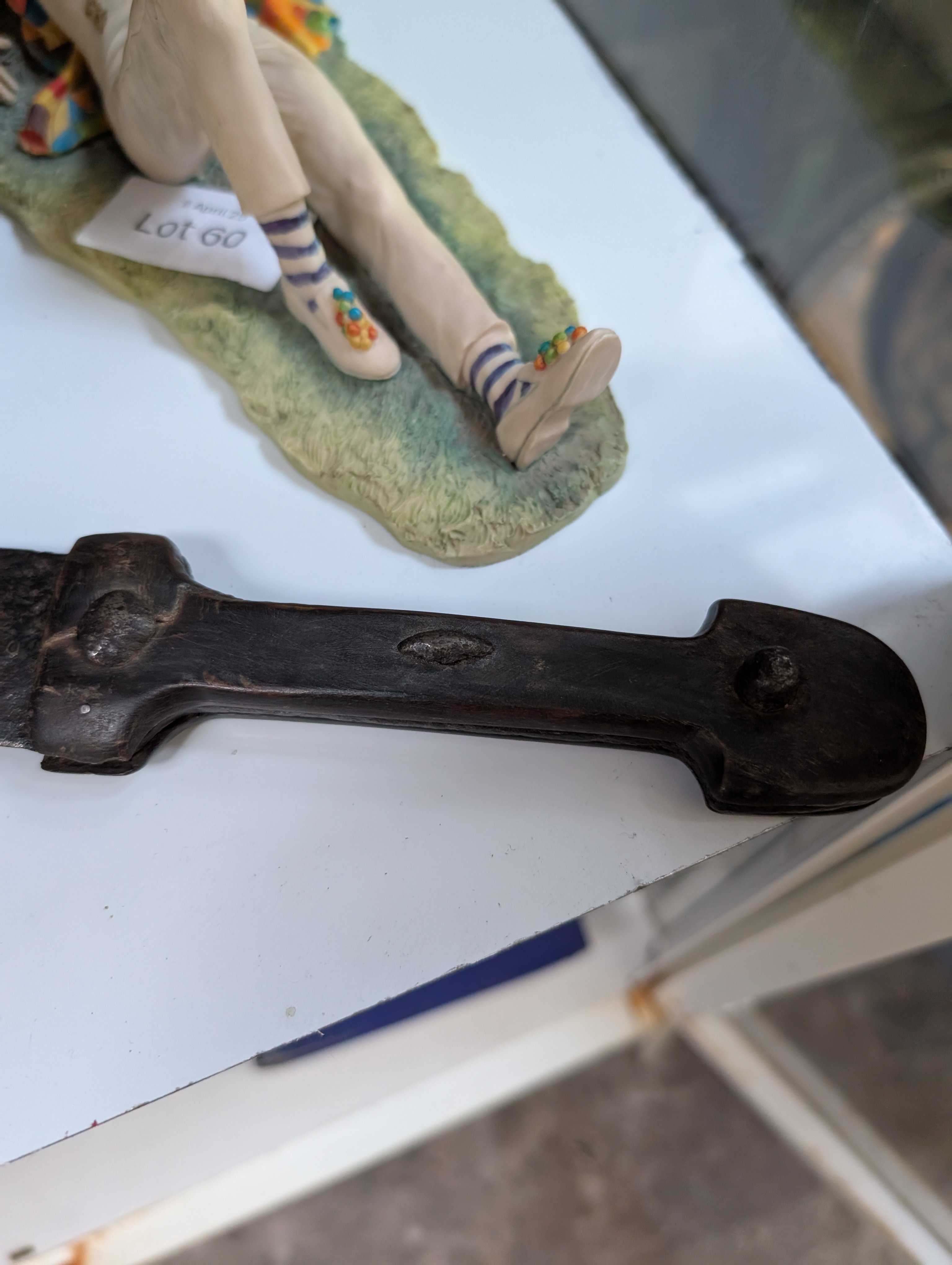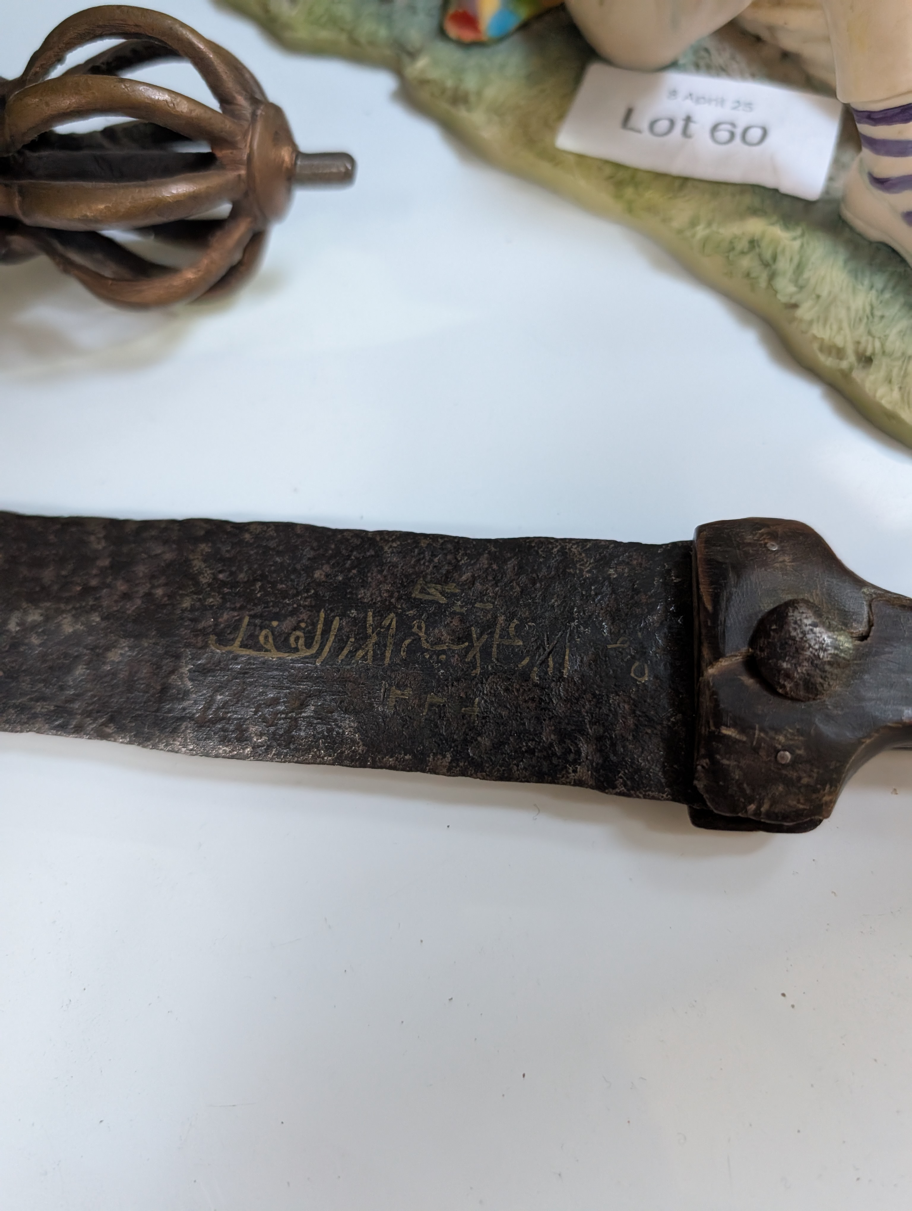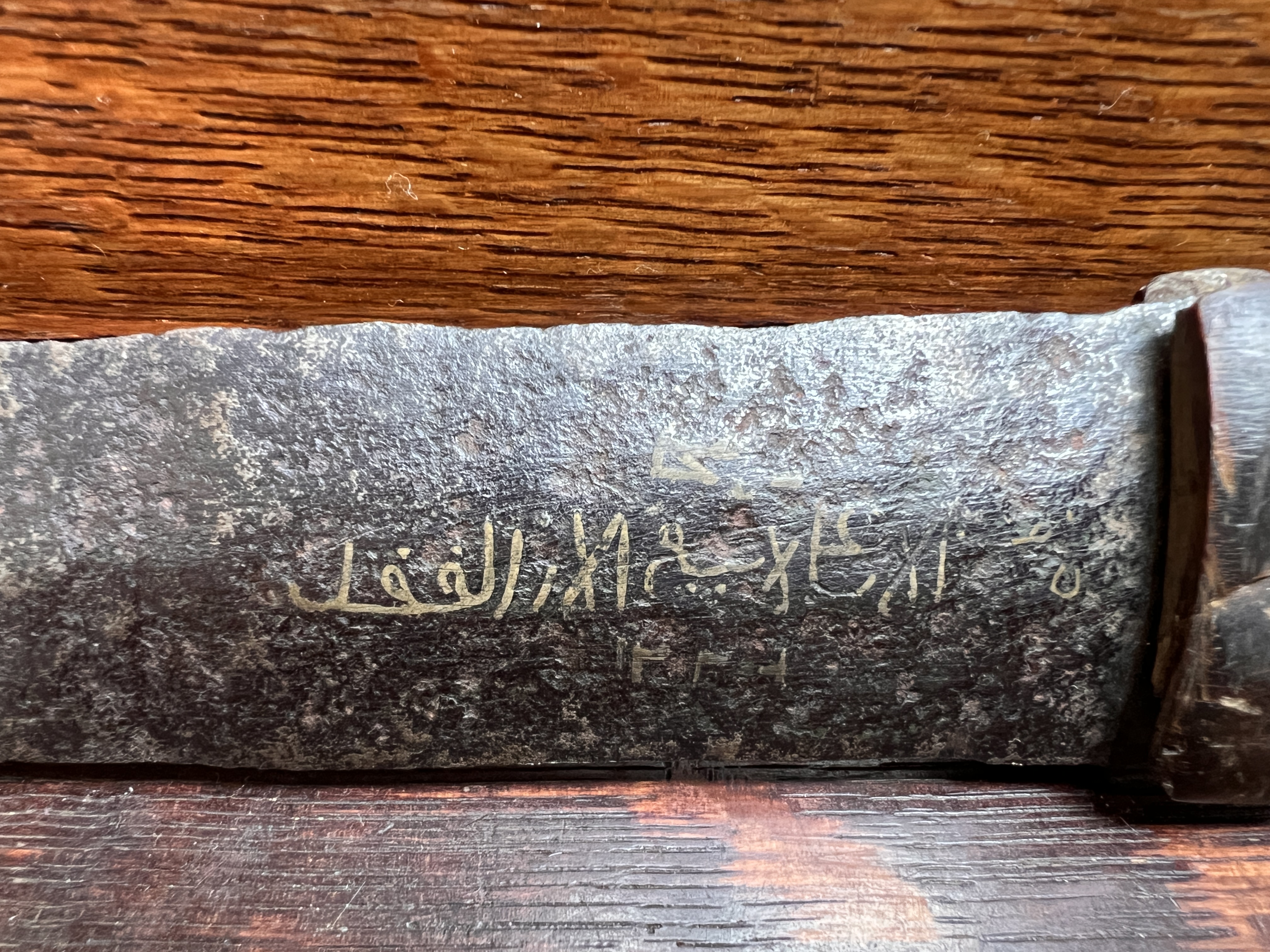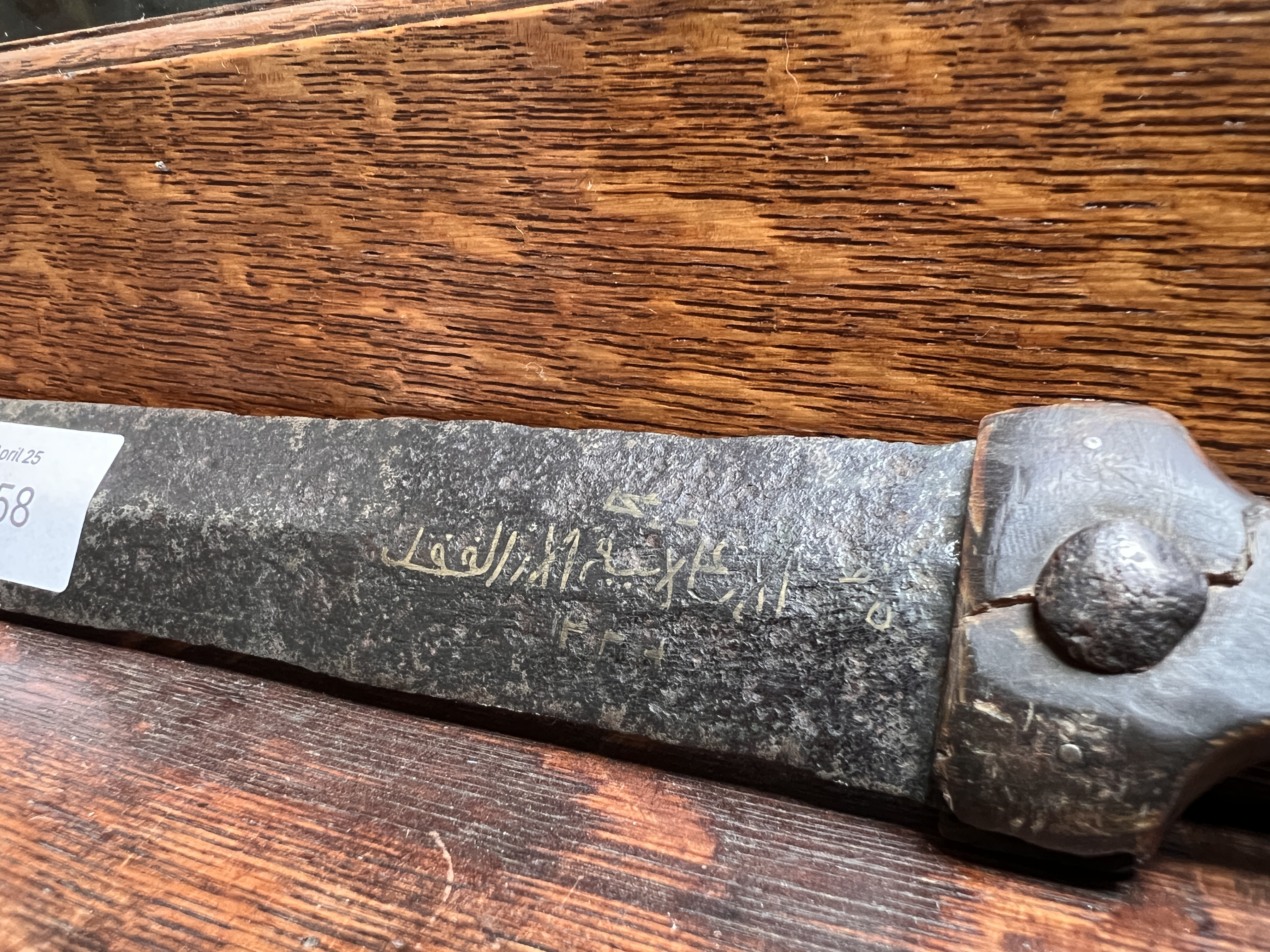 An antique Kindjal or Khanjali double edged dagger. Having Arabic or similar signature above handle. 54cm long
