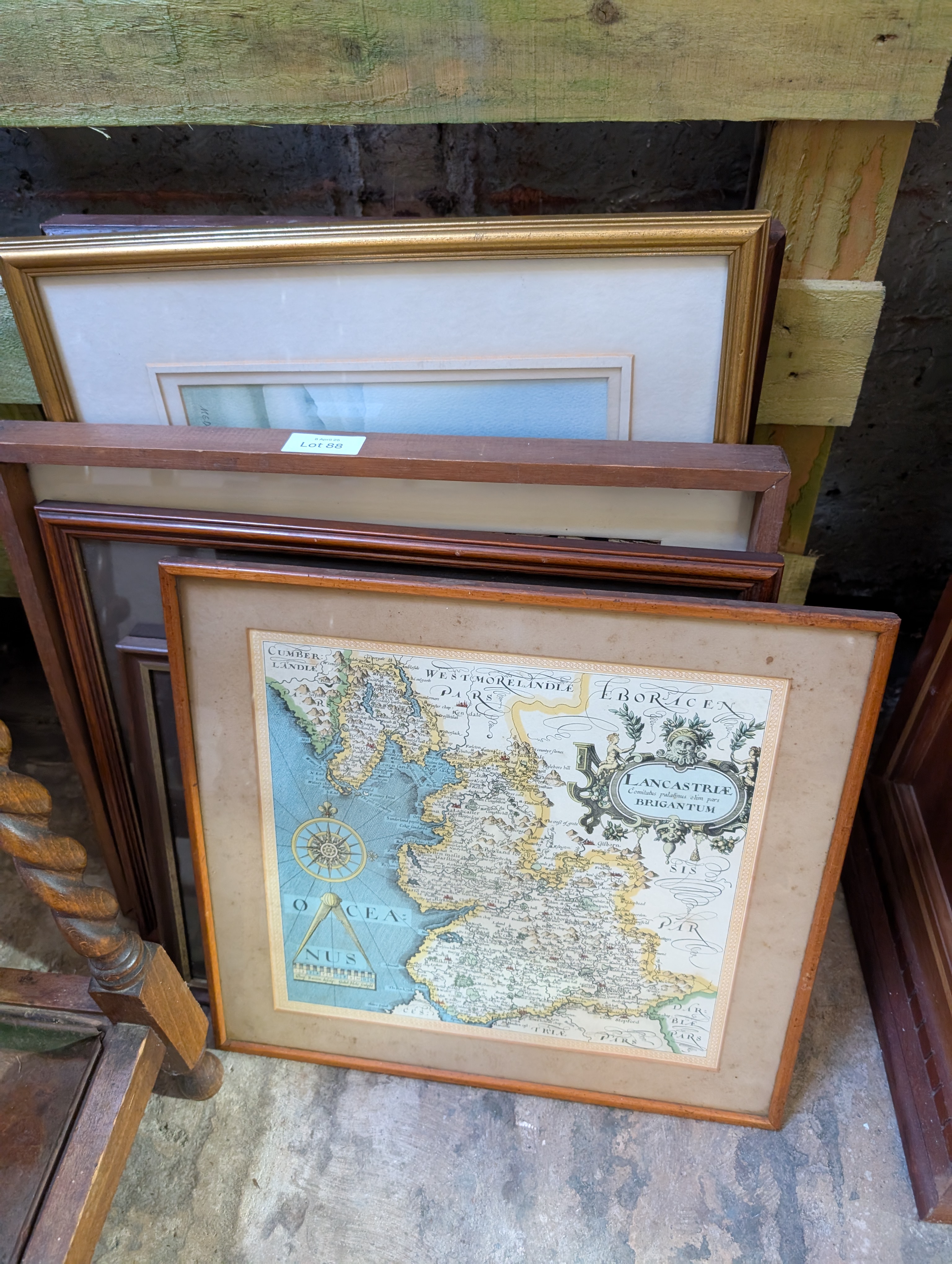 A selection of prints and pictures including local map prints