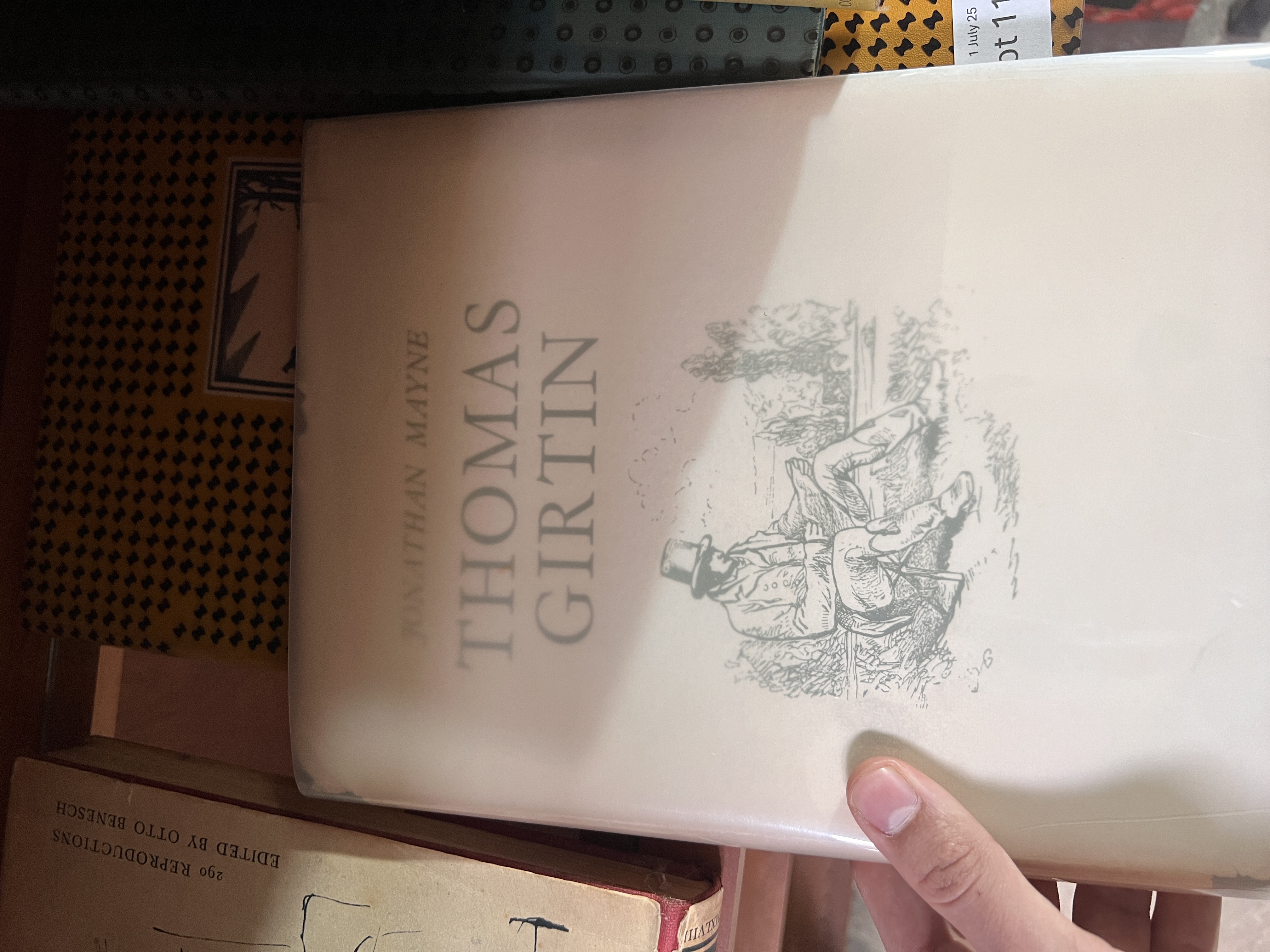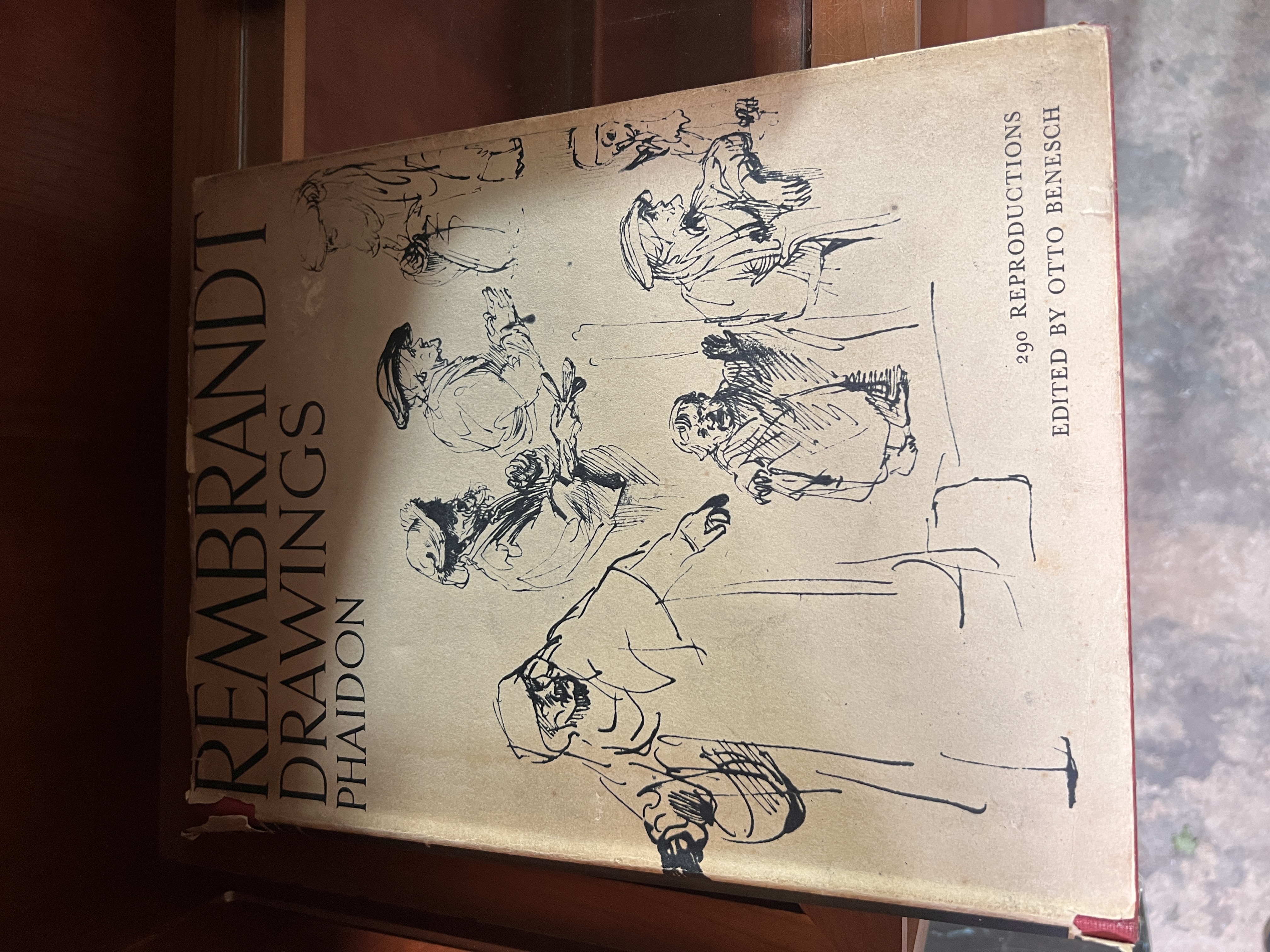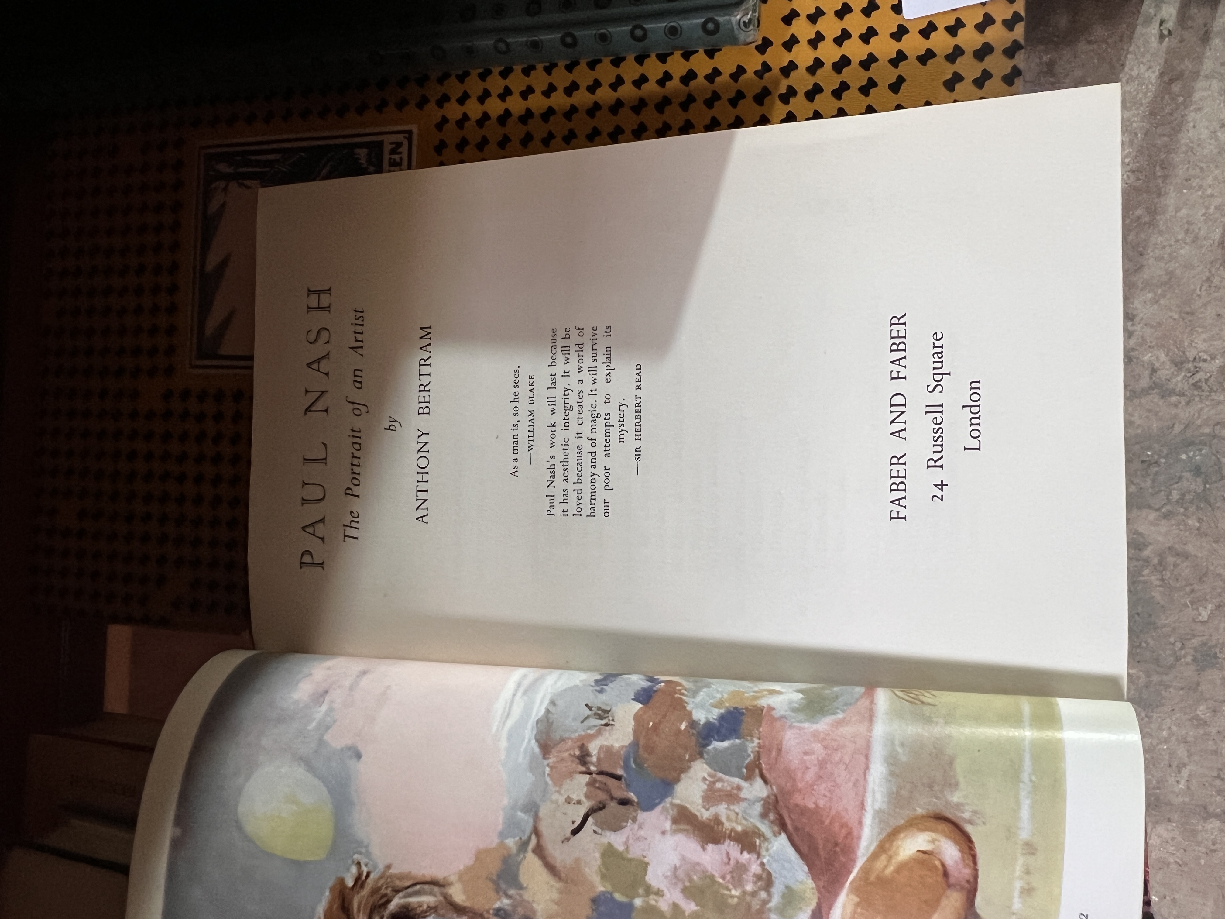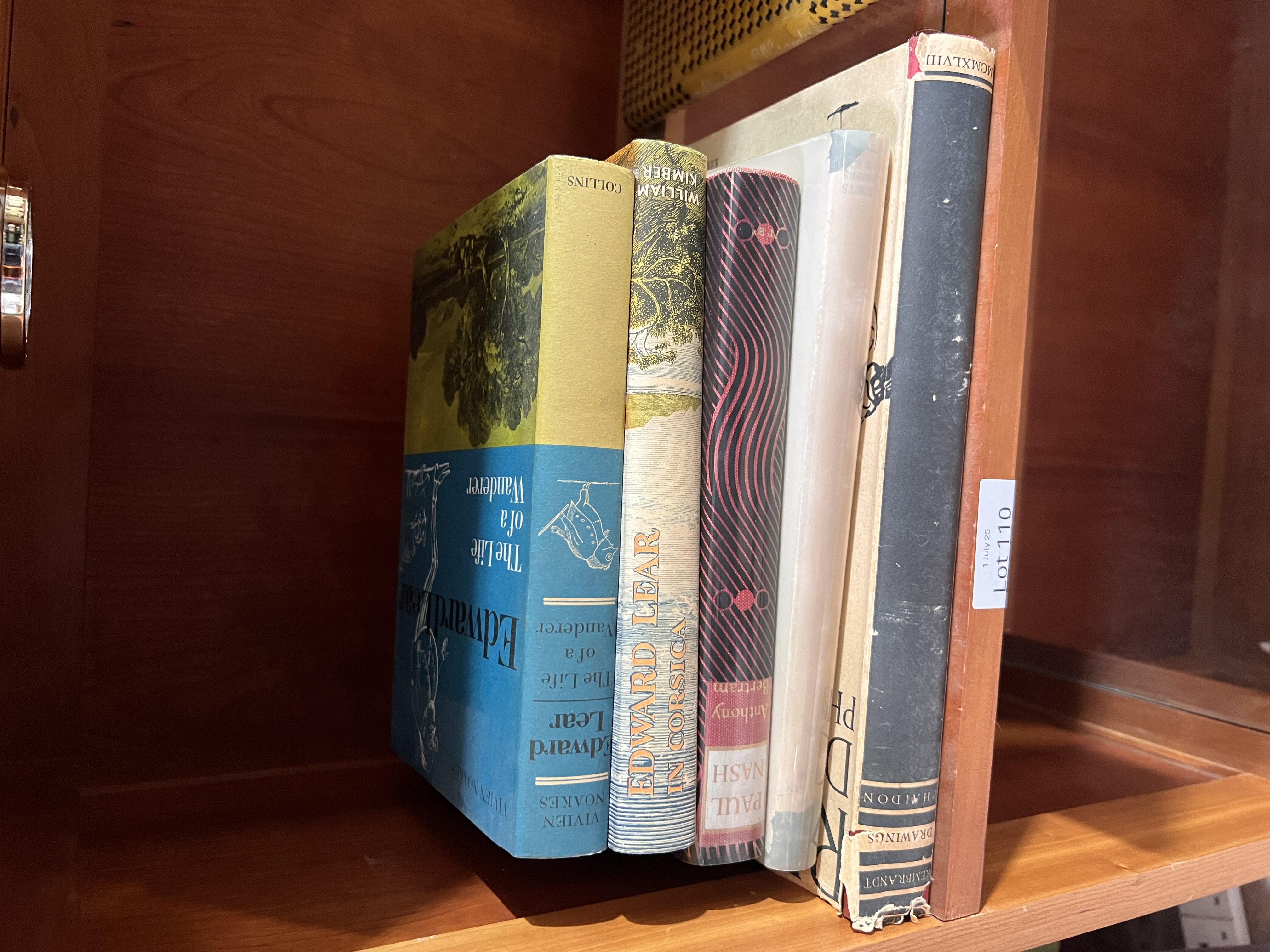 Five art books, Paul Nash, Edward Lear, Thomas Girtin and Rembrandt.