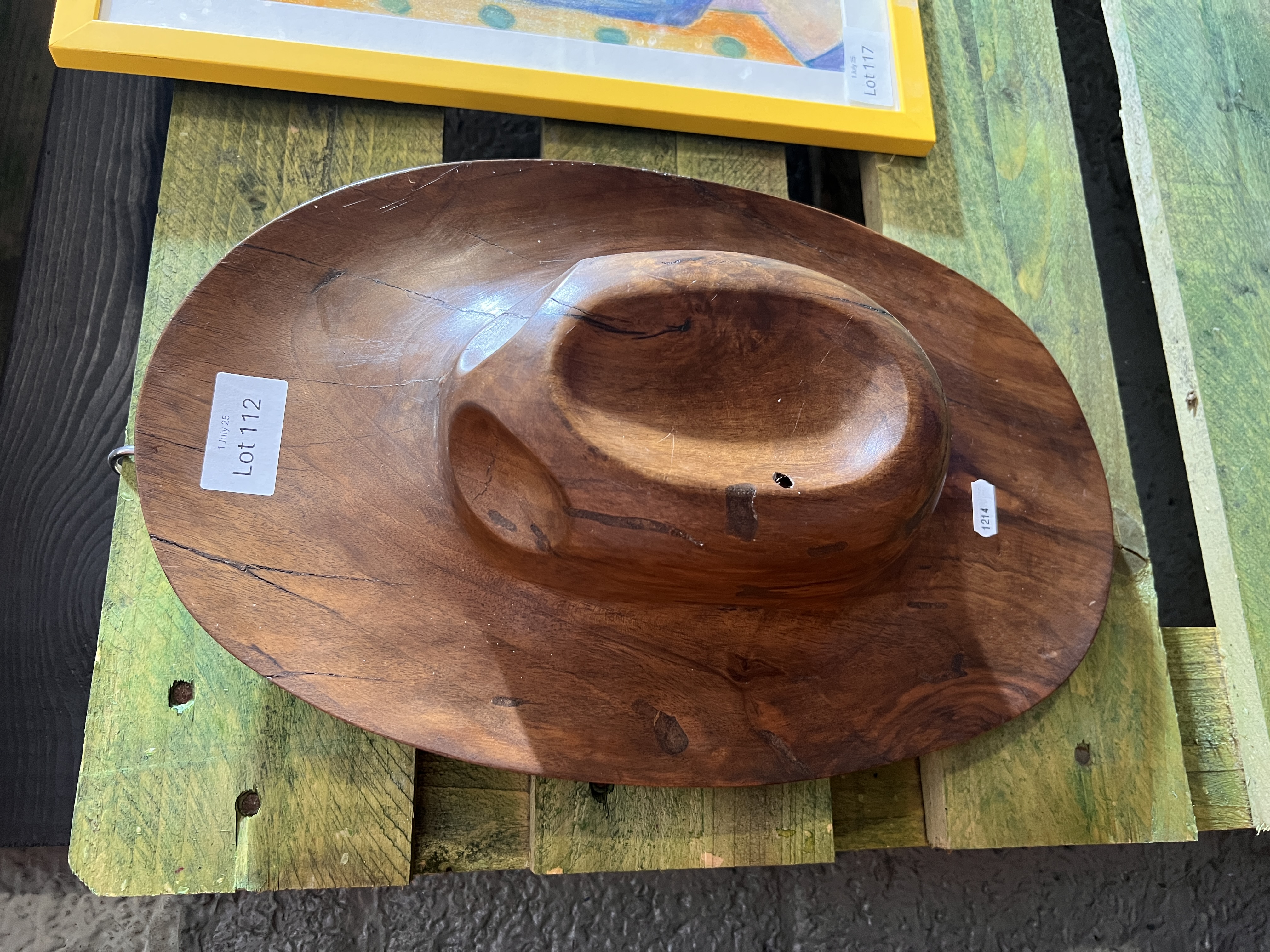 A hand carved folk art replica of a Stetson hat.