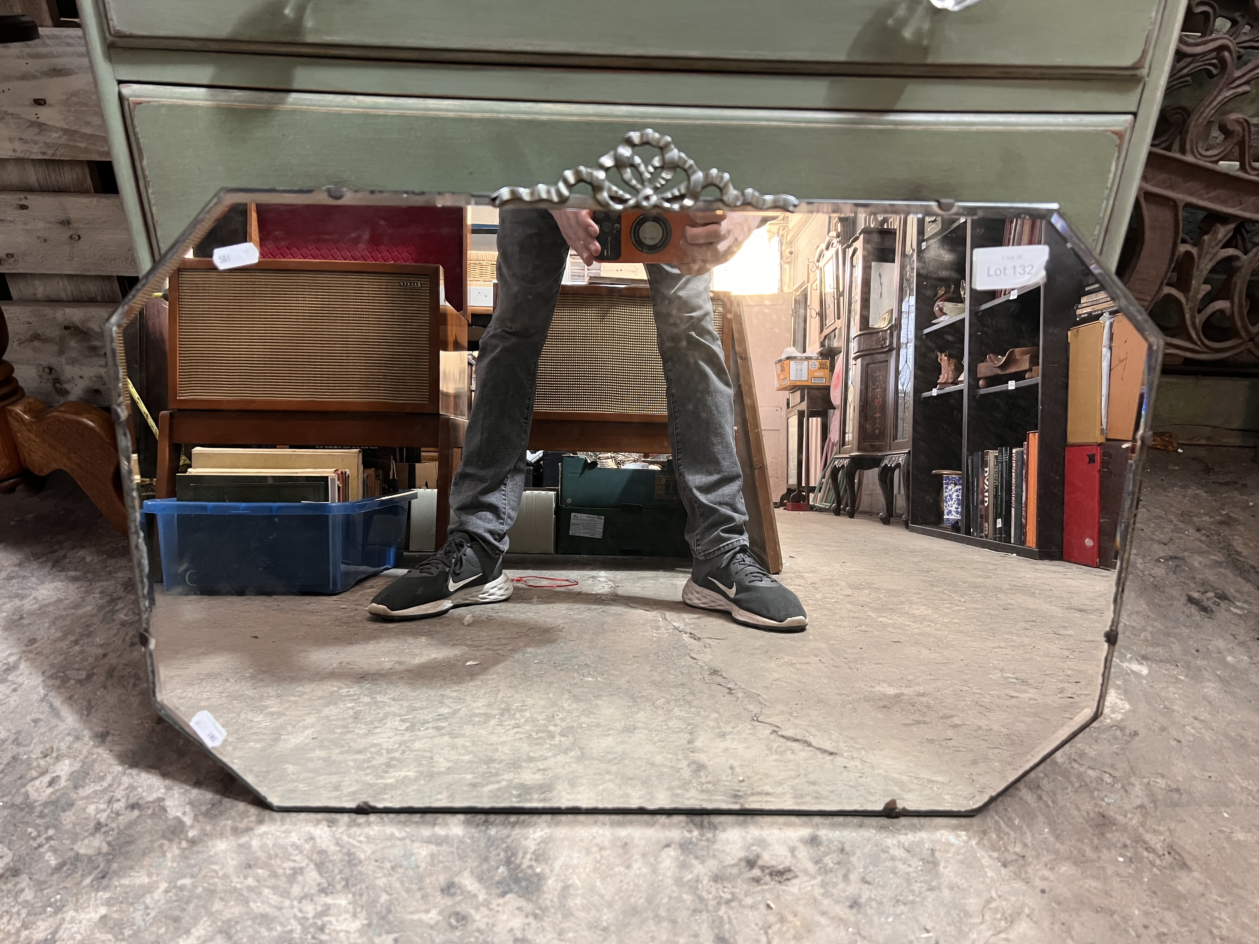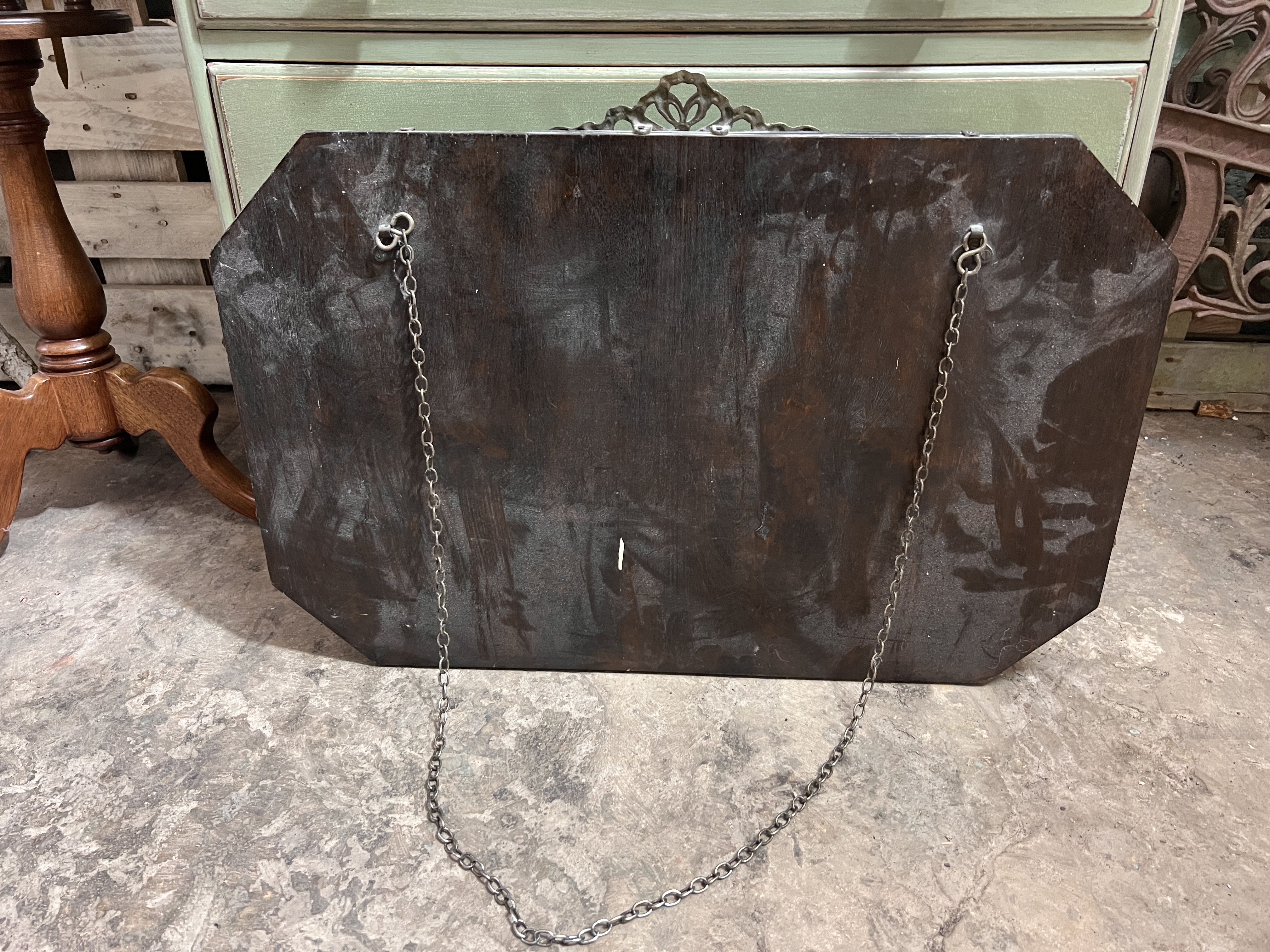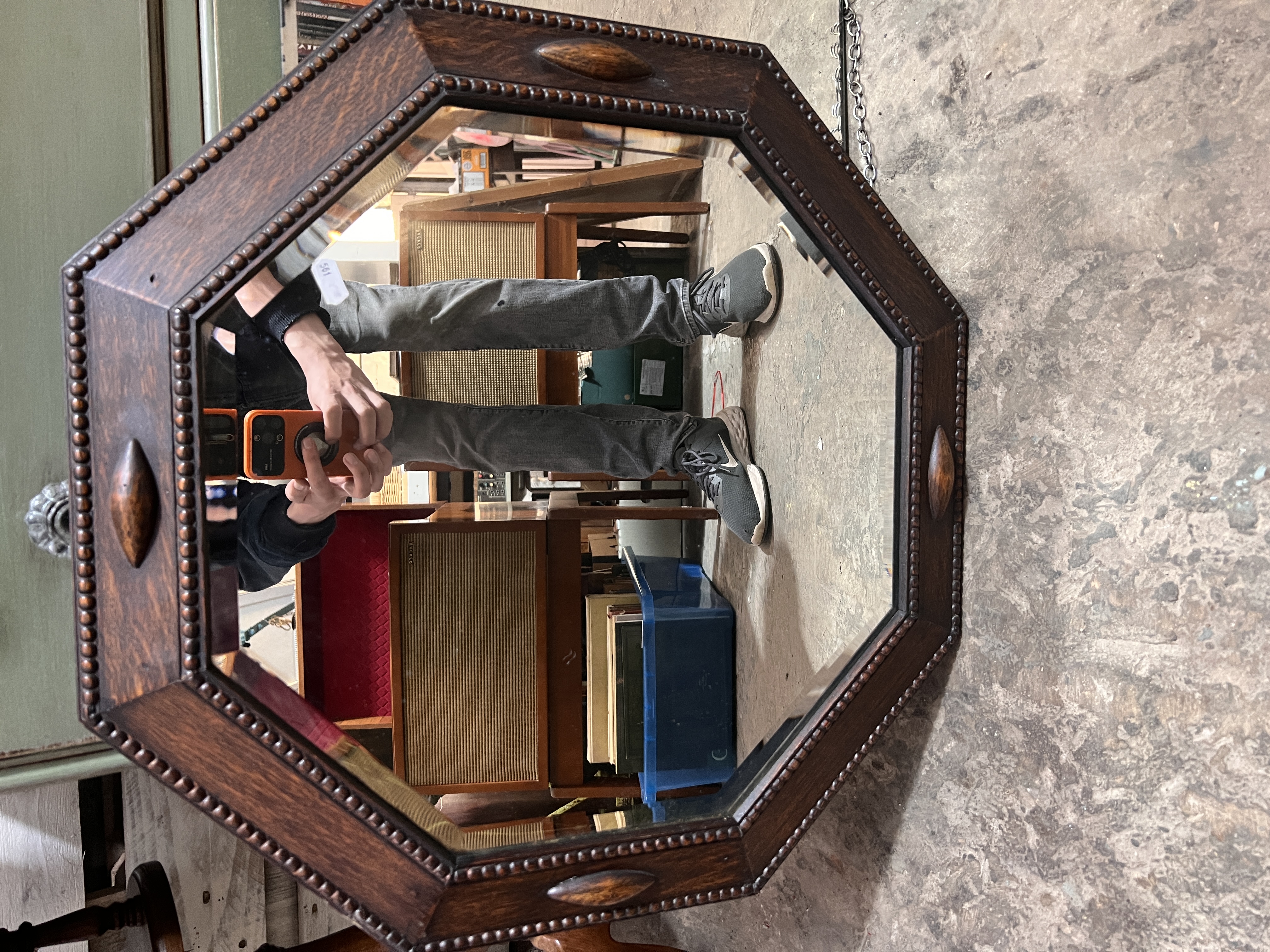 Two Art Deco mirrors one frameless and one oak octagon.