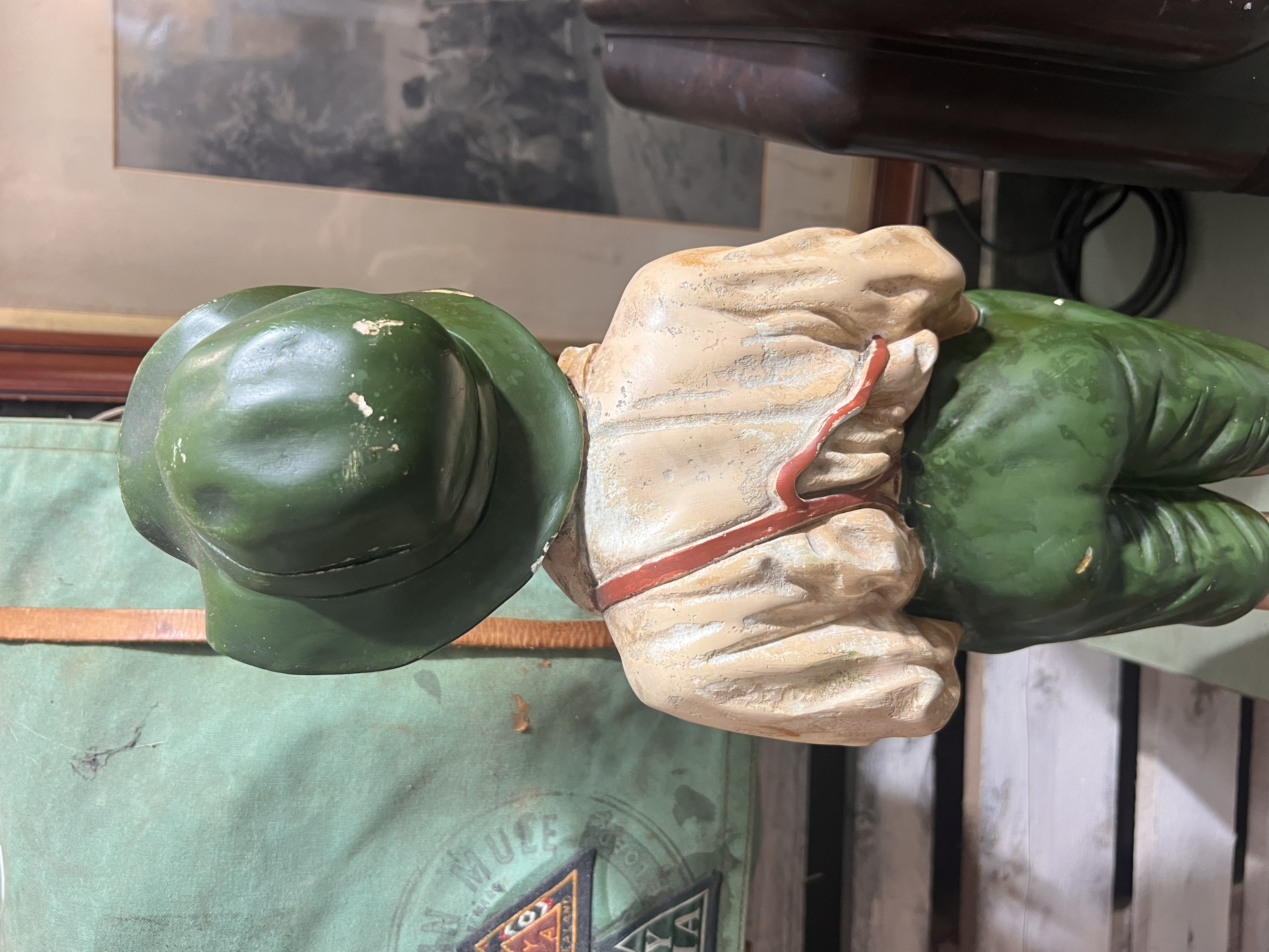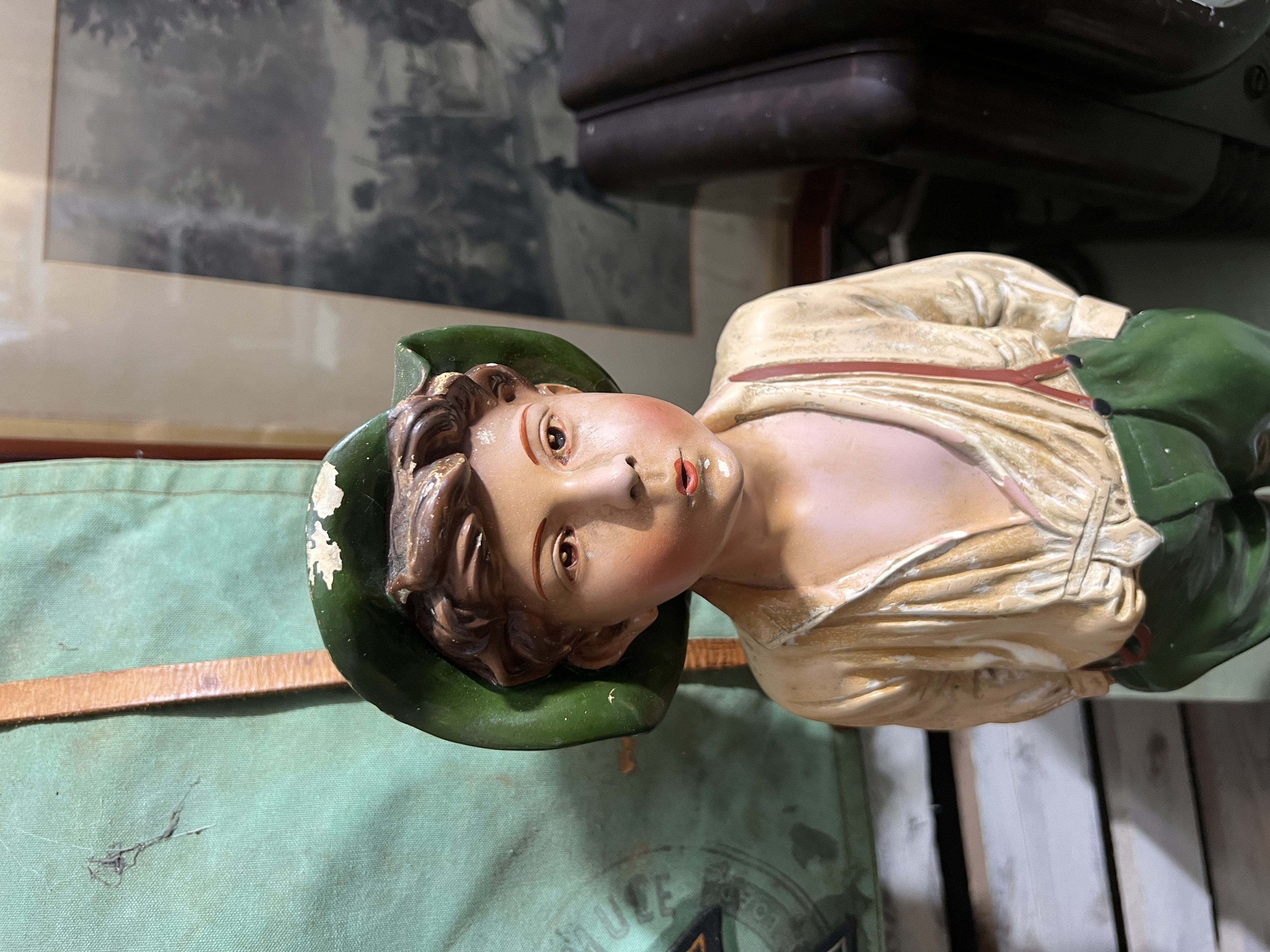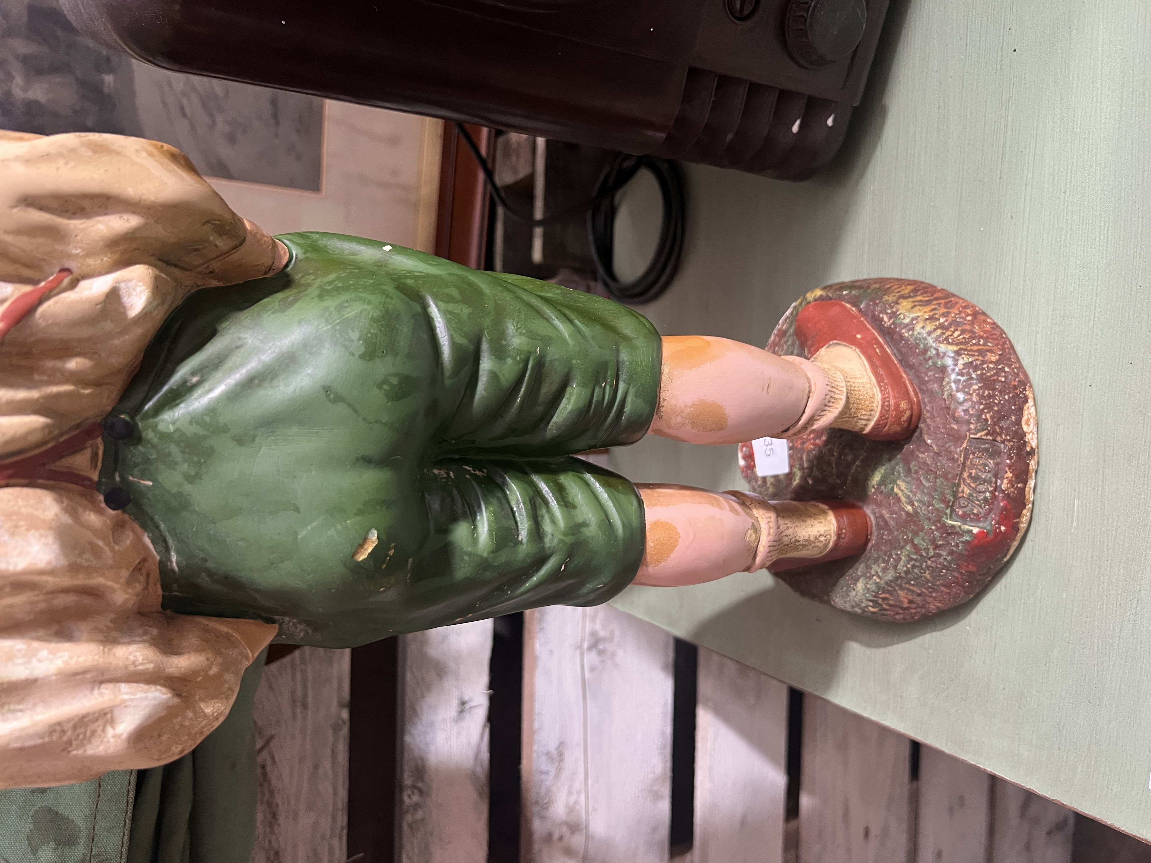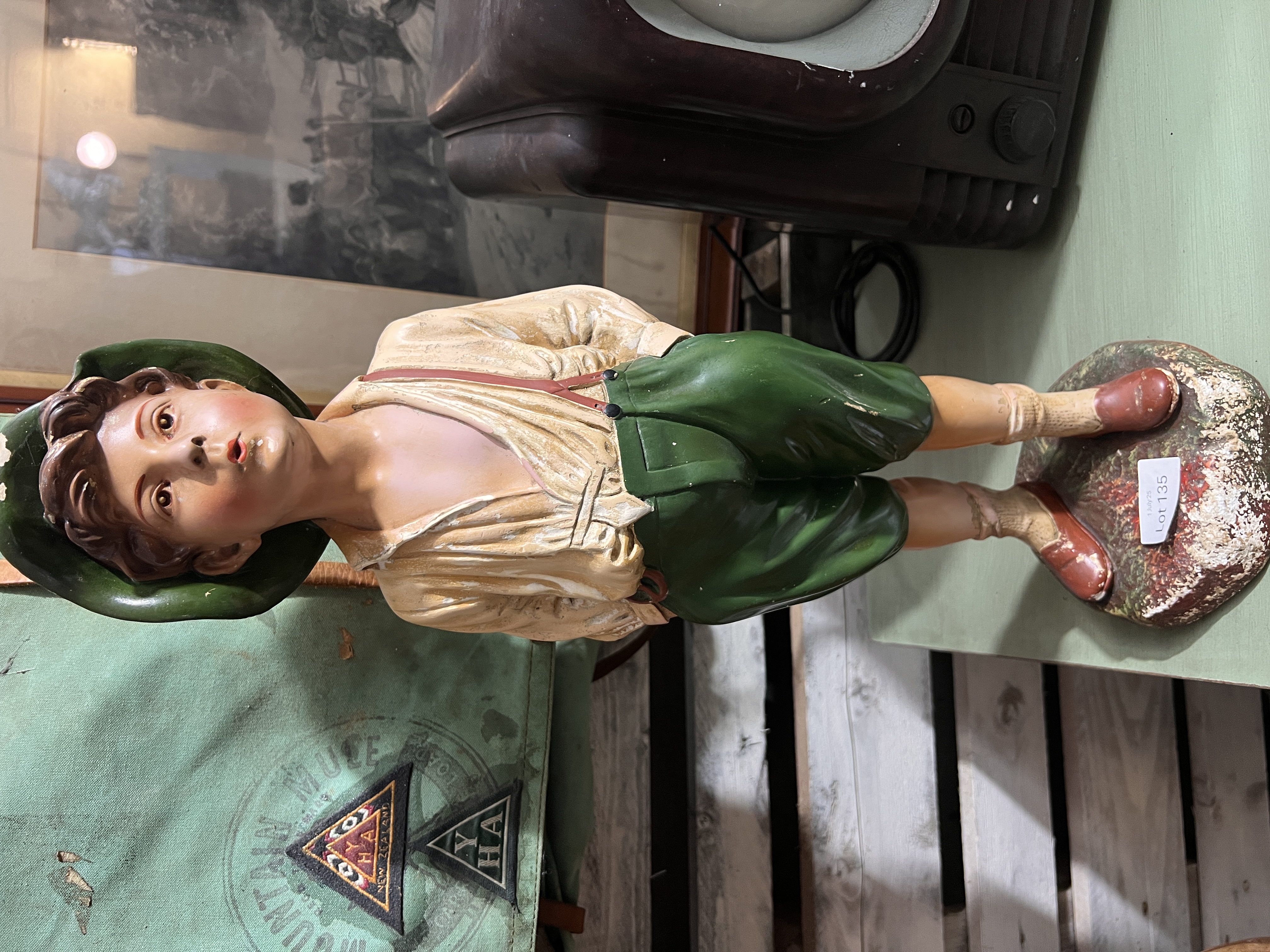 An early 20th century chalk ware figure whistling boy. 60cm tall.