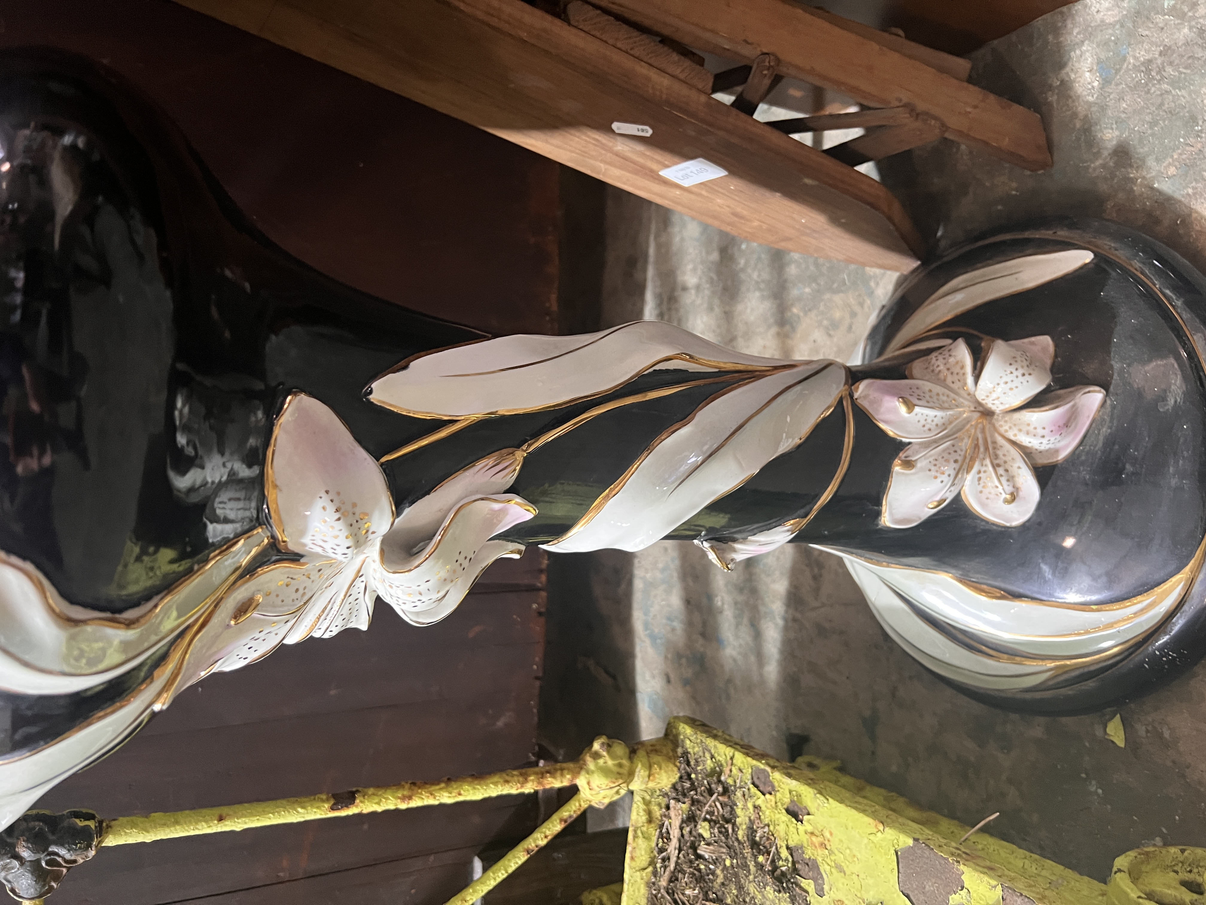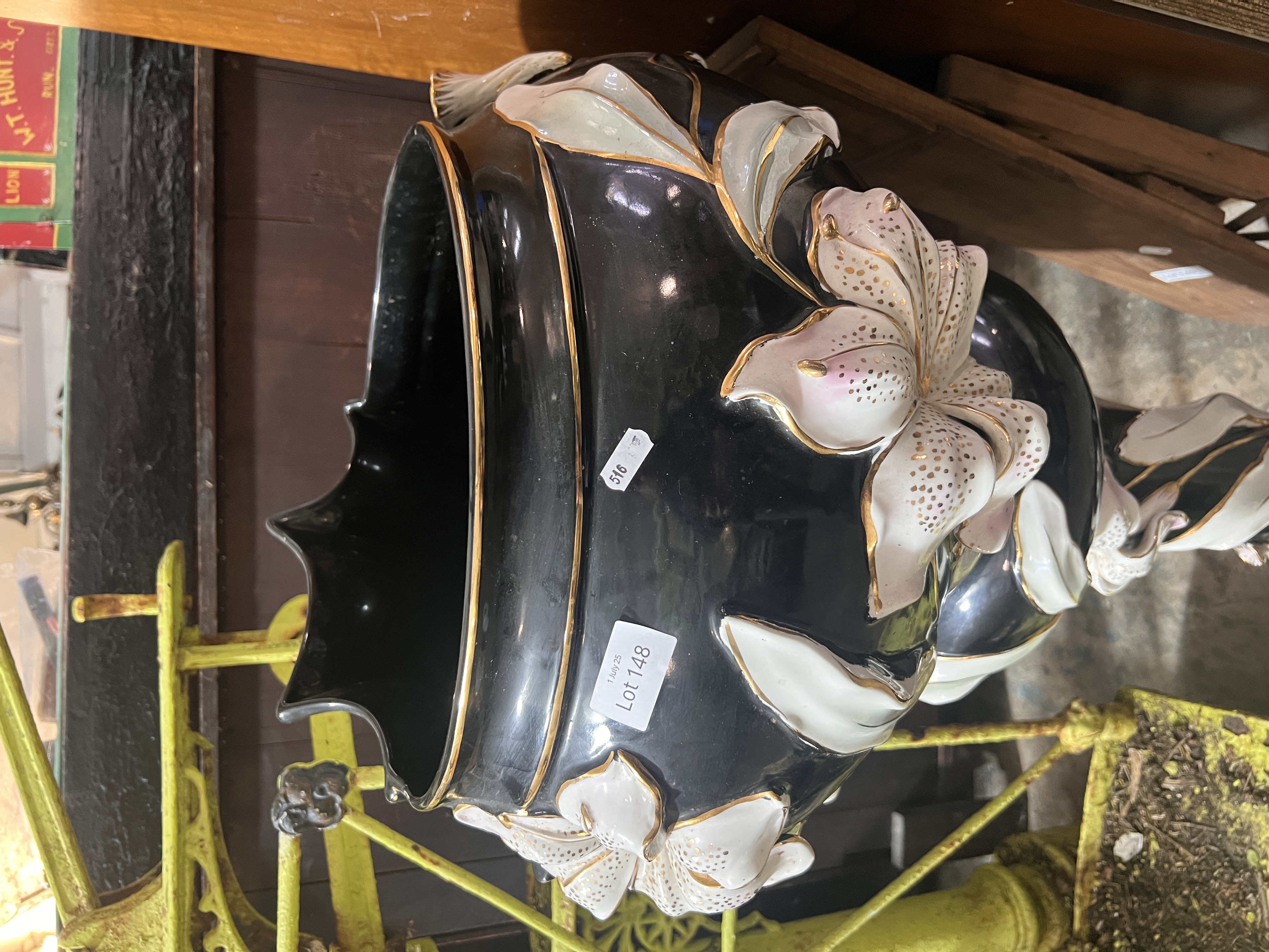 A vintage large sized ceramic jardiniere and stand, stand AF.