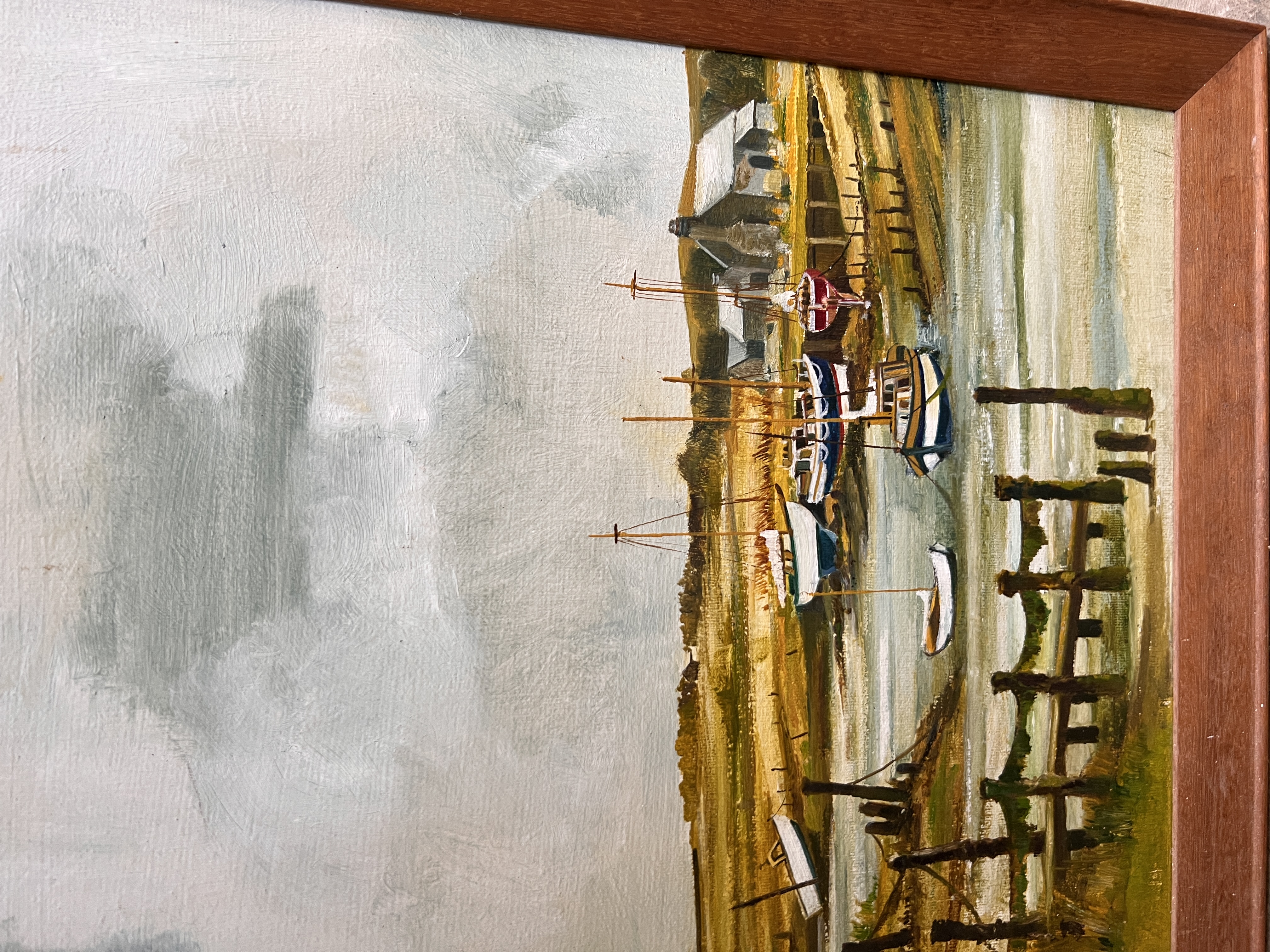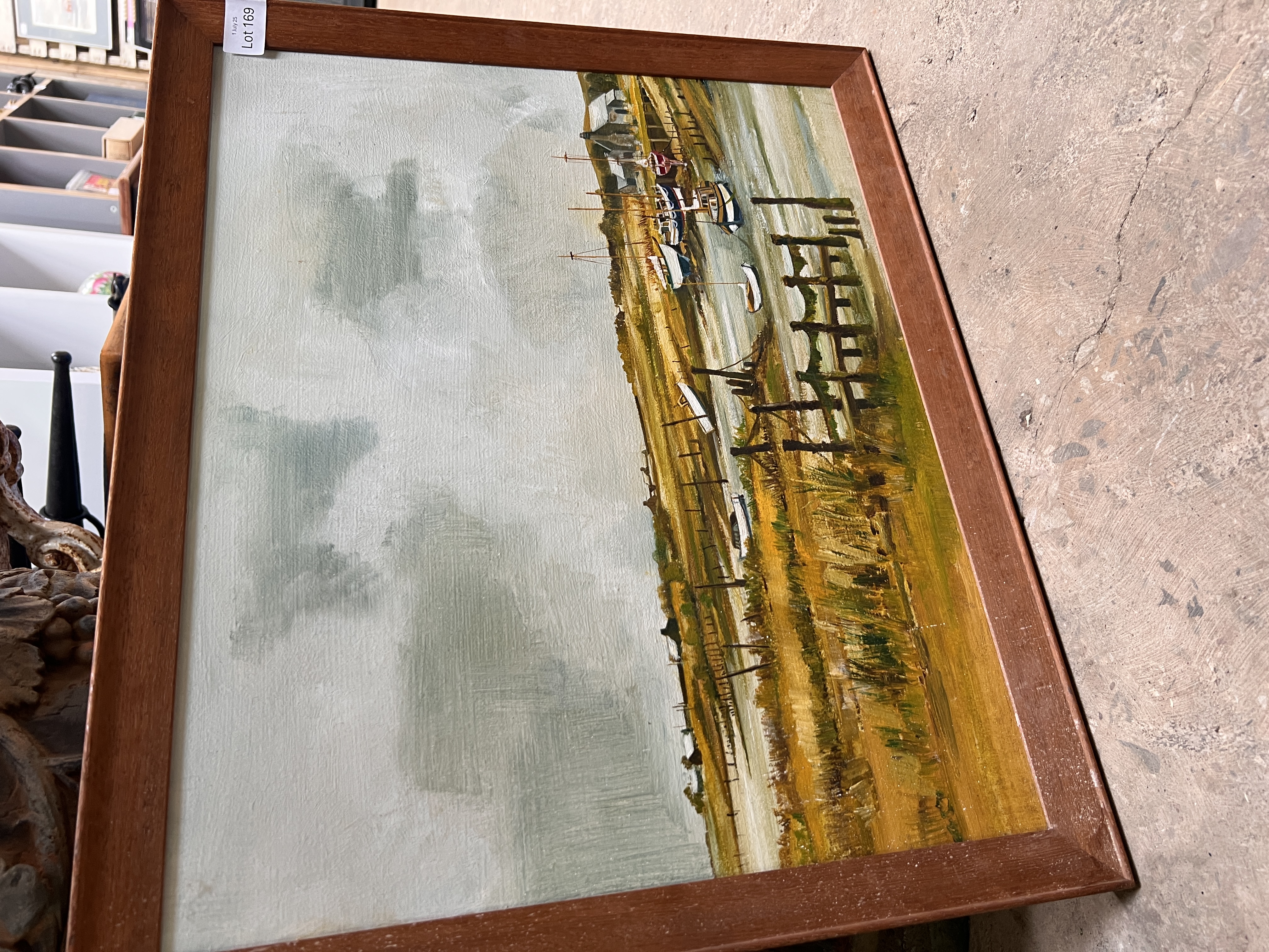 An oil on board depicting river estuary.