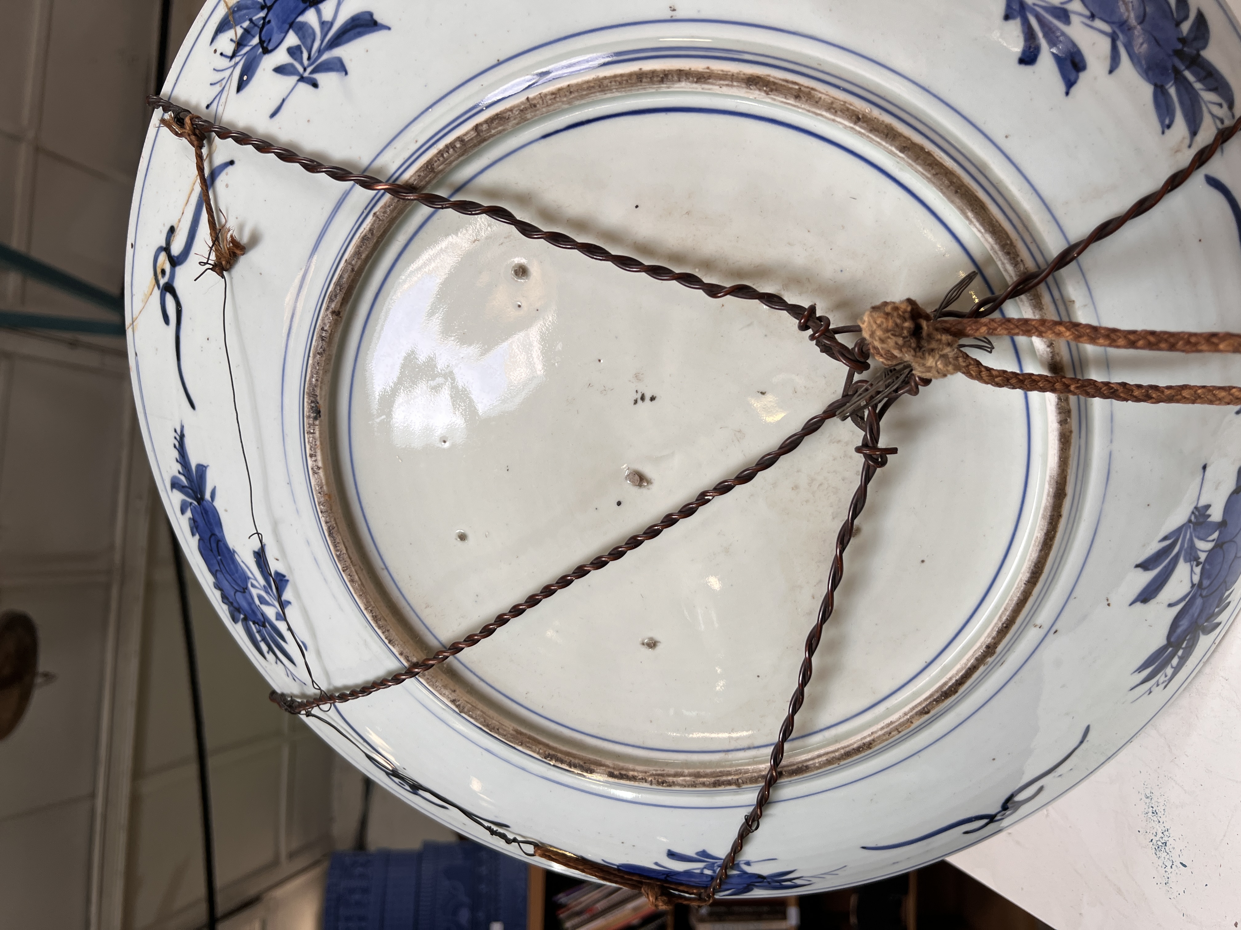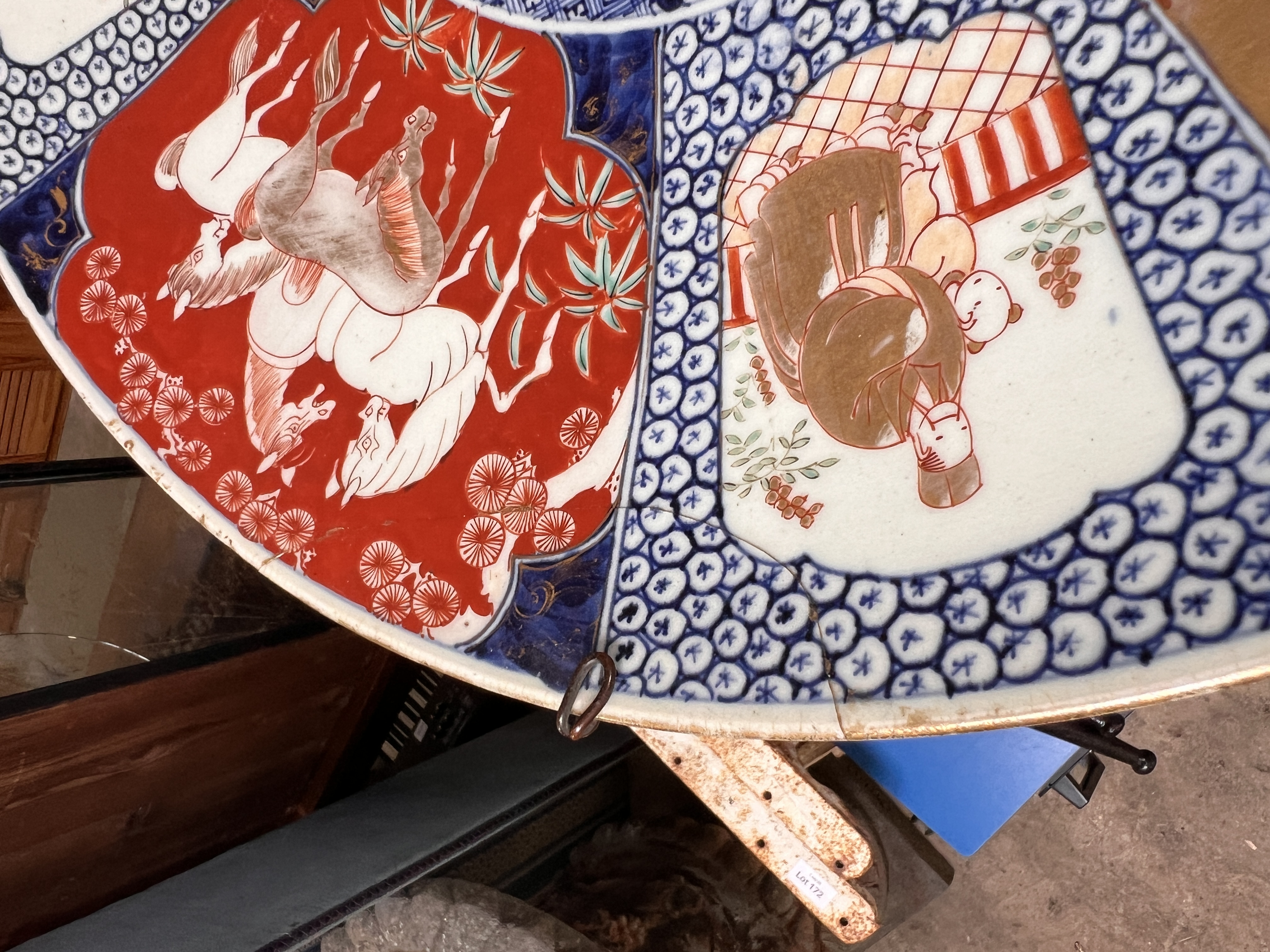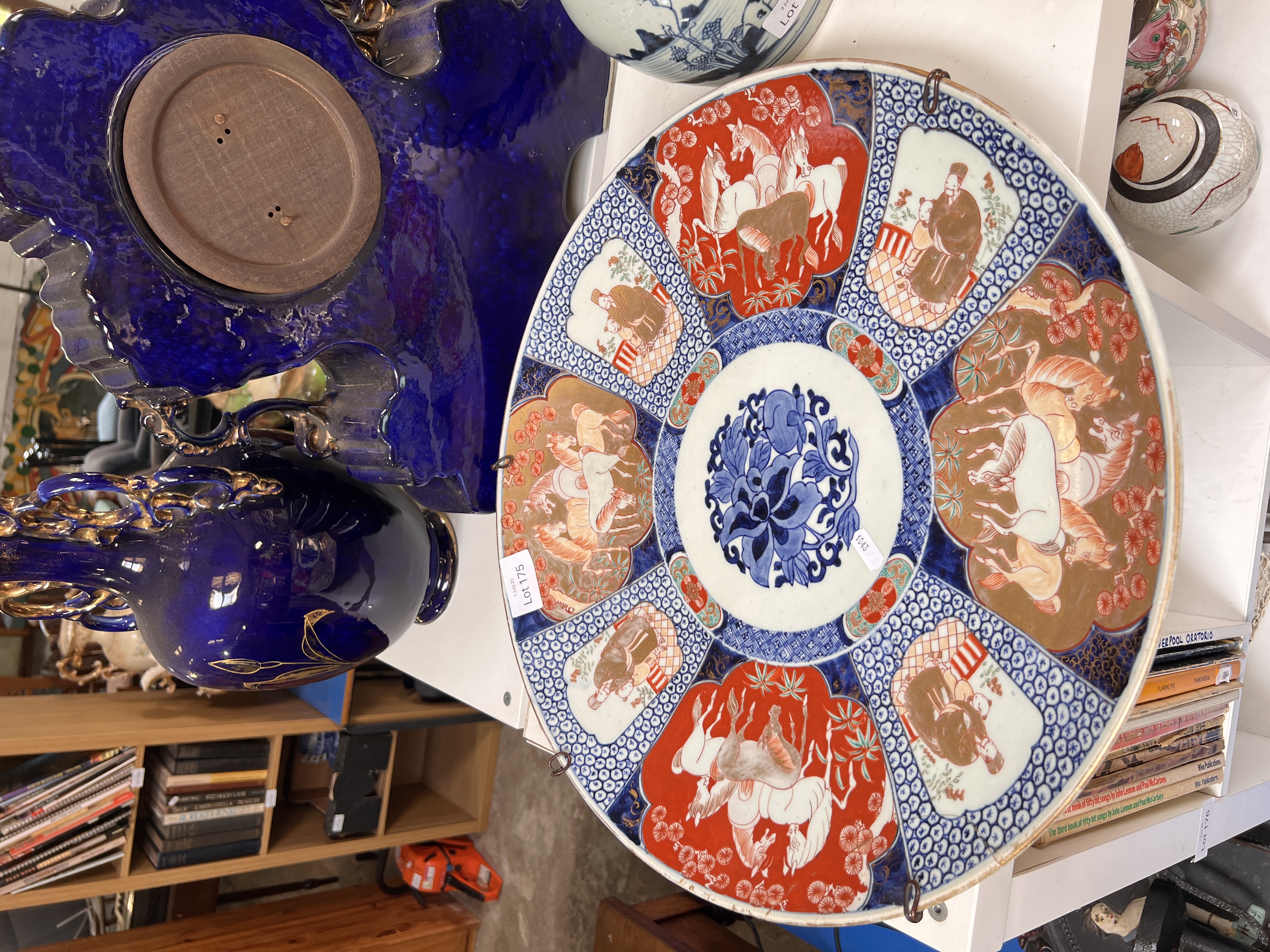 A large Japanese porcelain charger in Imari pattern, 48cm wide, AF.