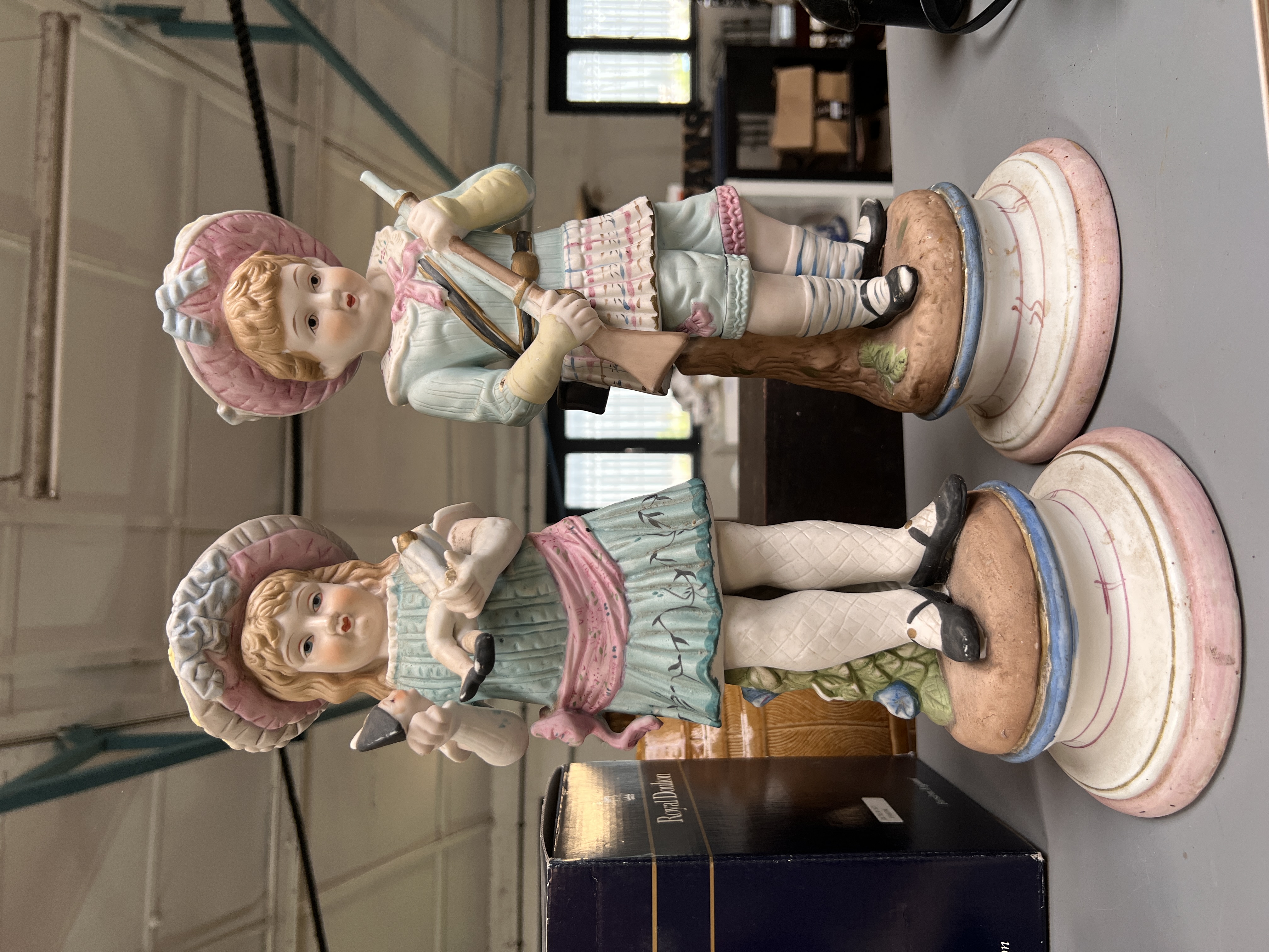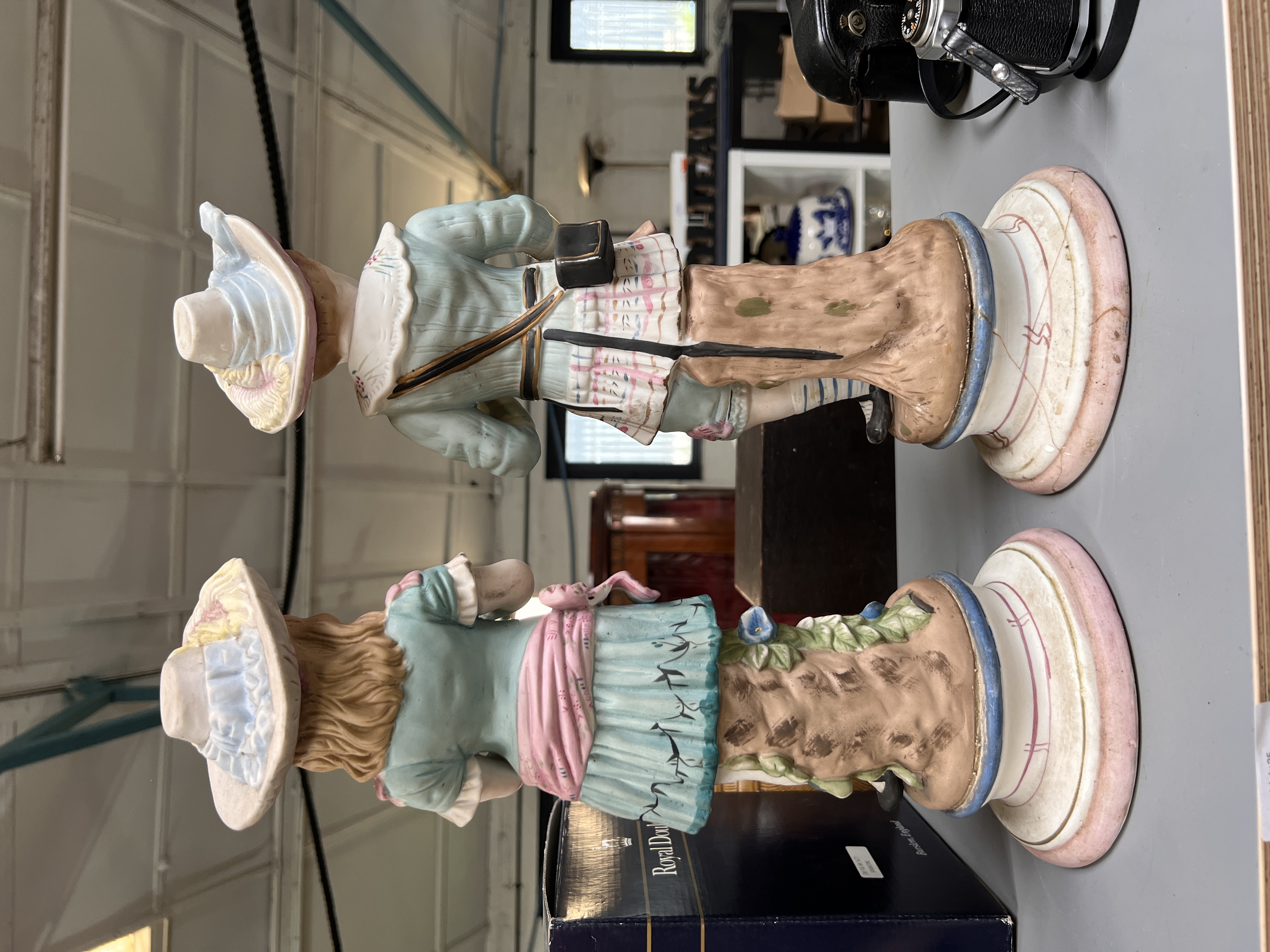 A pair of German porcelain mantel garniture figures. 40cm tall.