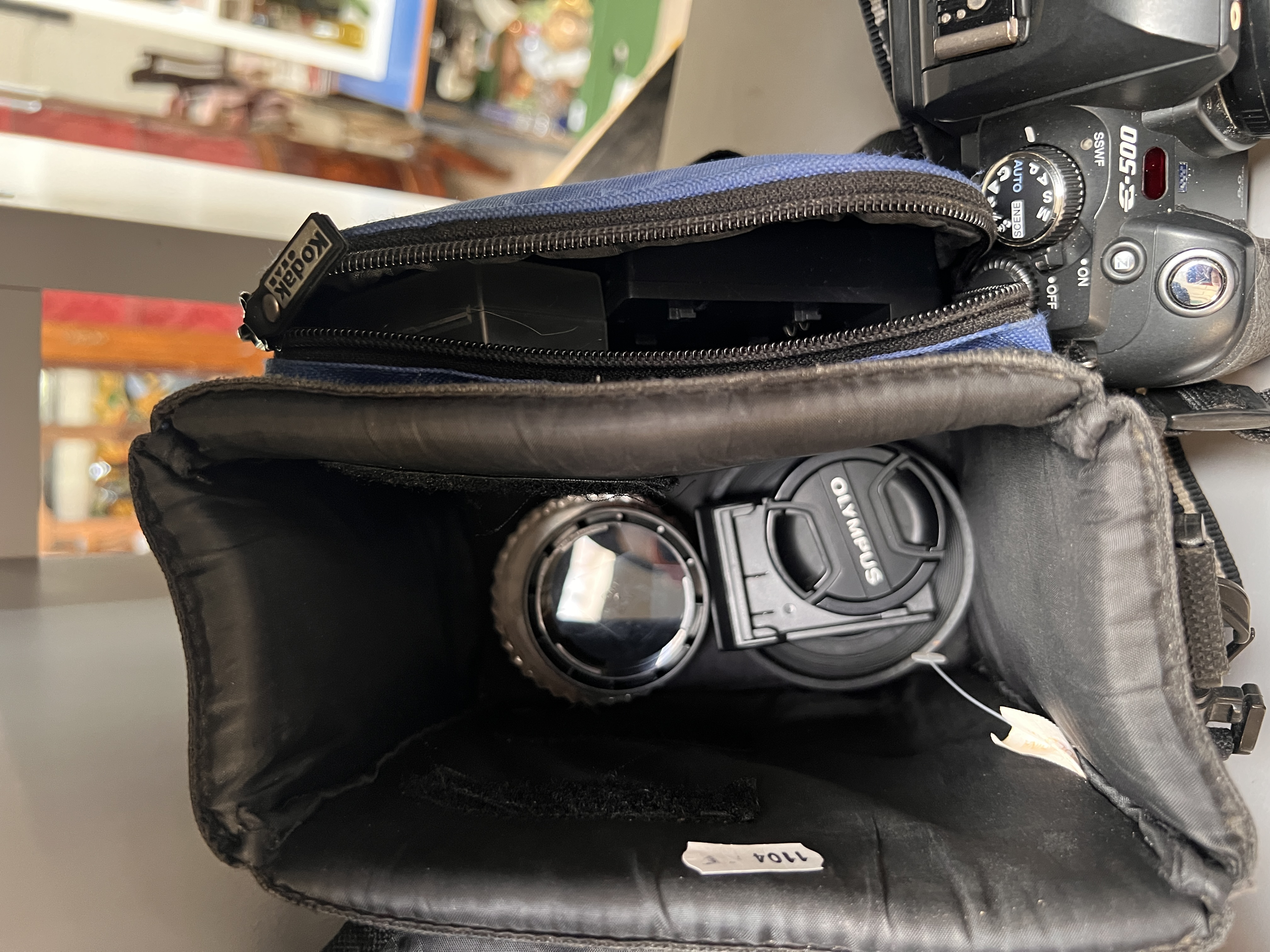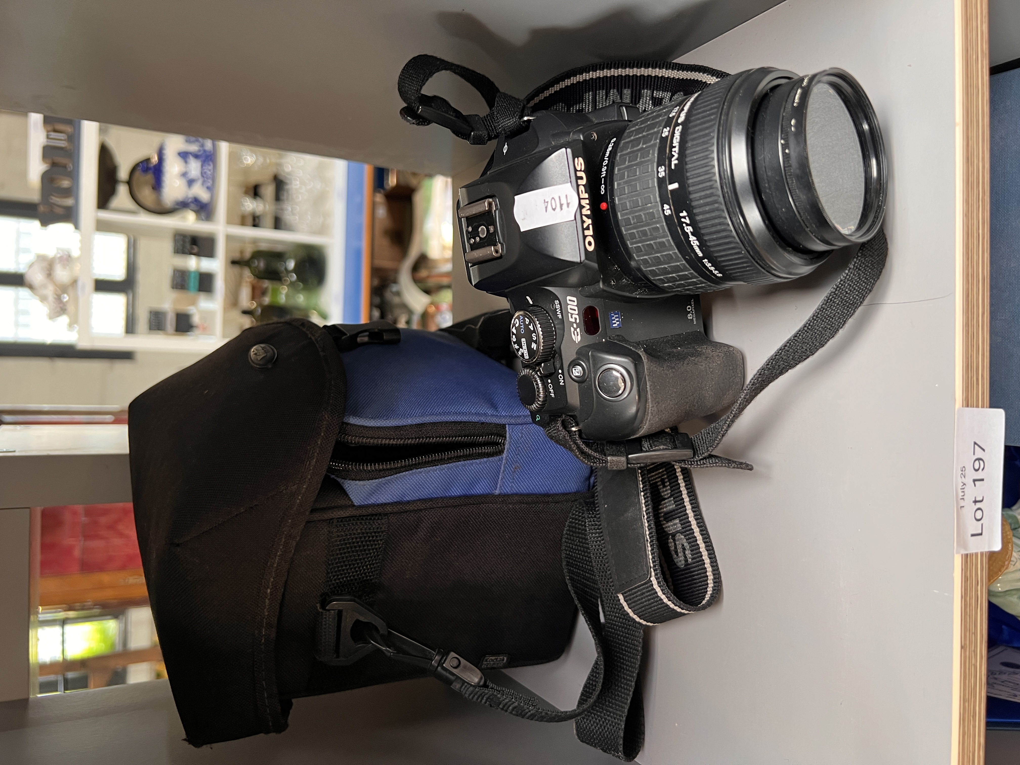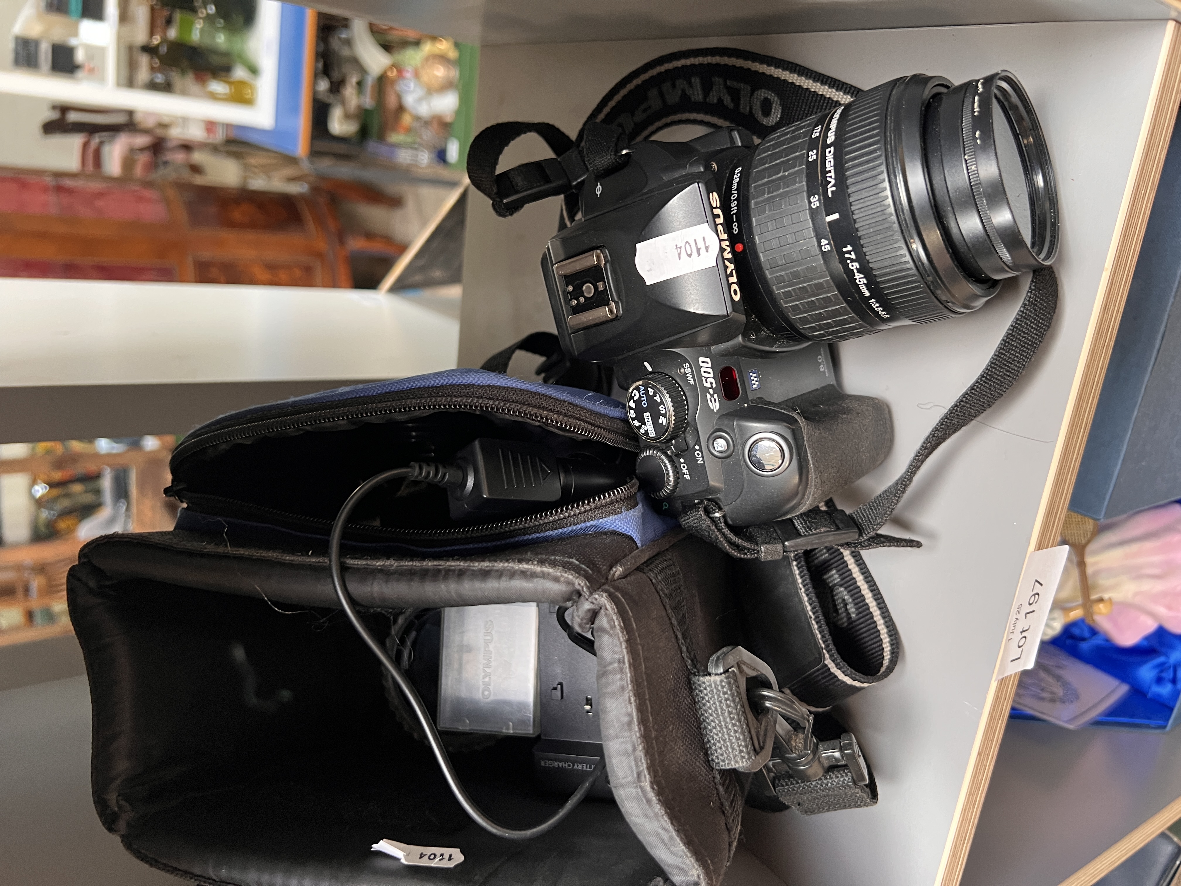 An Olympus E500 digital camera with accessories.