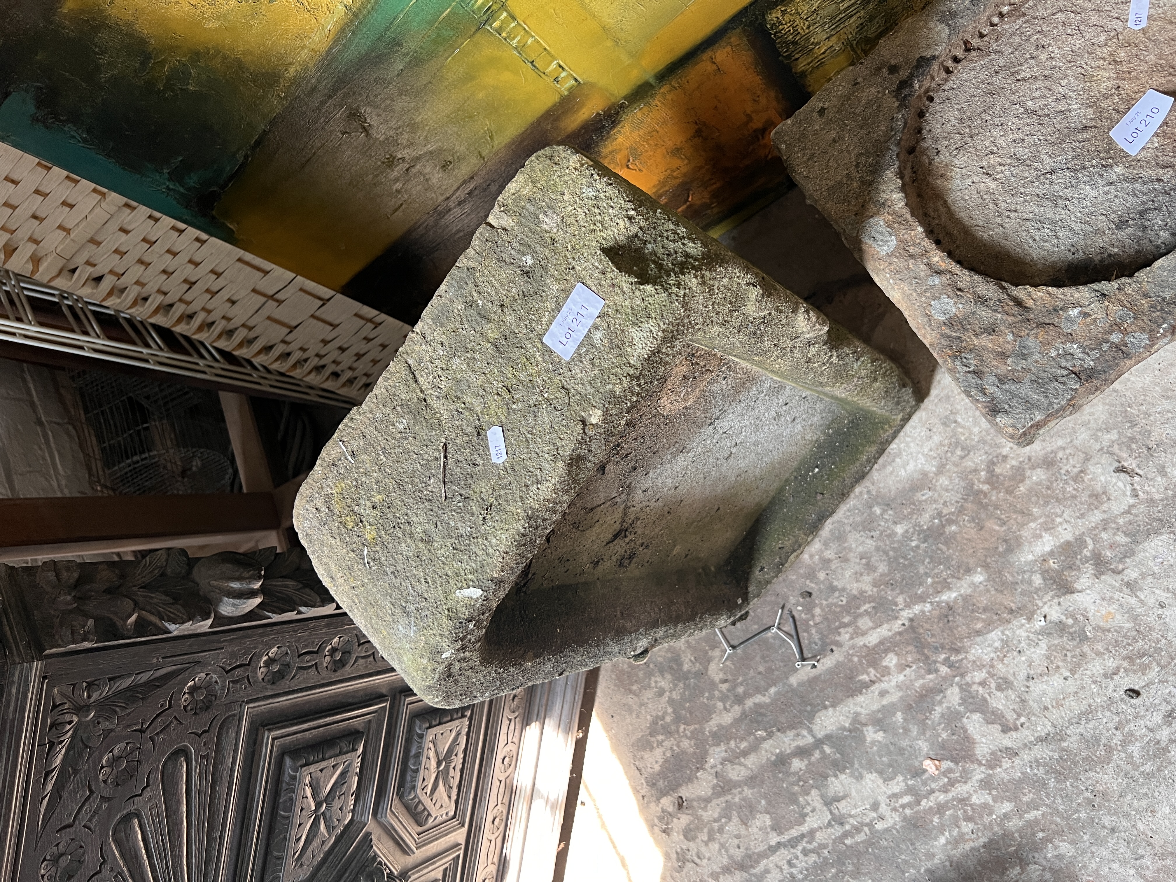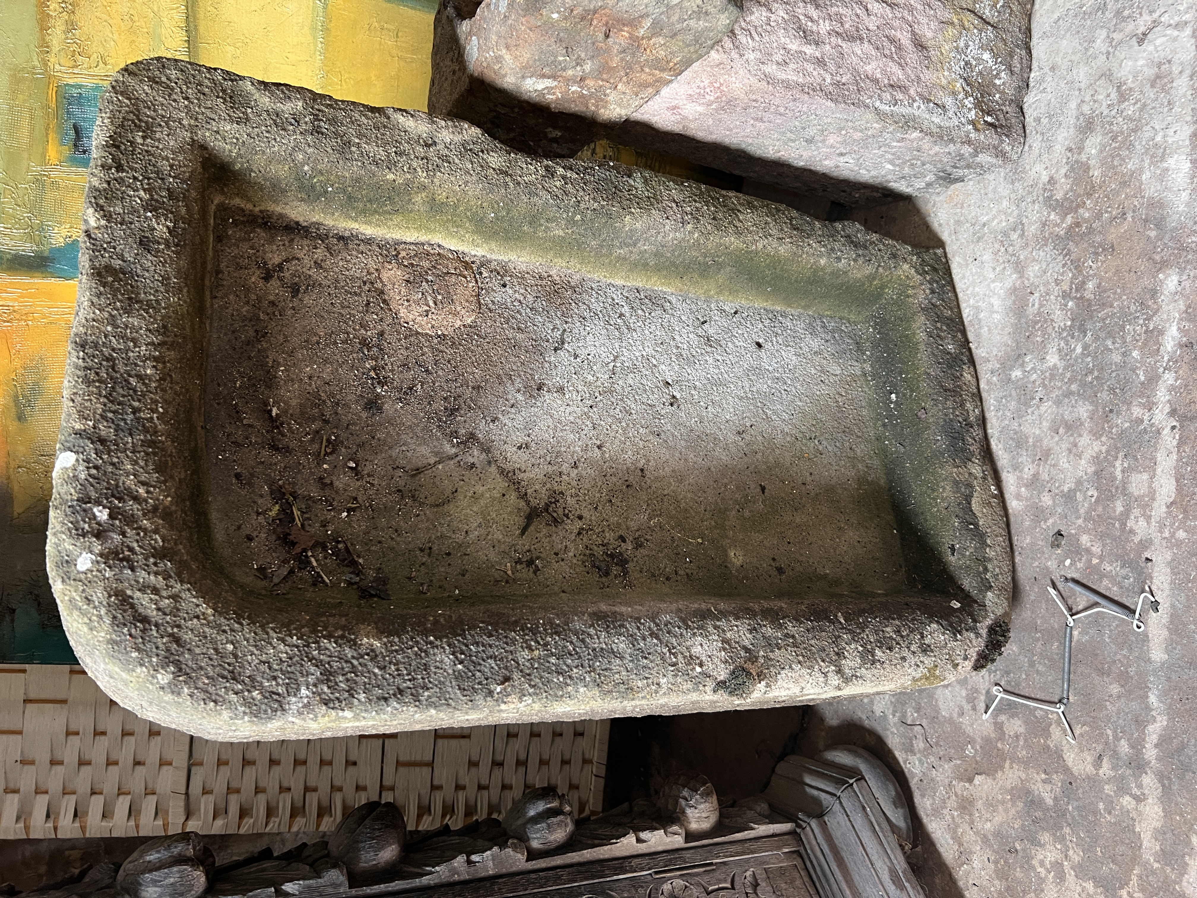 A hand carved sandstone water trough or sink. 73cm x 42cm x 18cm.