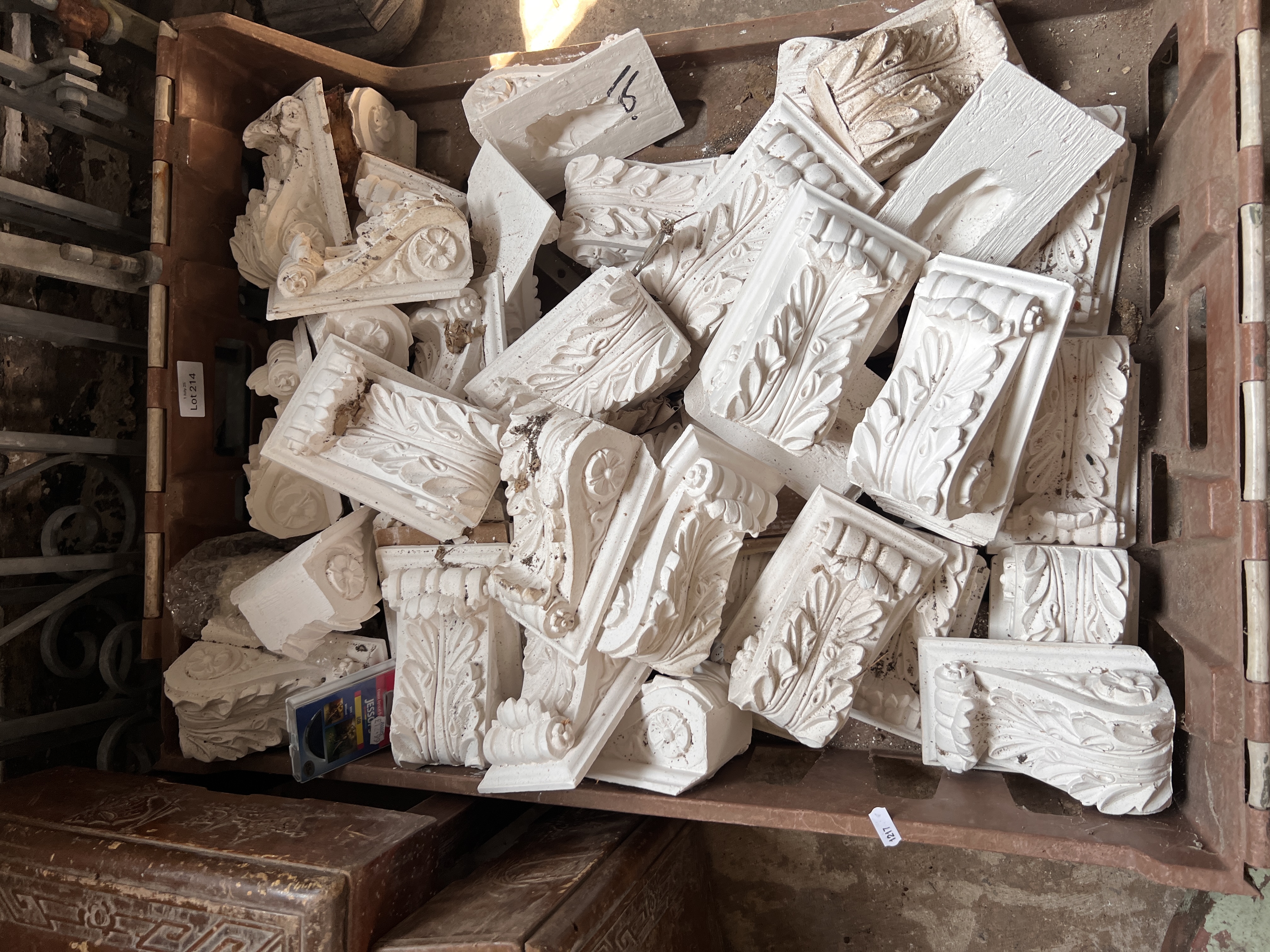 A selection of plaster cast classical style corbels or wall sconce.
