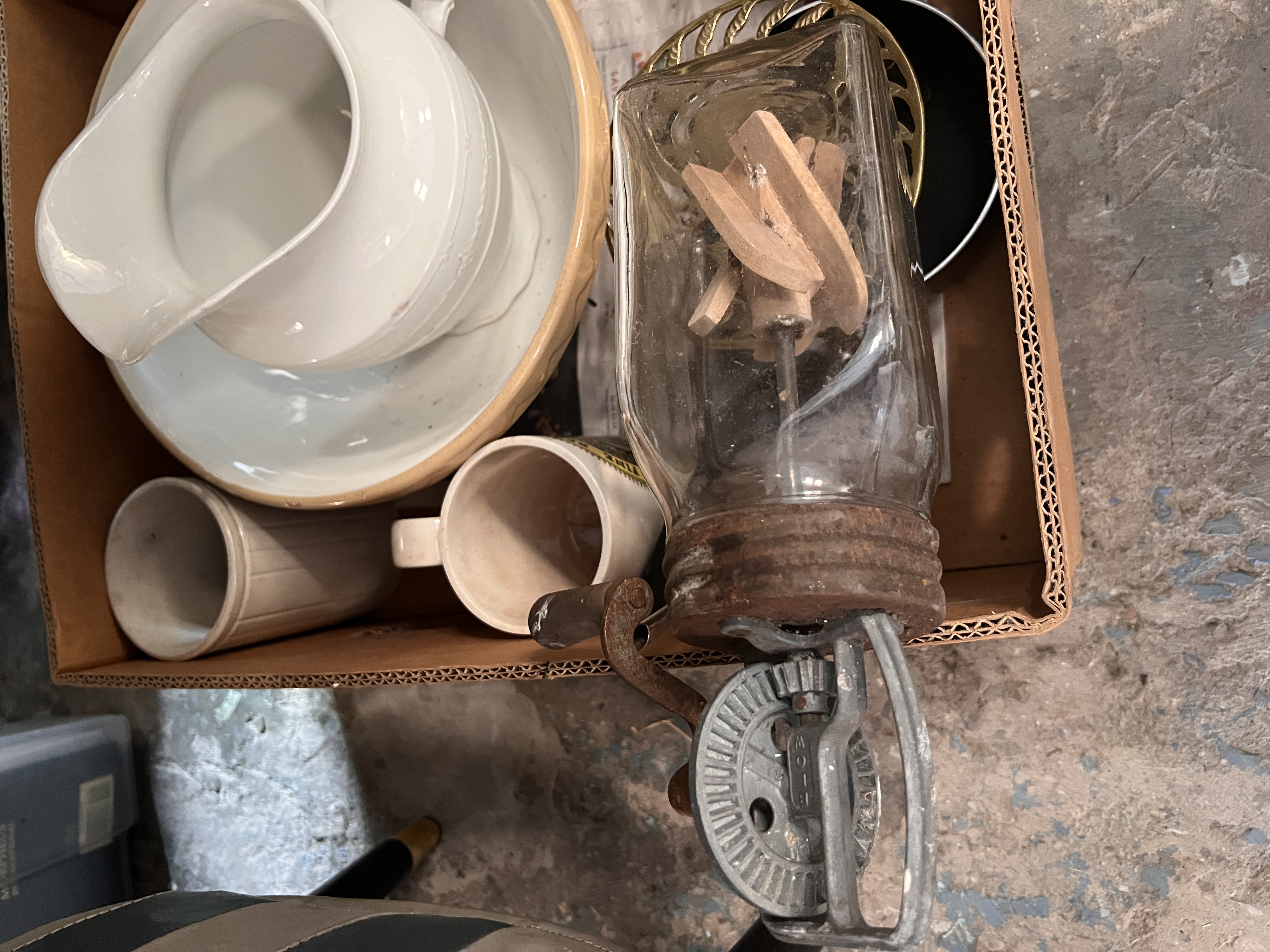 A selection of kitchen wares including Mason Cash no.9 mixing bowl.