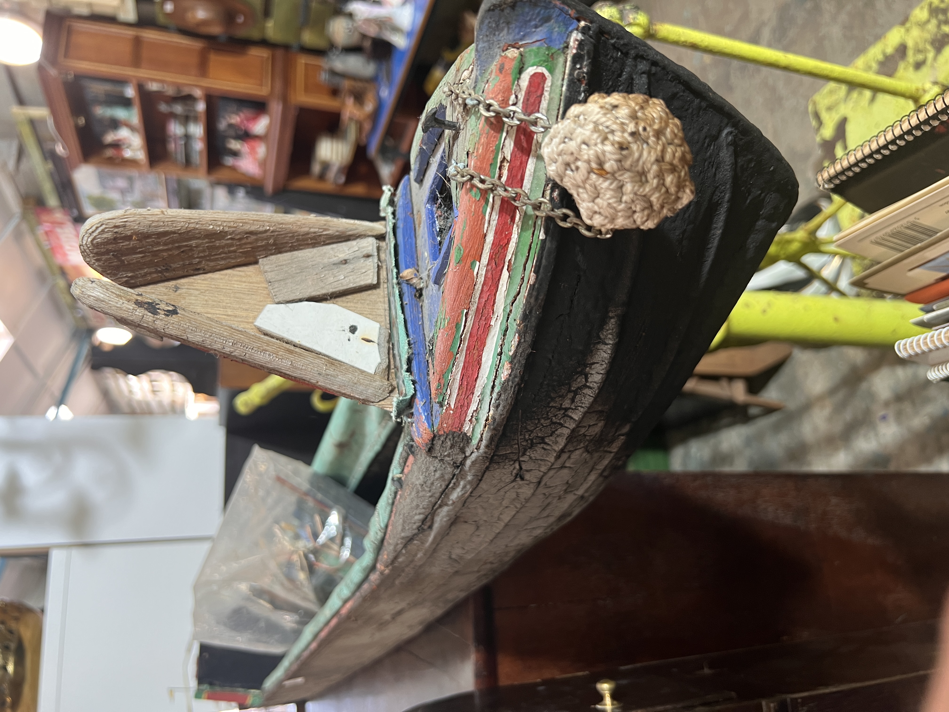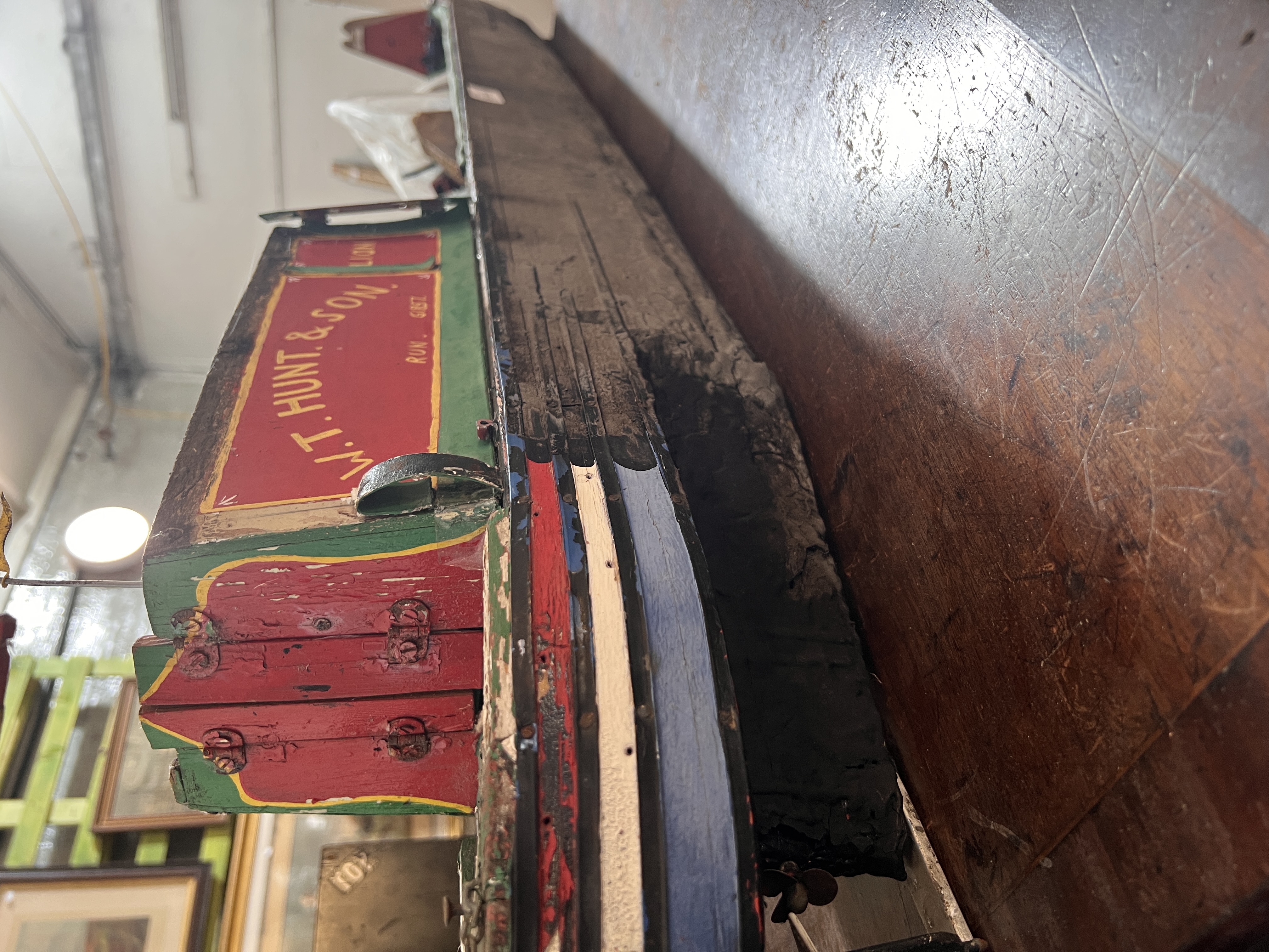 An early 20th century folk art model of a canal barge W.T Hunt and Son, 180cm long. hand decorated with some accessories.