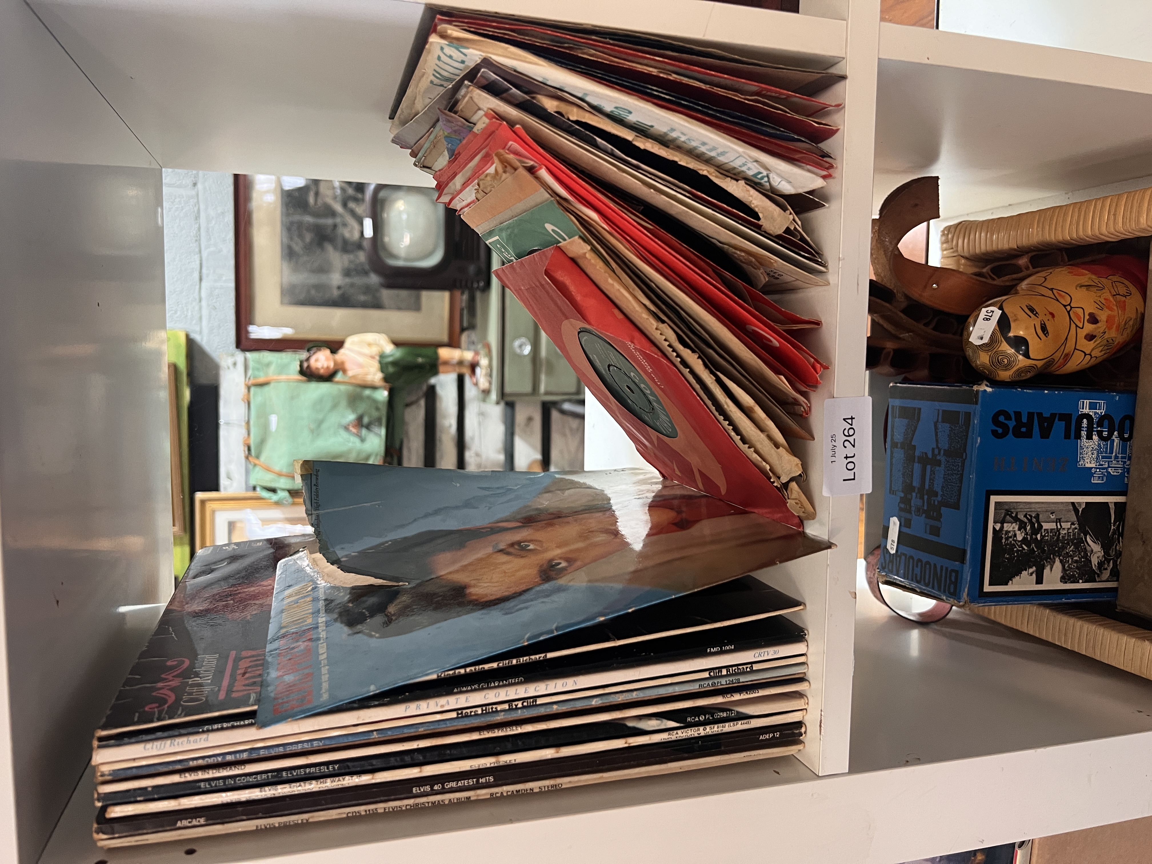 A selection of vintage 45rpm singles and vinyl records, Elvis Shadows etc.