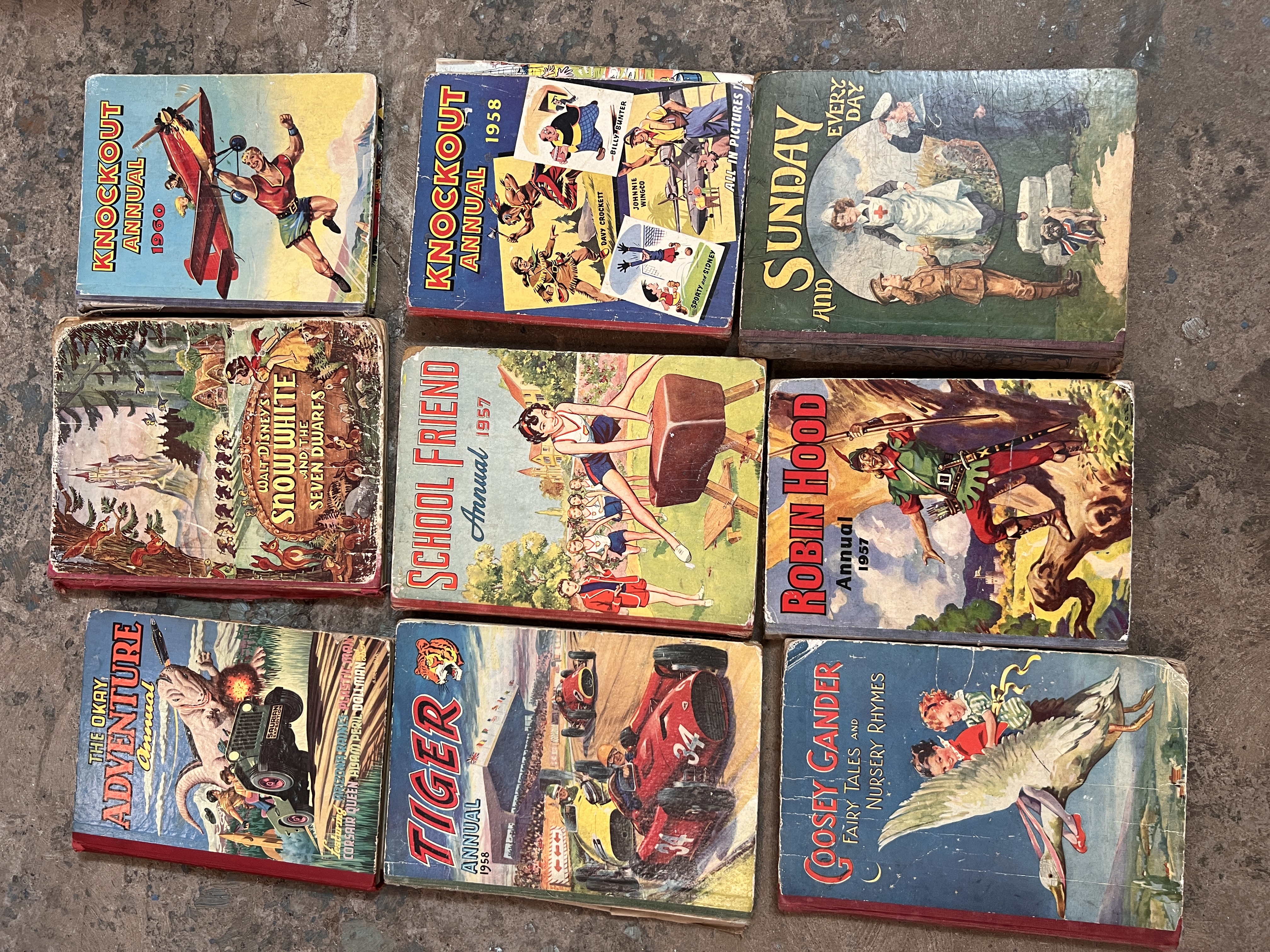 A selection of early 20th century annuals, Tip Top, Radio Fun, Broons, Oor Wullie etc.