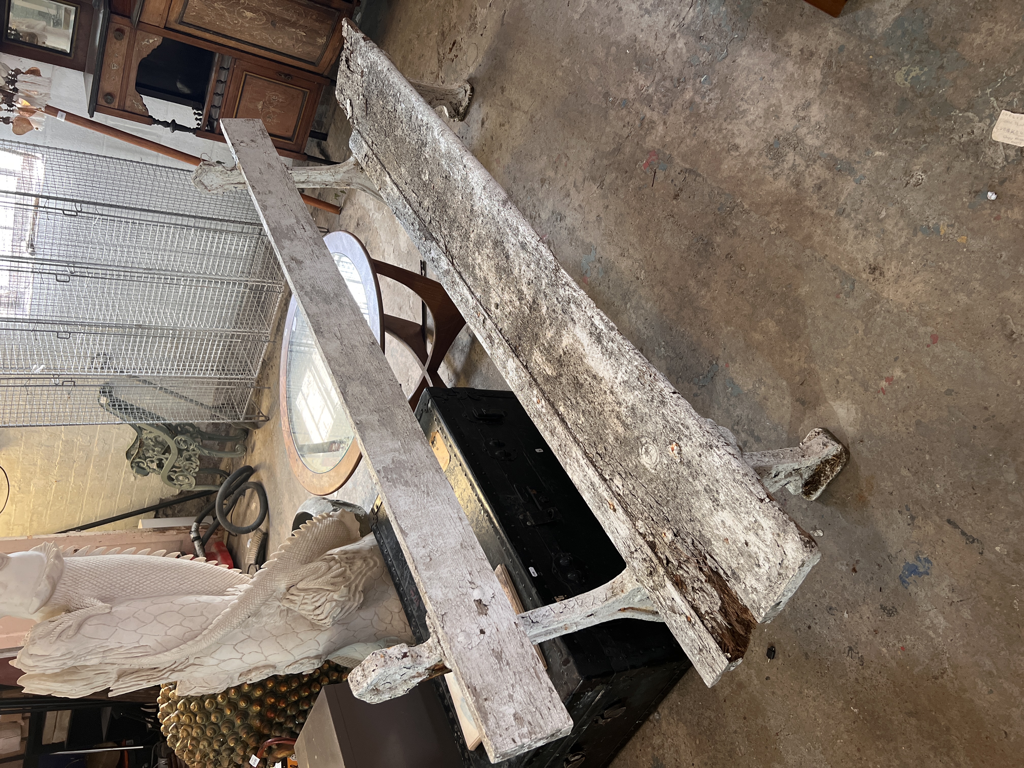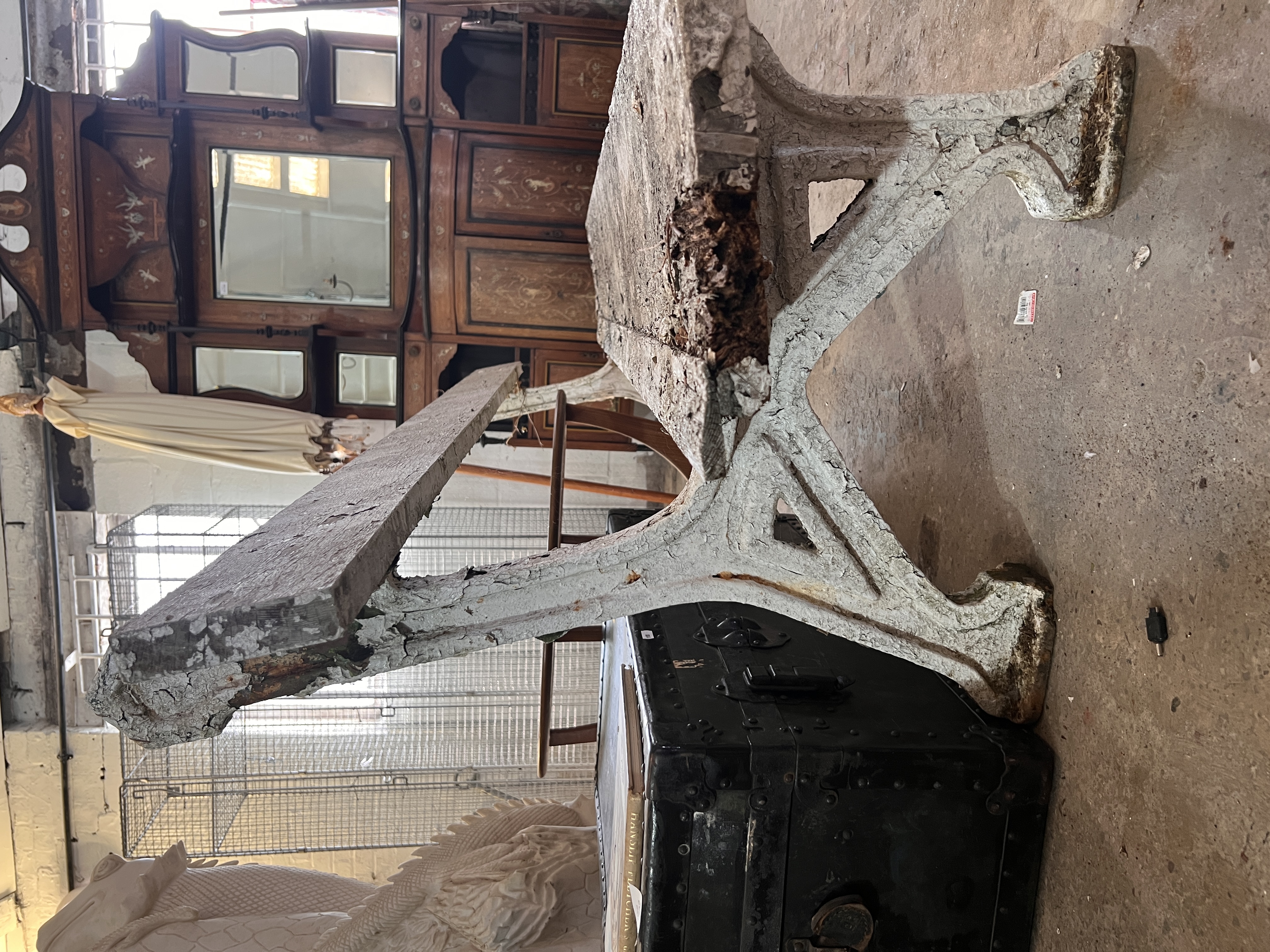 A Victorian park or transport five-seater bench, heavy cast iron ends.
