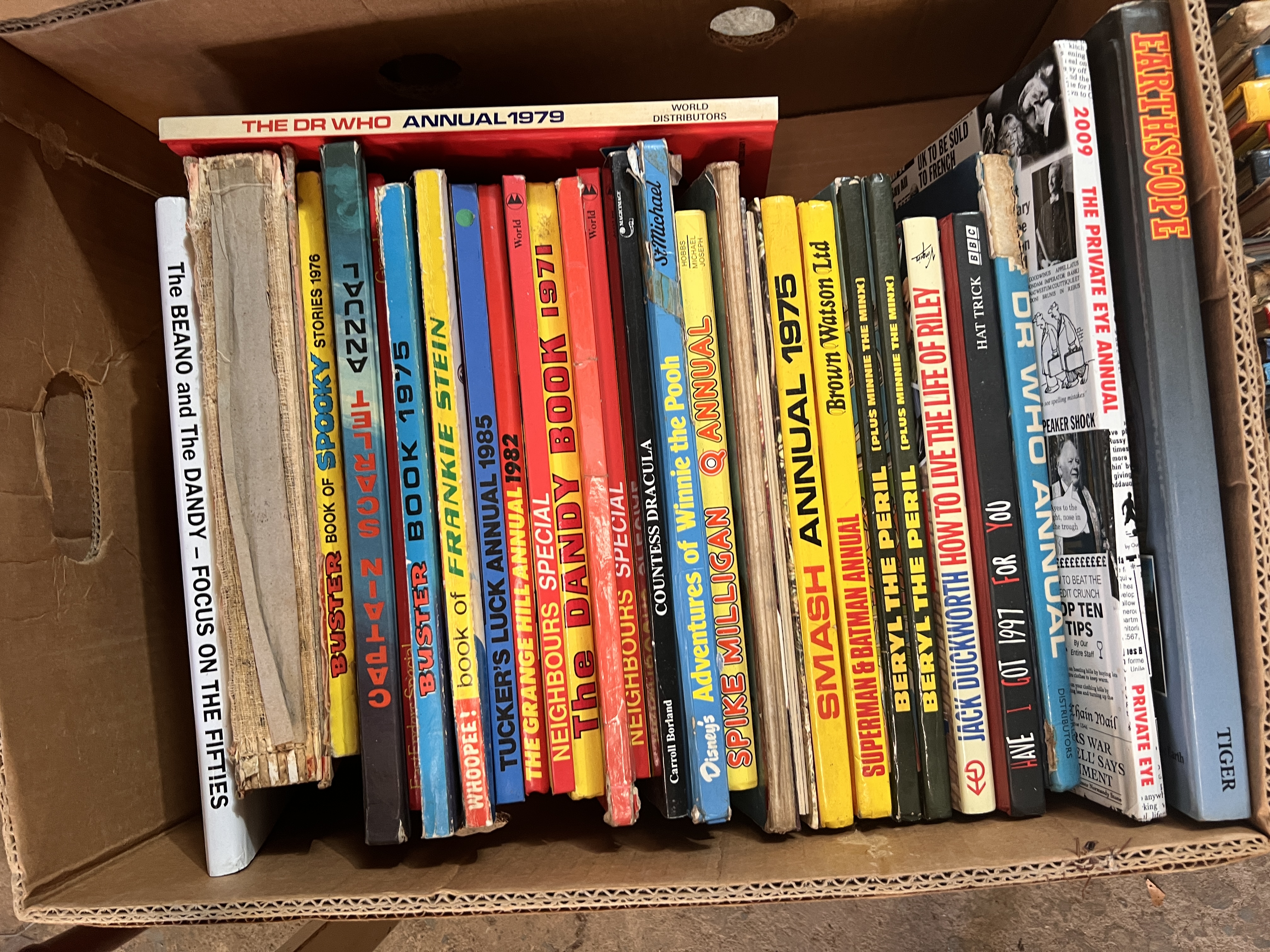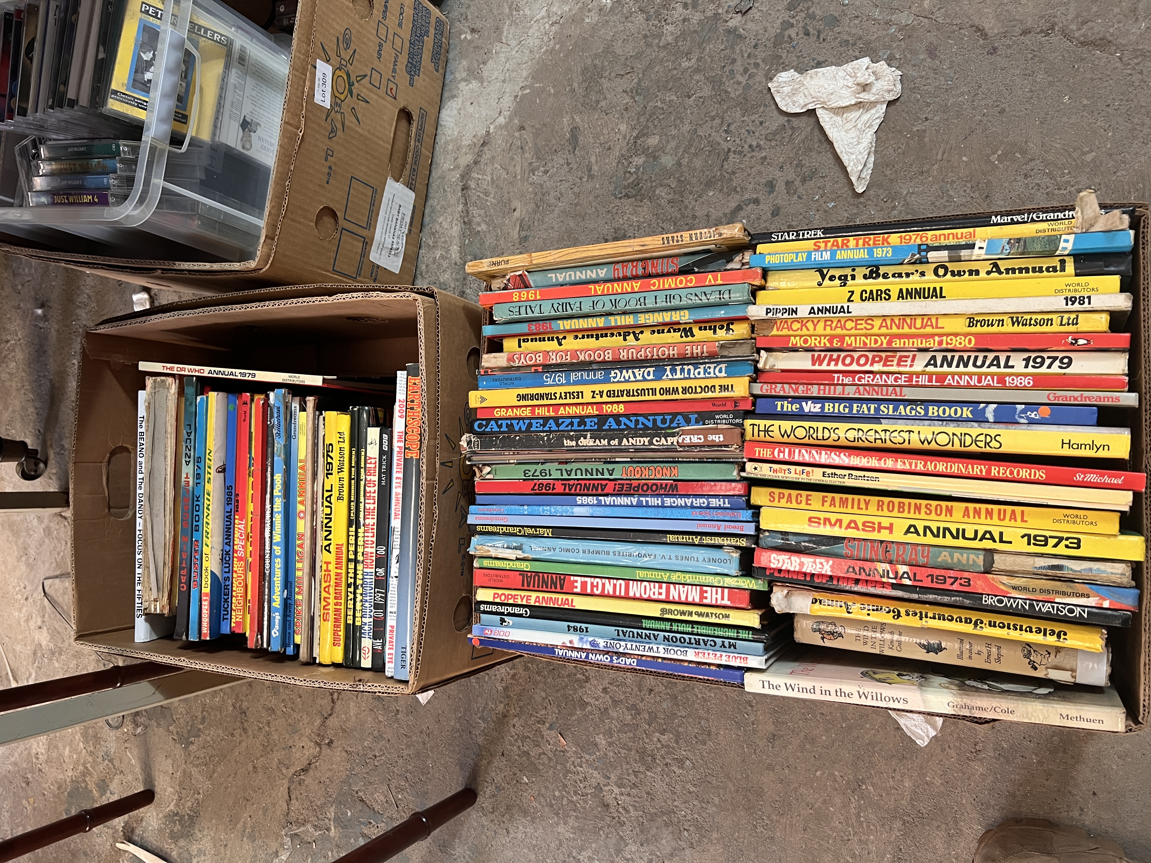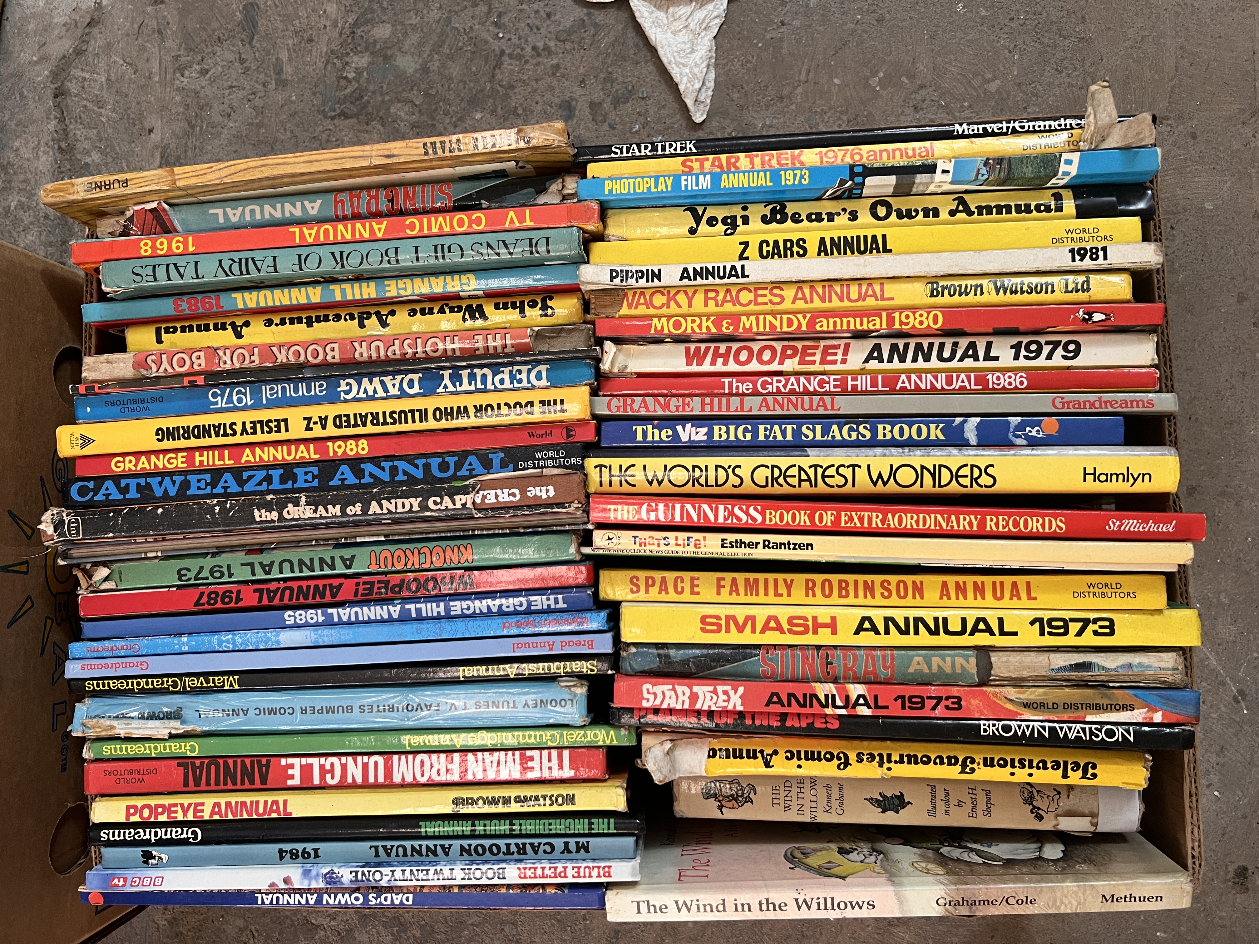 Two boxes of vintage comic annuals including Star Trek, Smash, Yogi Bear etc.