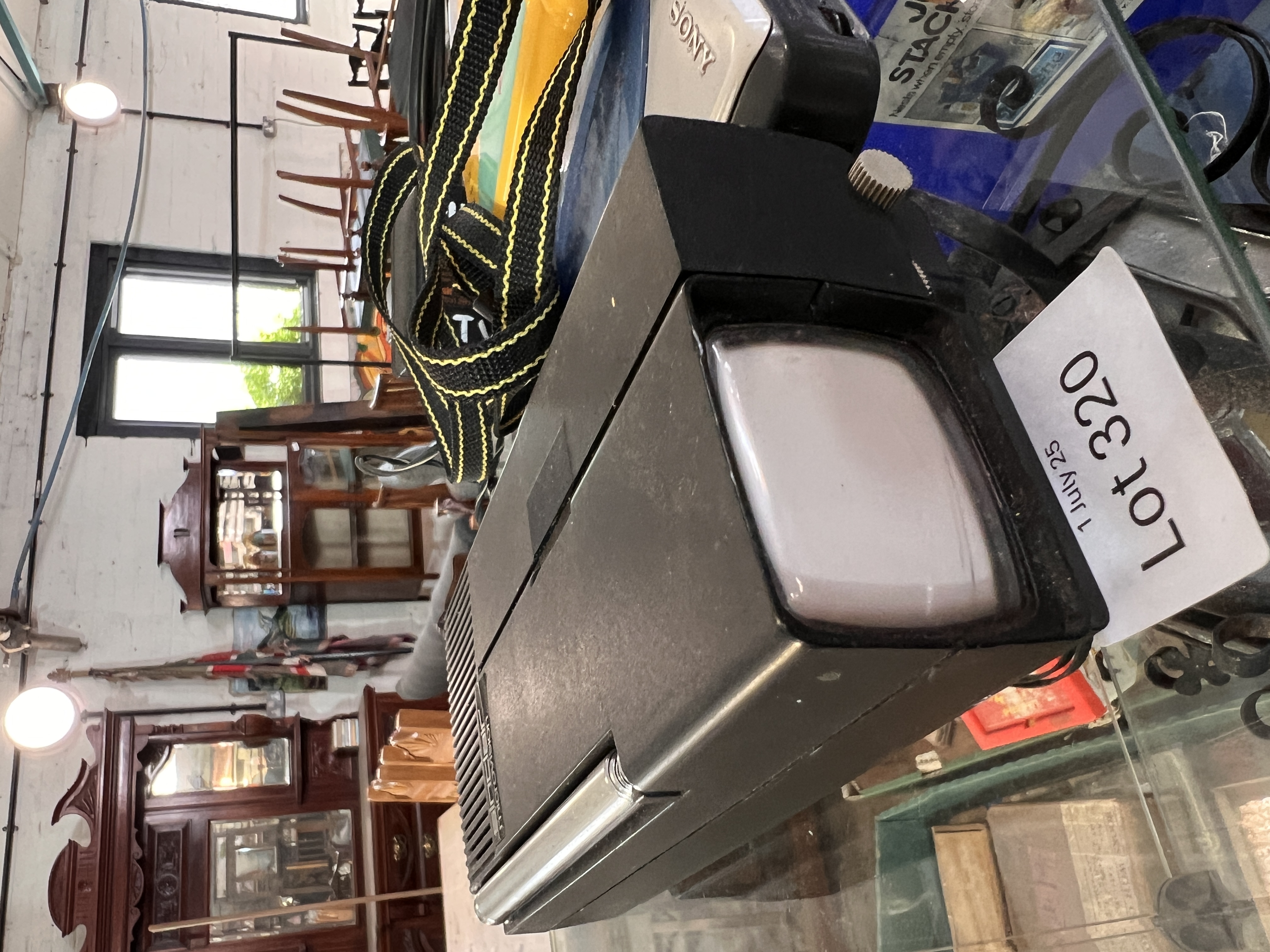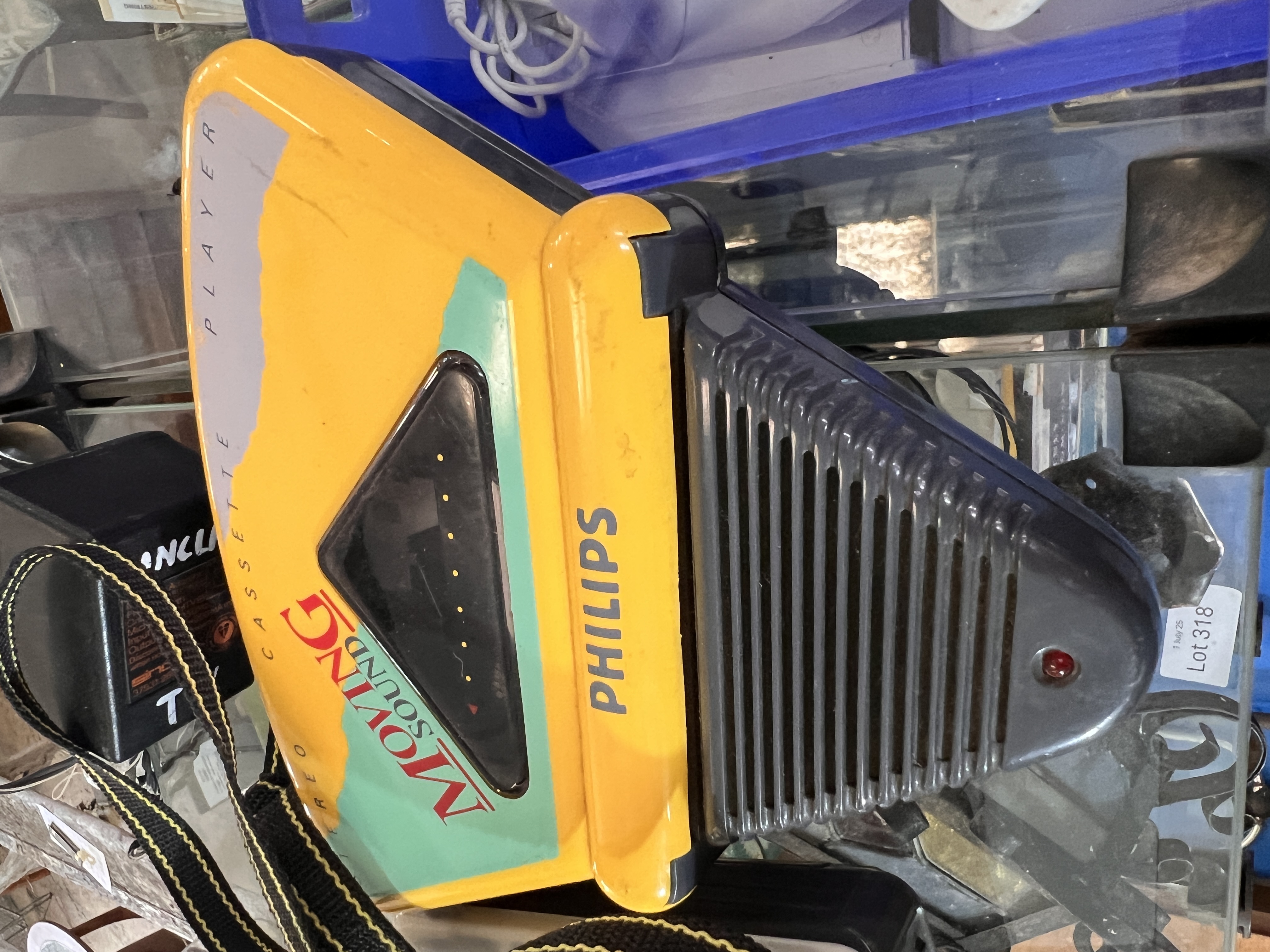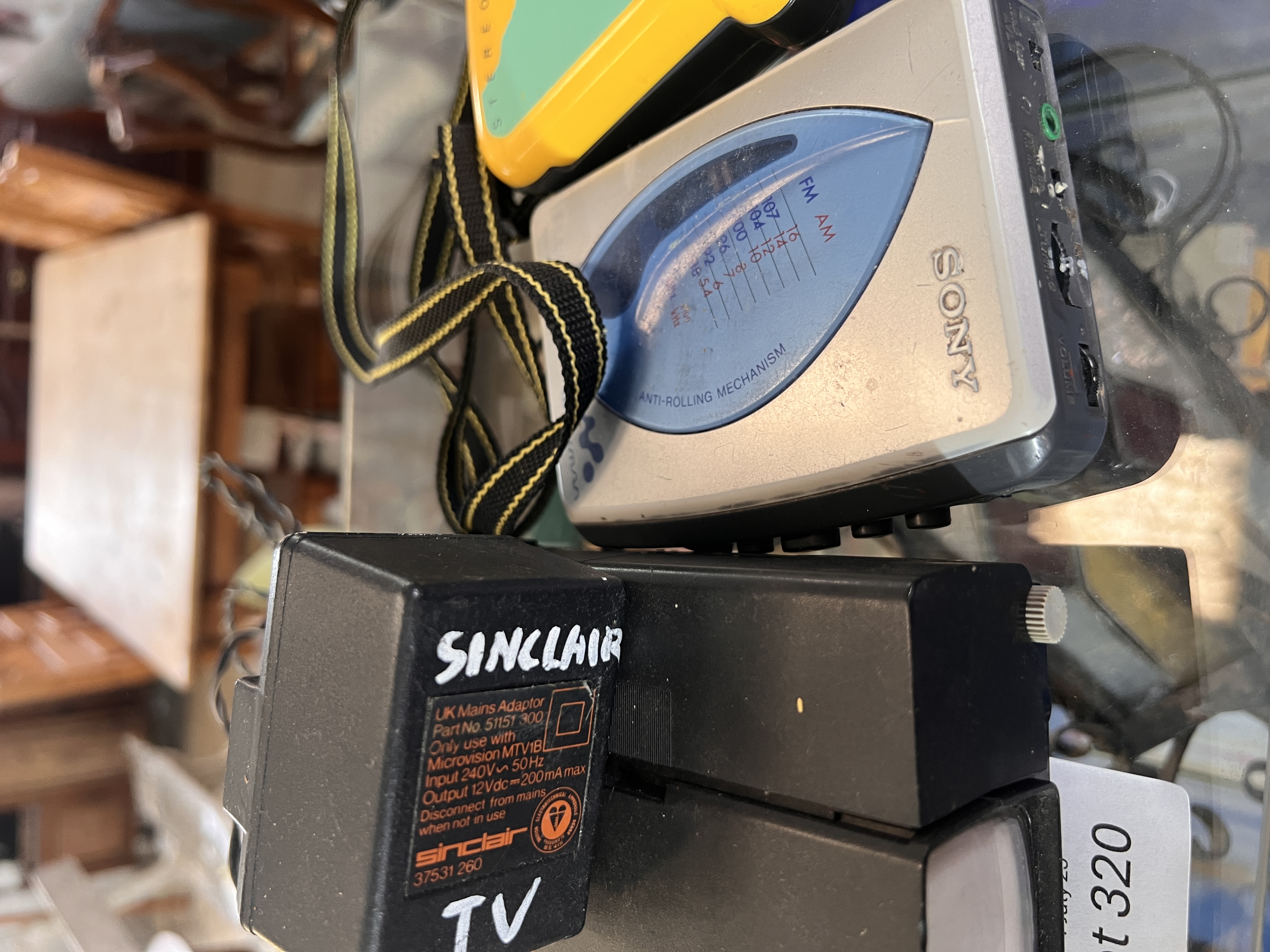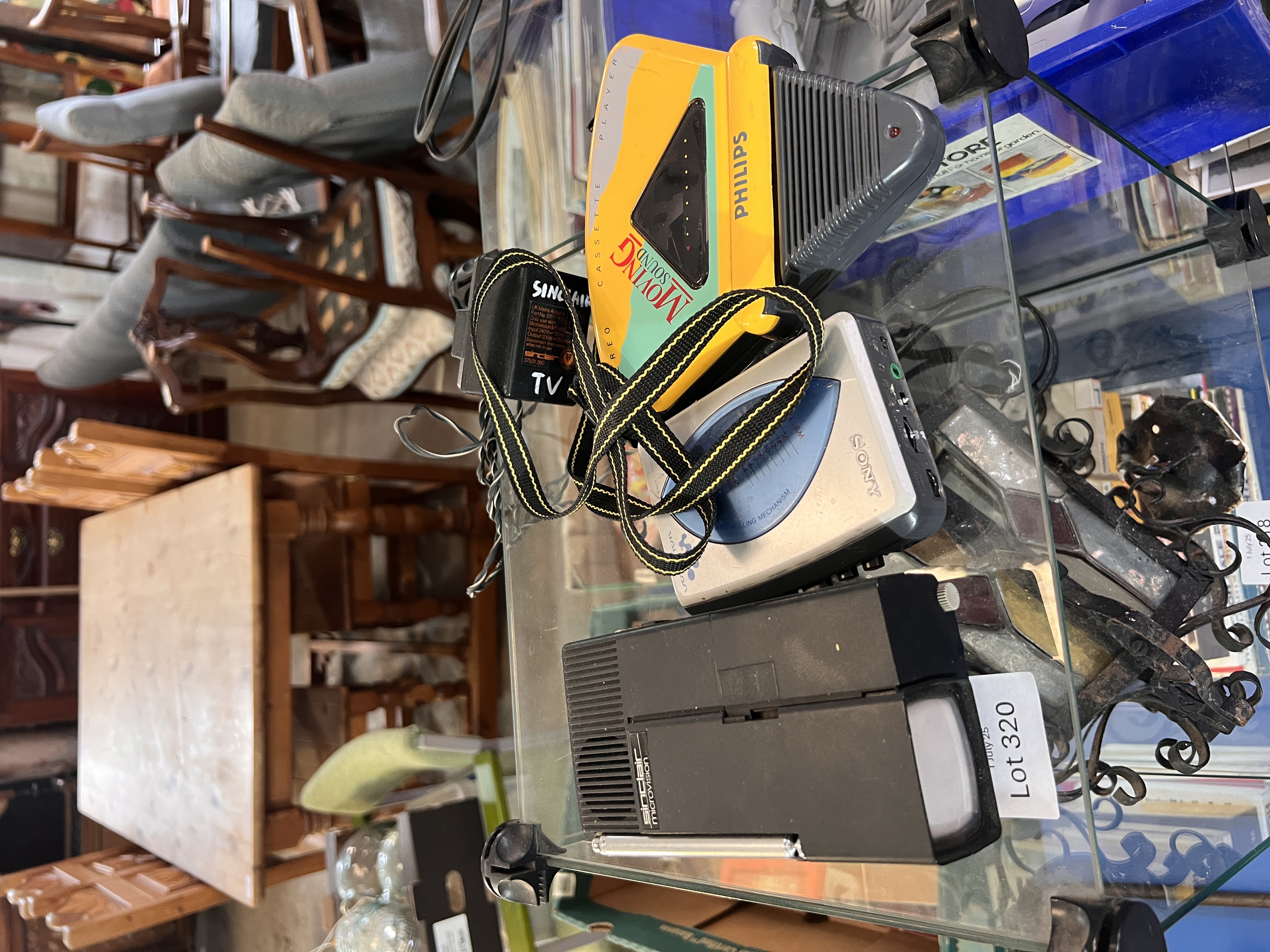 A Philips Moving Sound cassette player with Walkman and Sinclair Microvision.