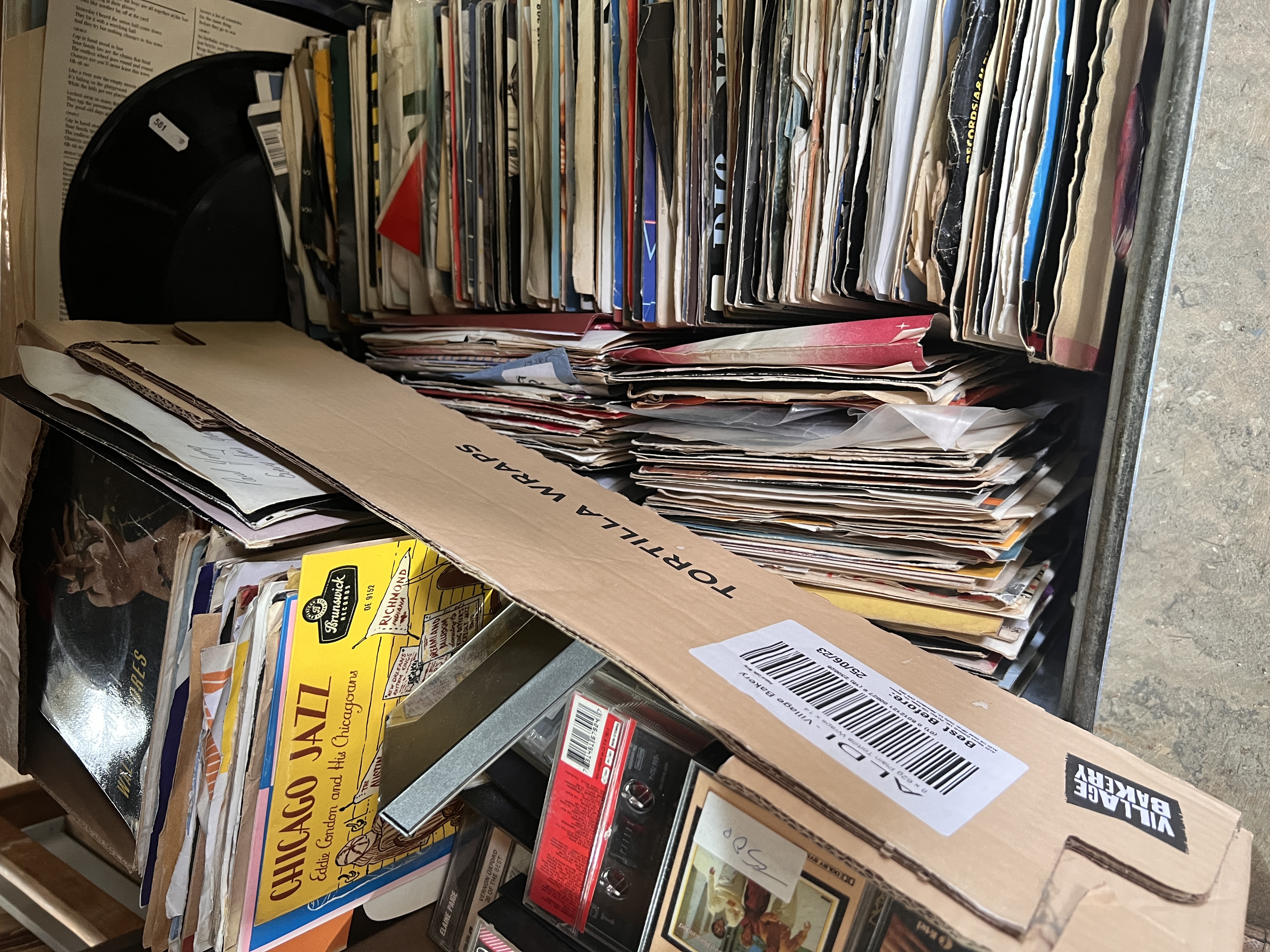 Two boxes of vintage 45rpm pop and rock vinyl singles.