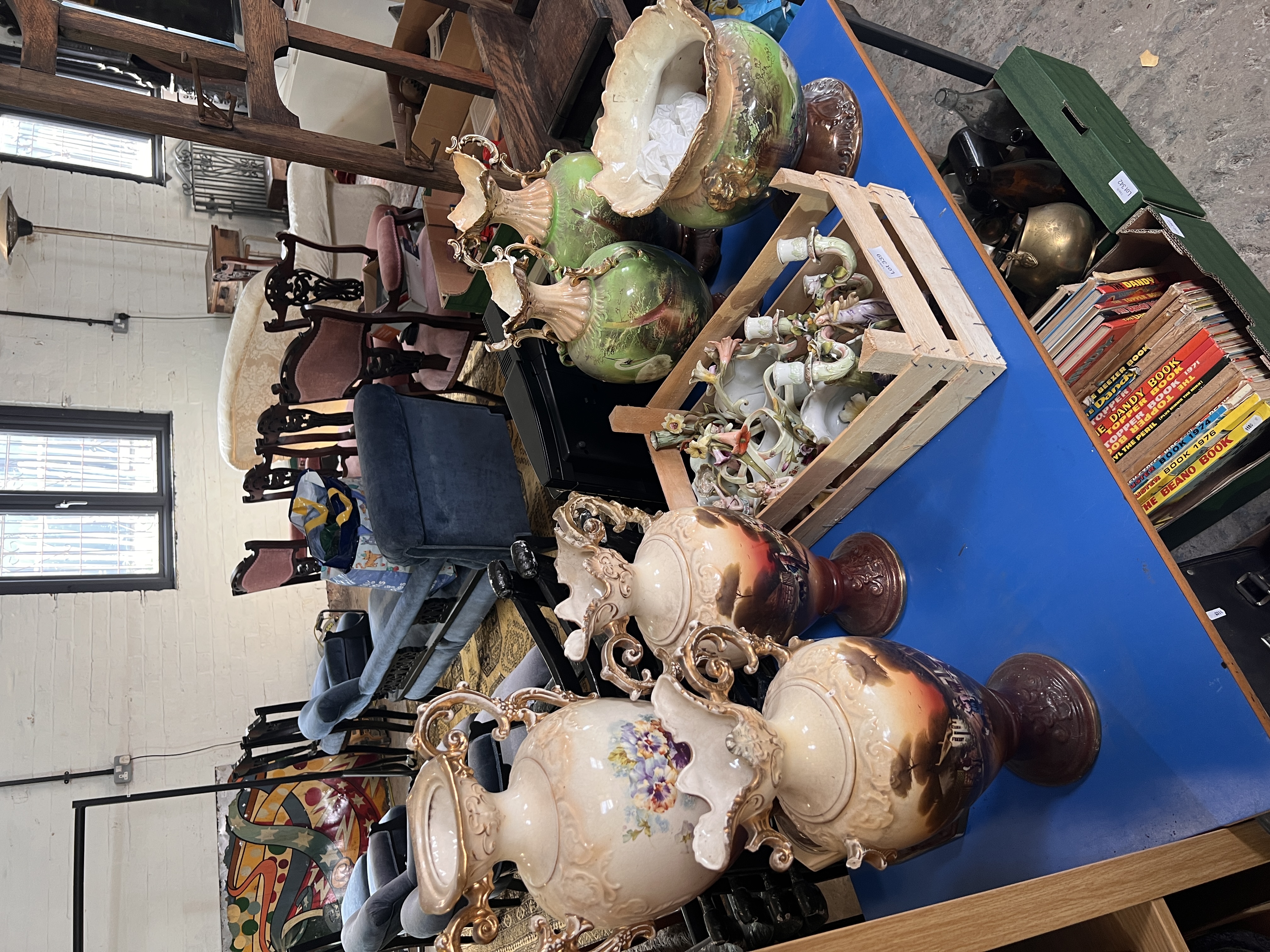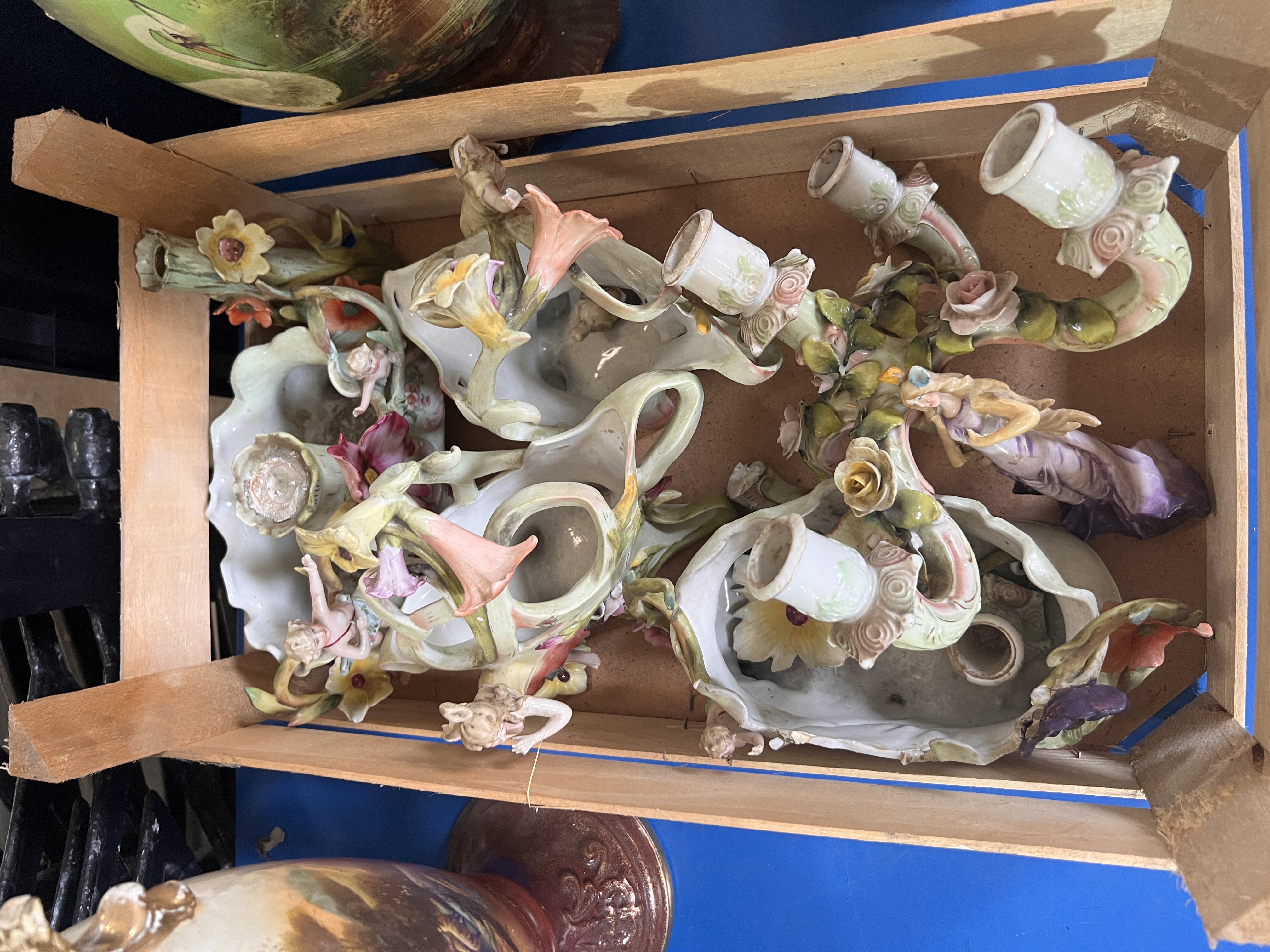 A large selection of Victorian garnitures and porcelain fairy themed figures. AF.