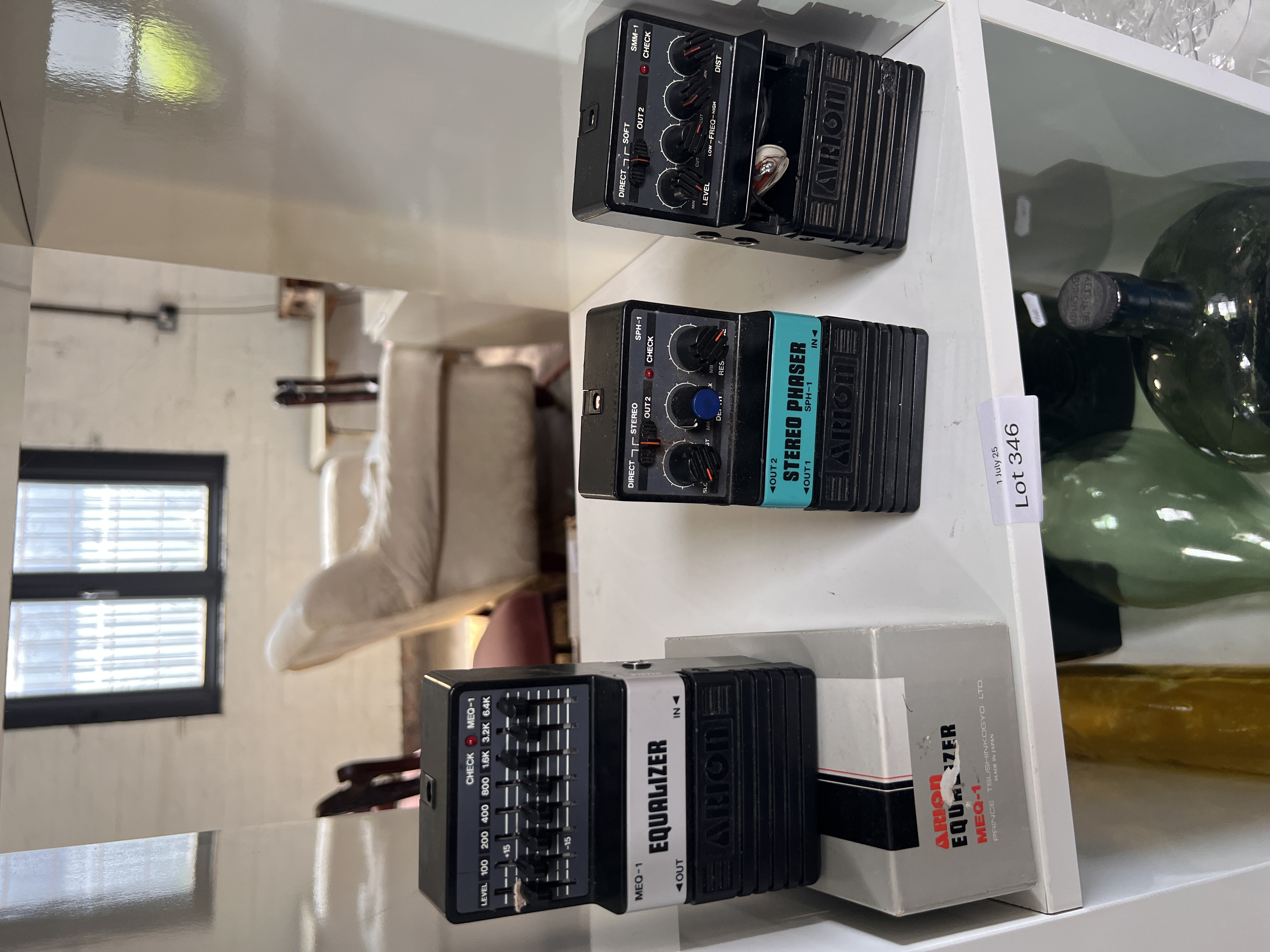 Three Arion Guitar pedals Equaliser MEQ-1, Phaser SPH-1 and one as found.