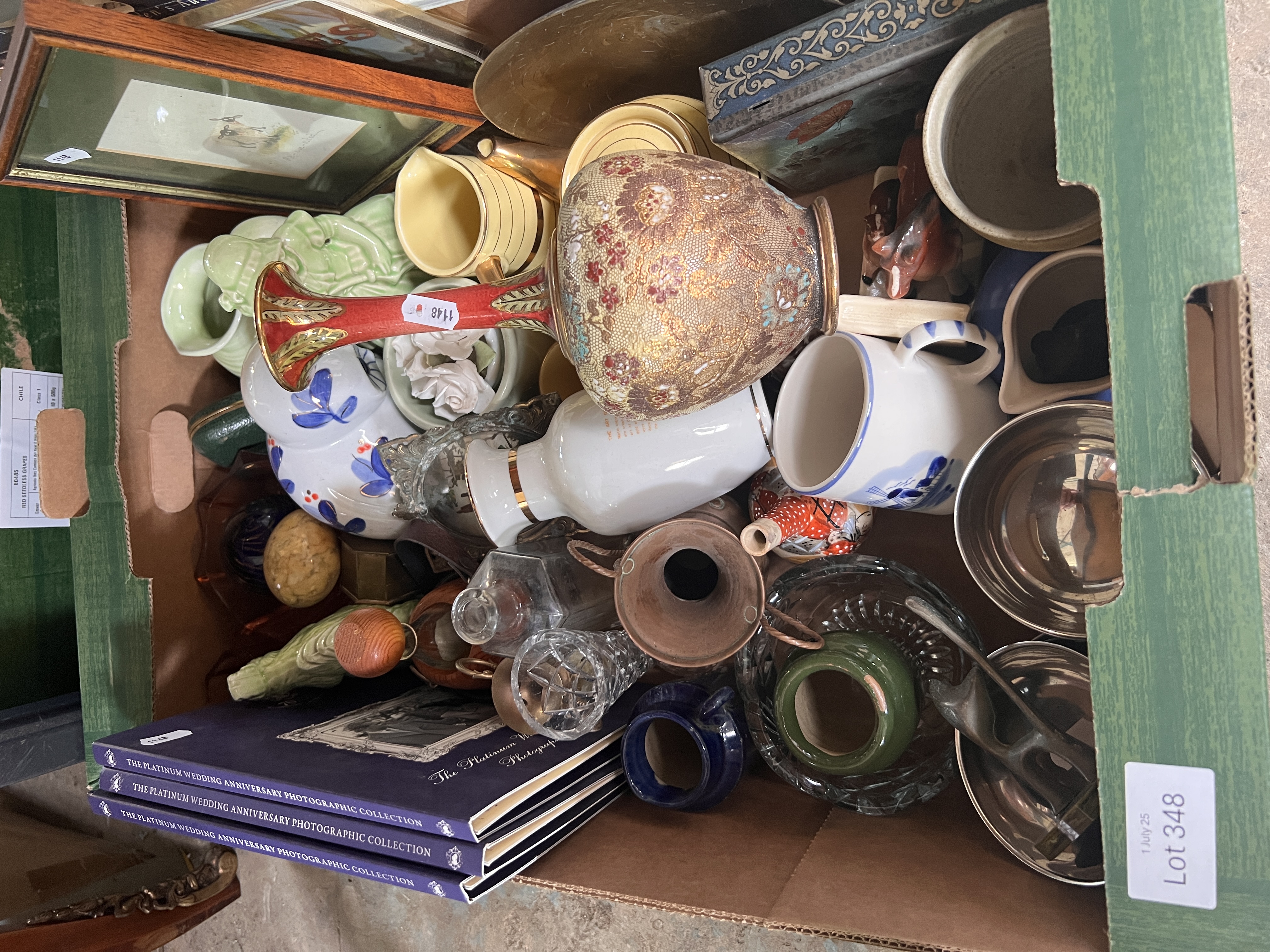 A selection of ceramics and glass wares including Doulton Lambeth AF.