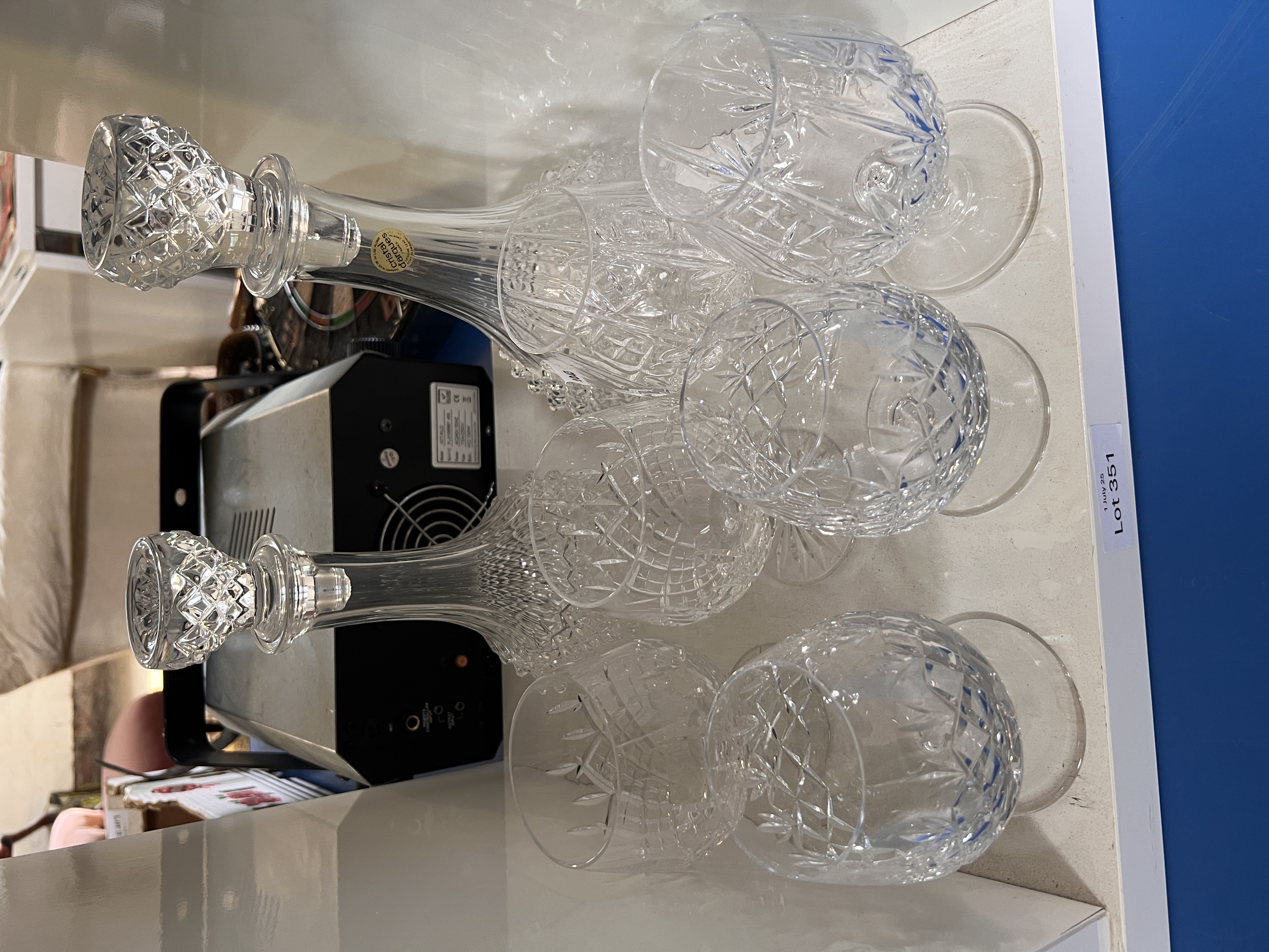 A selection of brandy glasses and decanters.