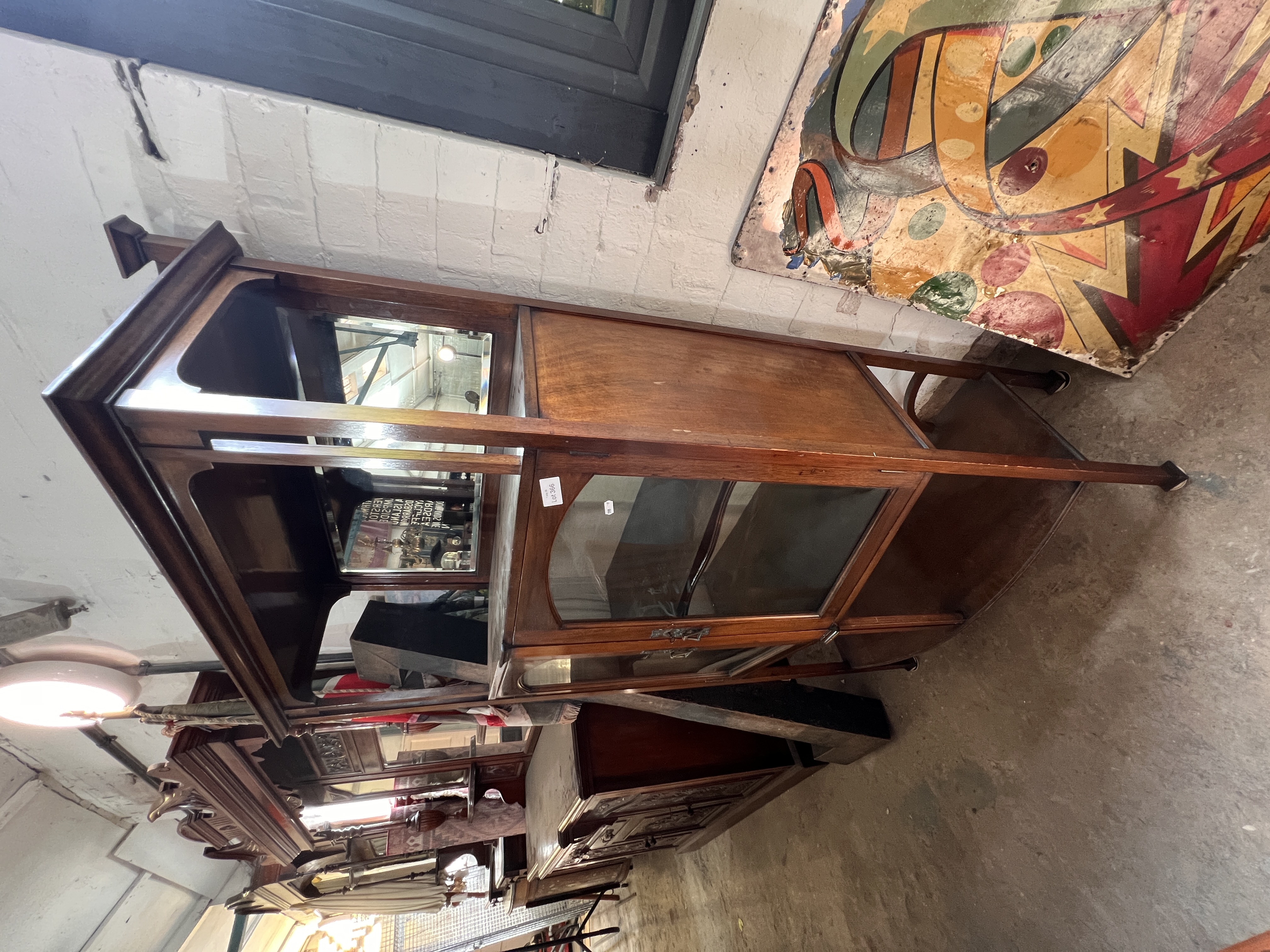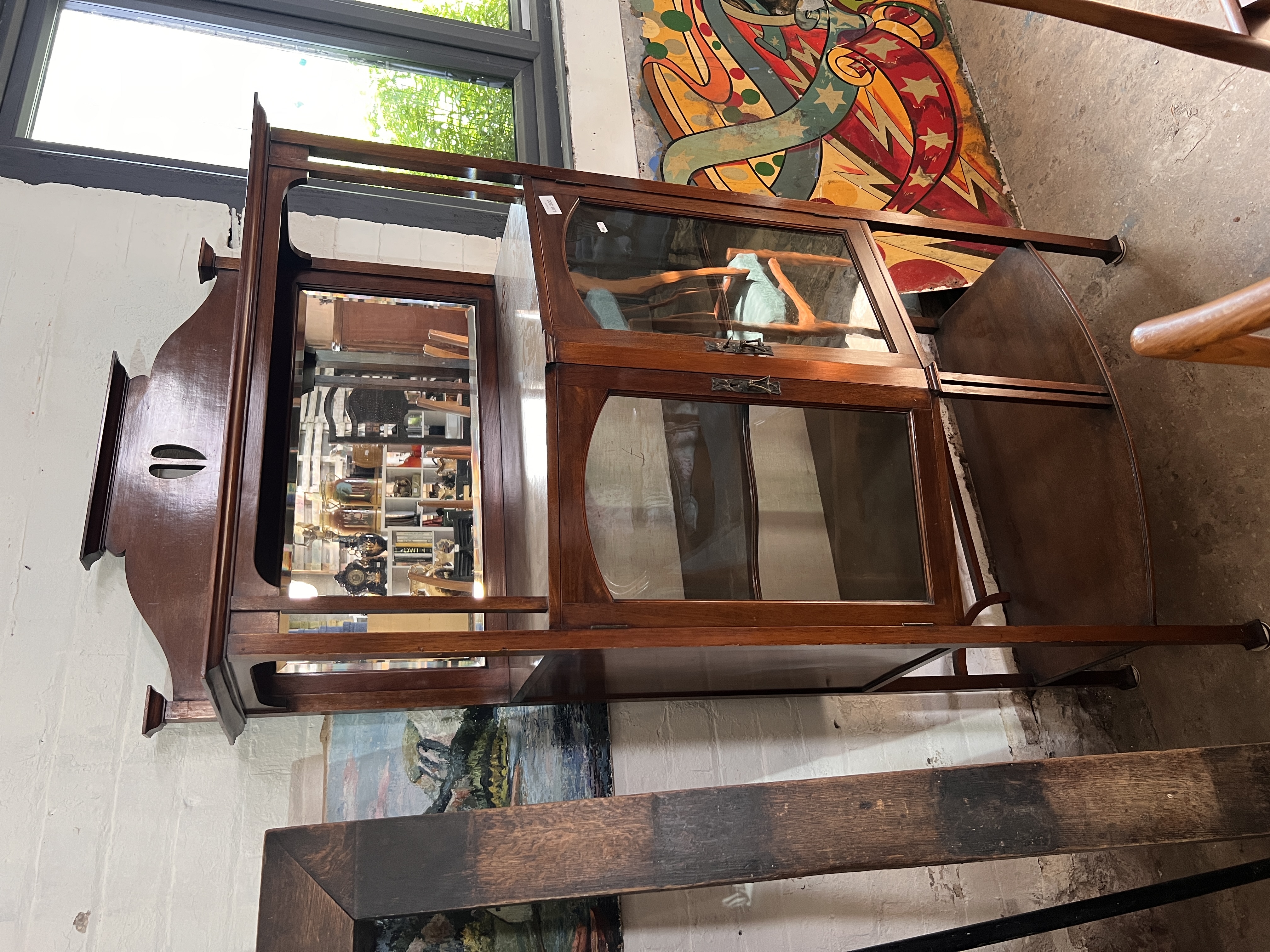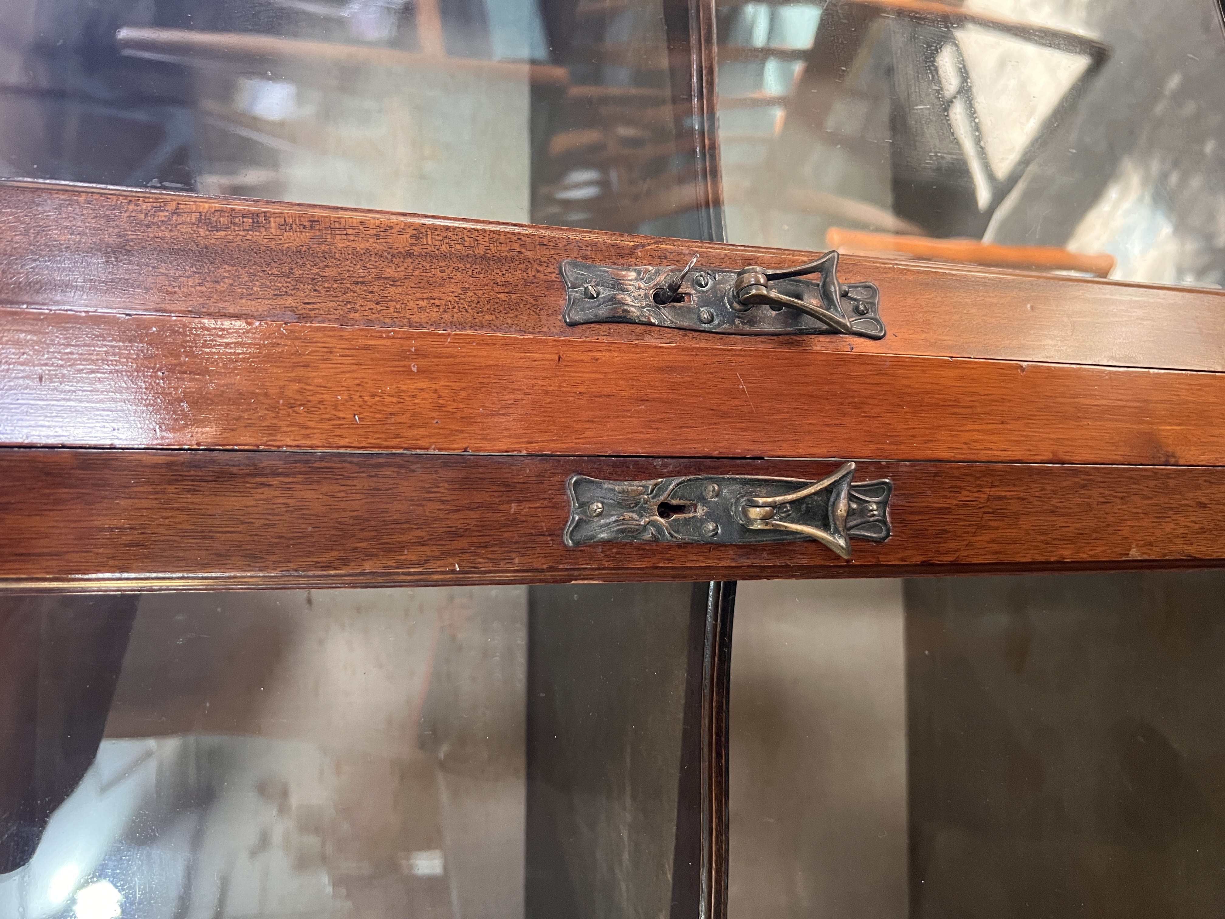 An Arts and Crafts style display case with glazed cupboard. 84cm wide.