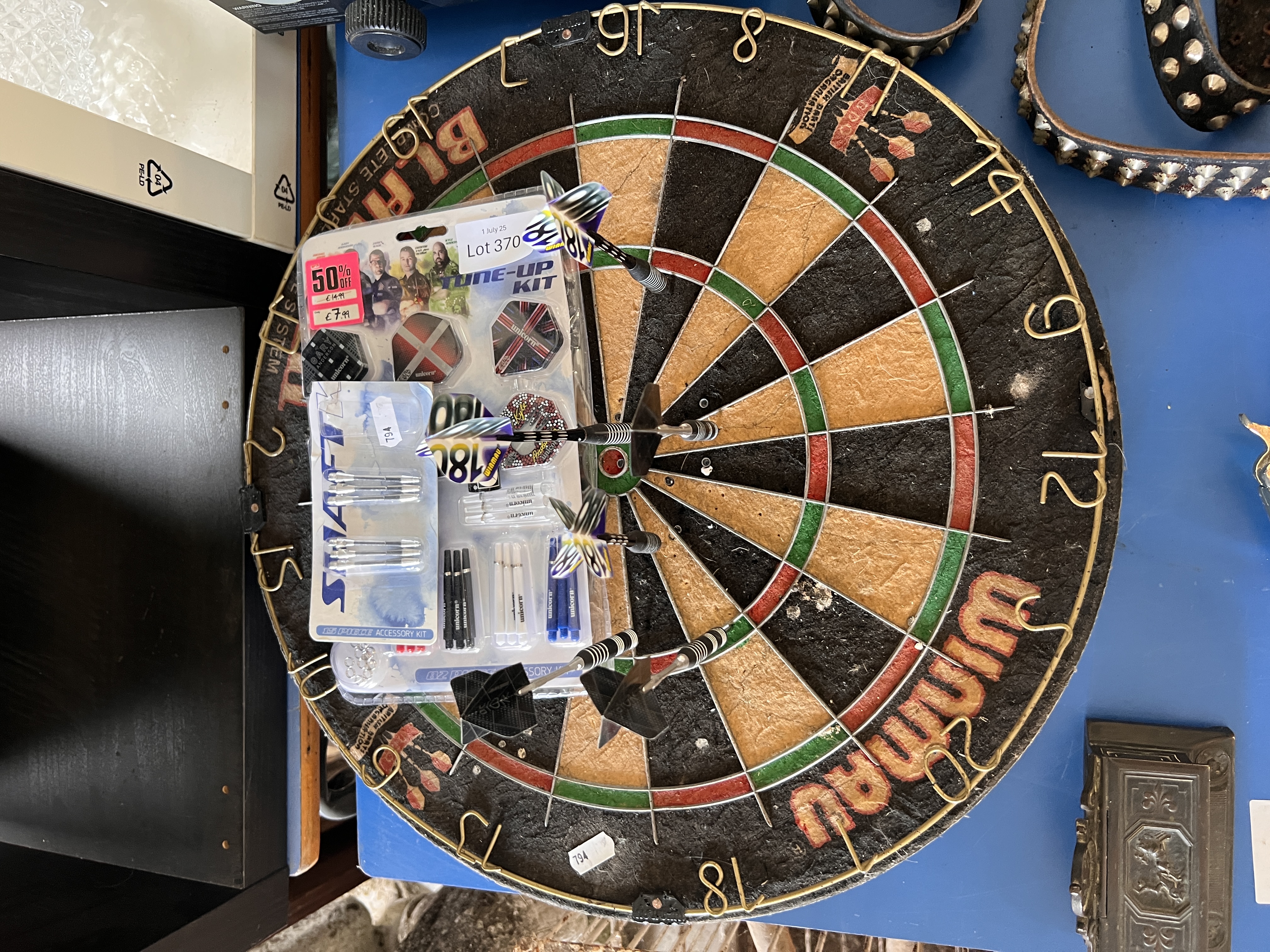 A dart board with accessories.